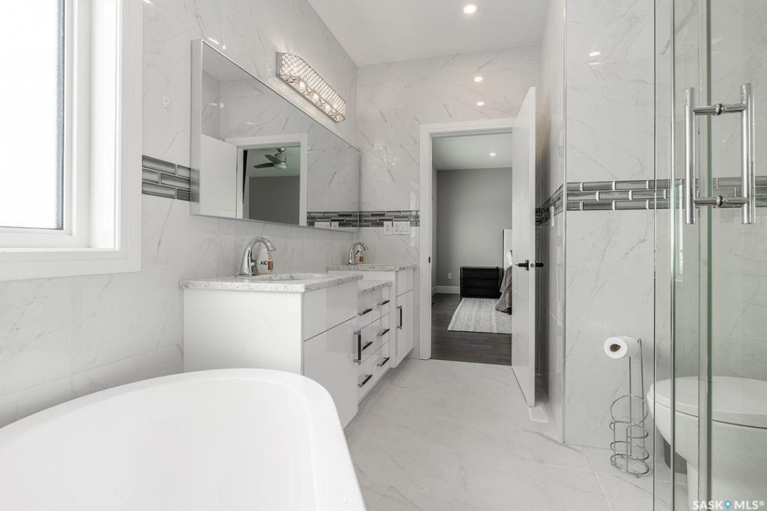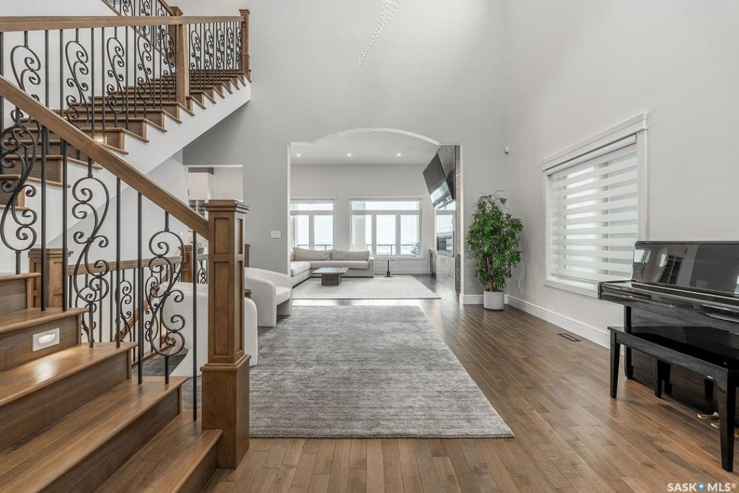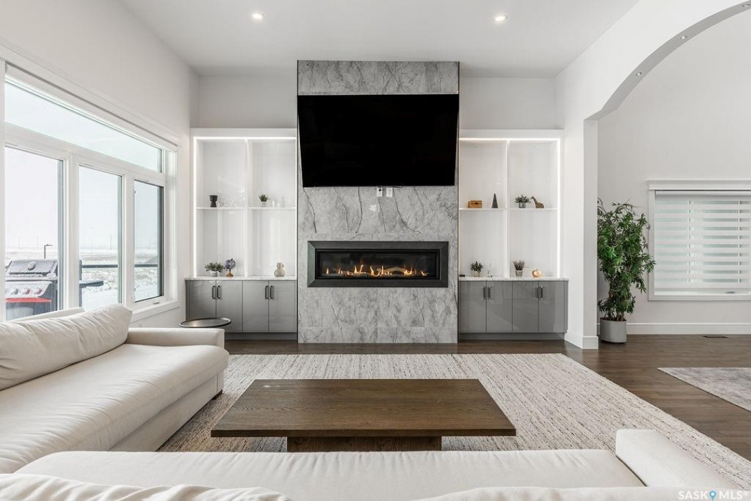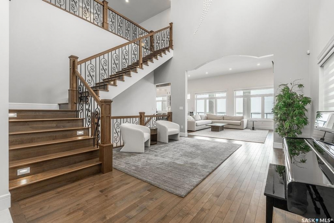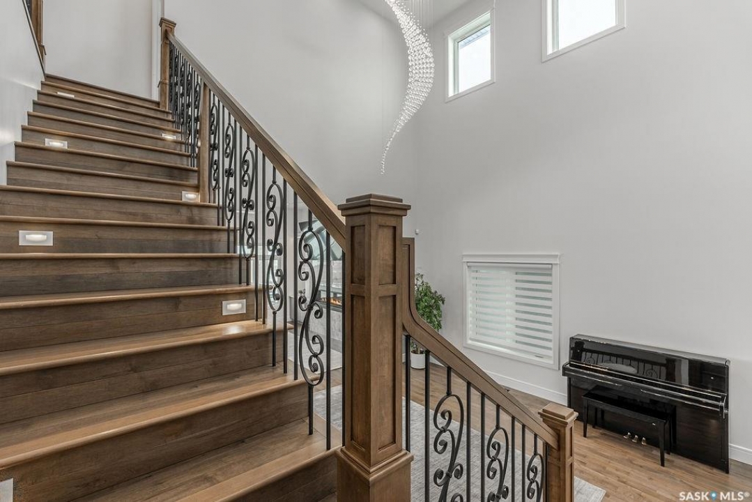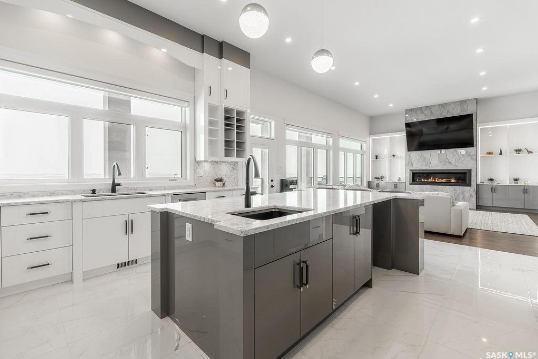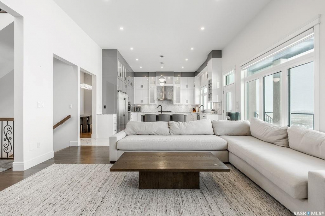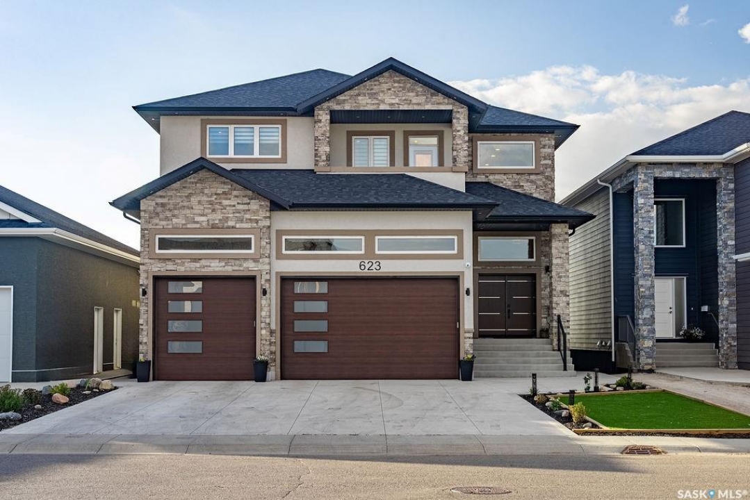 Timeless luxury, an incredible floor plan, and breathtaking views-welcome to 623 Kenaschuk Crescent. This impressive 3,067 sqft walk-out two-storey home has been custom built with exceptional finishes inside and out, and it comes fully furnished for a true turnkey opportunity. The grand 2-storey foyer makes an unforgettable first impression with soaring 22ft ceilings, a stunning chandelier, and an elegant sweeping staircase. Through the sitting room, you'll find a beautiful living room featuring a gas fireplace with granite hearth, built-in bookshelves, and custom cabinetry. The living room flows into a spectacular kitchen with floor-to-ceiling custom cabinetry, granite countertops and backsplash, a massive eat-up island, stainless steel appliances, and a full-size double fridge and freezer. Step outside onto the expansive deck spanning the entire back of the home overlooking the Northeast swale. Off the kitchen is a spacious formal dining room that could also function as a main floor office. The main floor is completed with a 3pc bathroom and a mudroom with access to the heated triple attached garage. Upstairs you'll find four large bedrooms, each with balcony access. The primary suite overlooks the swale and features a stunning five-piece ensuite with a standalone tub and tiled shower. There is a second primary suite with it's own en-suite. Two more bedrooms and a 4pc bathroom make the layout perfect for larger families. The 2nd floor also features a large laundry room with a sink and built in cabinetry. The fully finished walkout basement features a wet bar, entertainment area, large family room, an additional bedroom, a 3pc bathroom and a 2nd laundry! Outside is a covered patio and beautifully landscaped, fully fenced no-maintenance yard with artificial turf and gardens overlooking the grasslands. Close to all amenities, this is a must-see home.