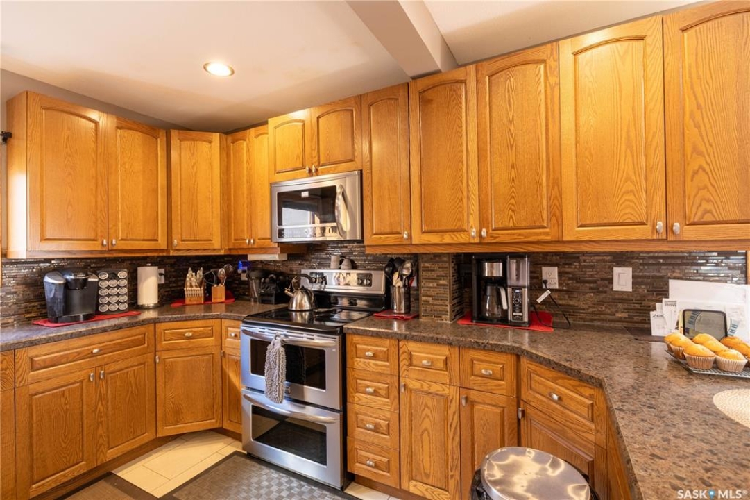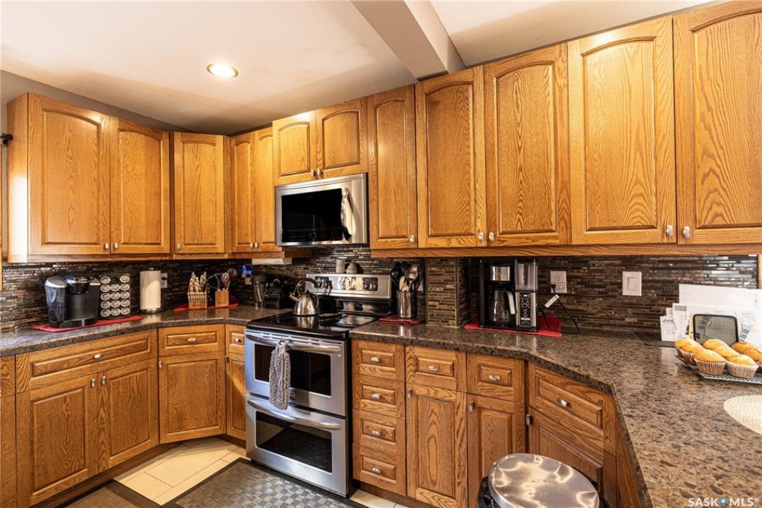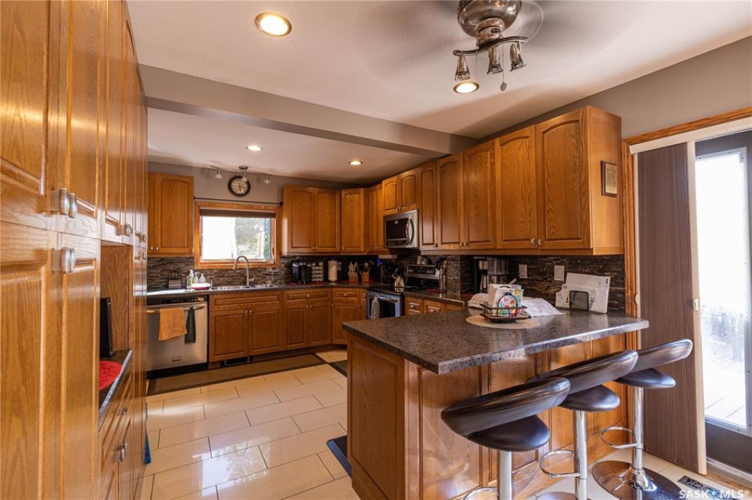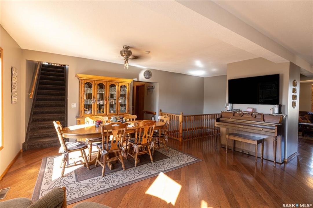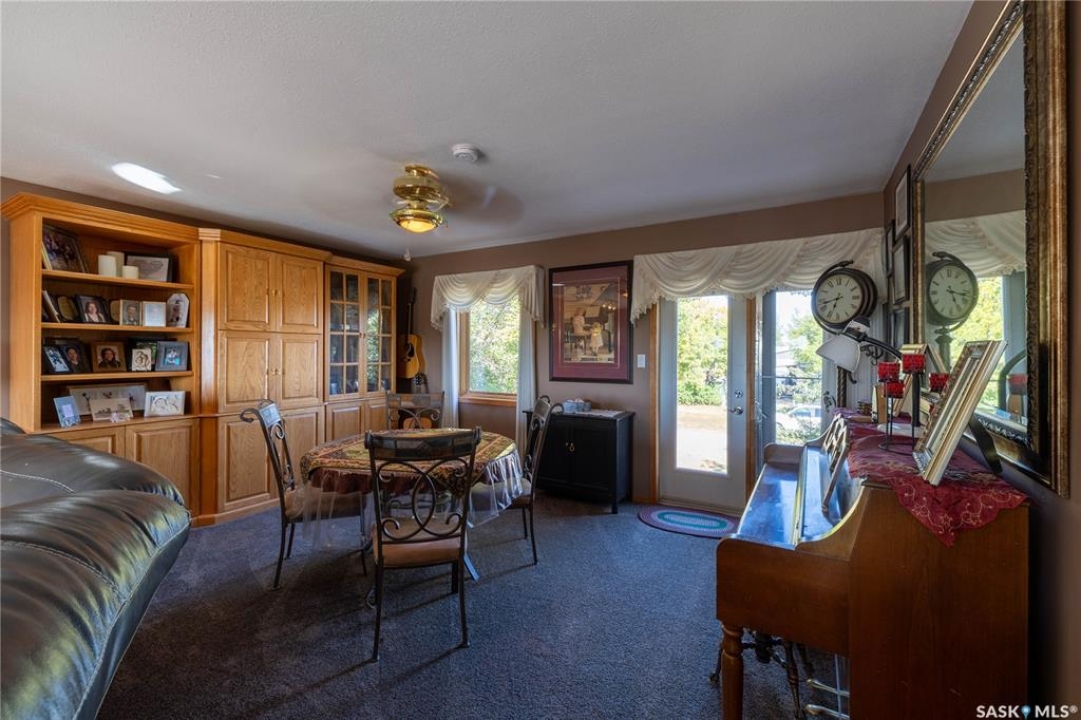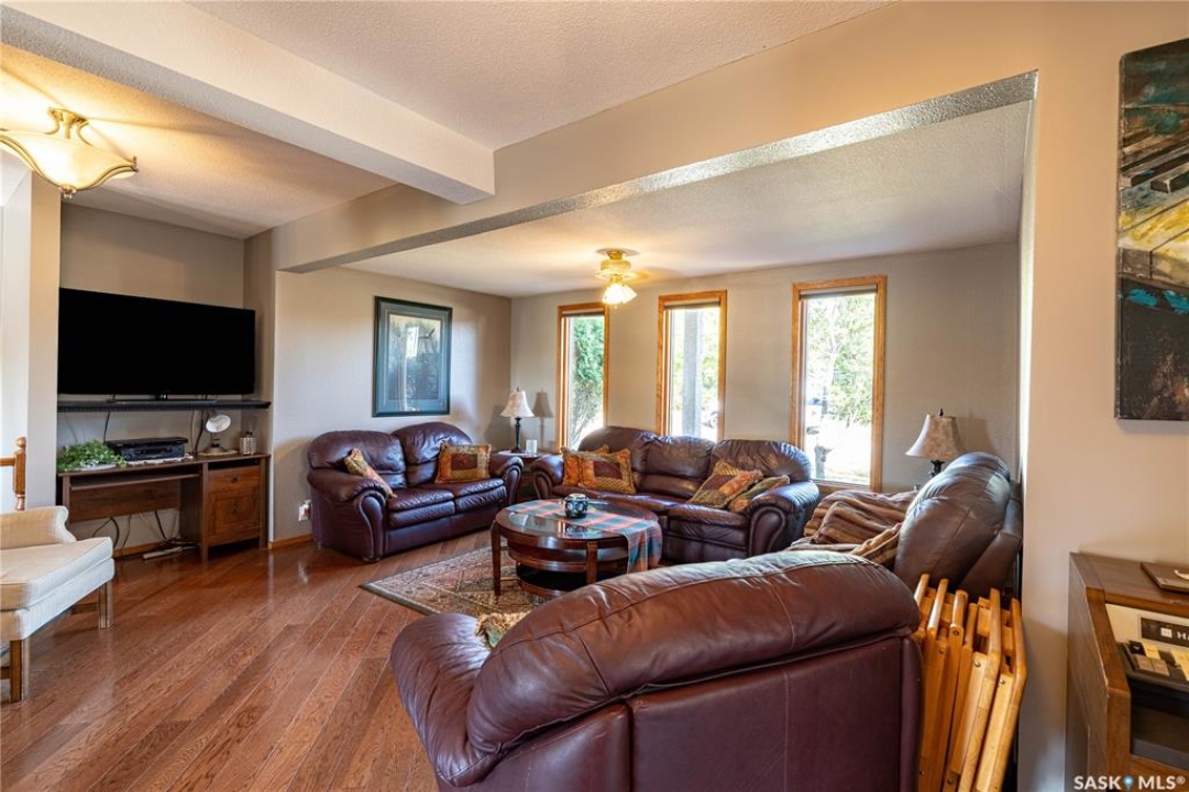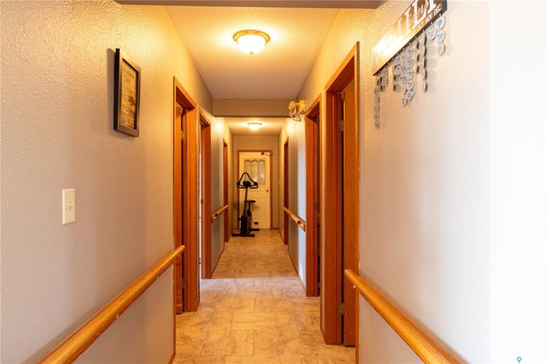 Perfect for a growing family, or ideal to repurpose as a group home or private care facility, this spacious property in Milden offers exceptional value and versatility. Originally built as a personal residence and operated as a 5-bed private care home for 21 years, it now shines as a beautifully maintained family home on a landscaped lot featuring a welcoming water feature, raised garden beds, a firepit area, above-ground pool with wrap-around deck, and a heated double detached garage with room for vehicles and a boat. Inside, nearly 3,600 sq. ft. of living space includes a main floor laundry, oak kitchen with stainless appliances and porcelain tile floors, spacious dining area with natural gas fireplace, main floor living room with fireplace, two bathrooms, and five bedrooms suited for family, guests, or hobbies. The second level offers a large family room with fireplace, games area, office/bedroom, bath with laundry, primary suite with ensuite, and three additional bedrooms. Located just 15 minutes west of Outlook, under 45 minutes to Lake Diefenbaker or Vanscoy potash, and about 65 minutes to Saskatoon, this home combines small-town charm with outstanding space and amenities. Book your private showing today!