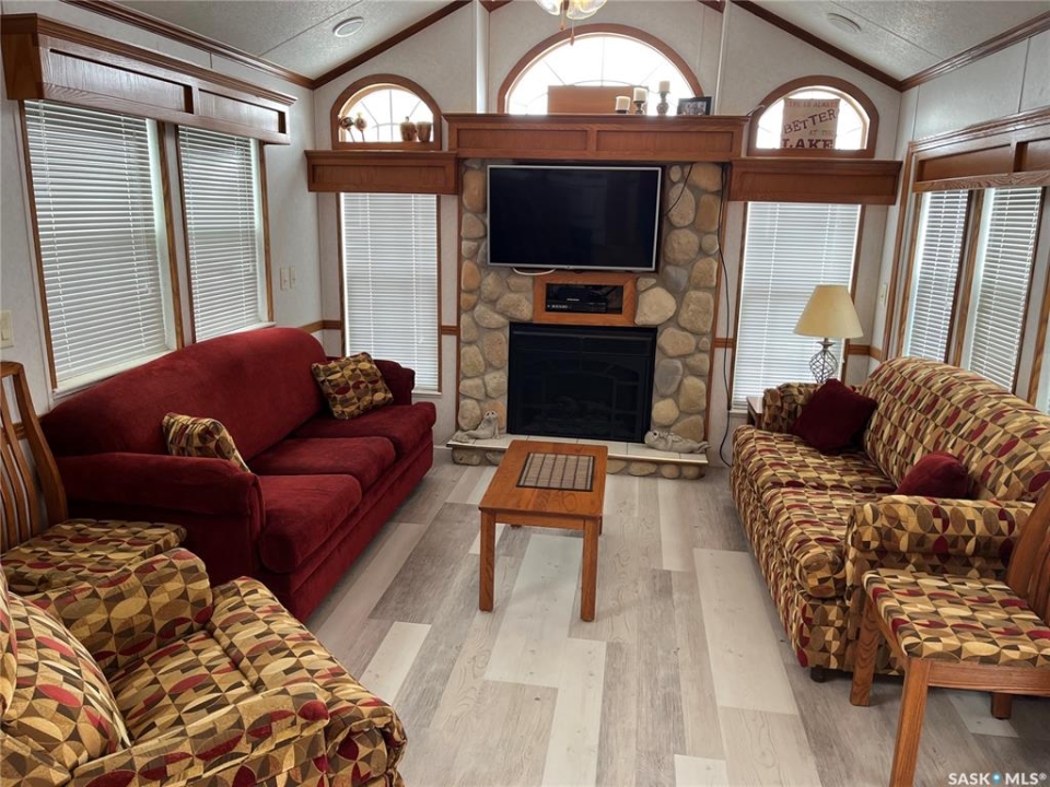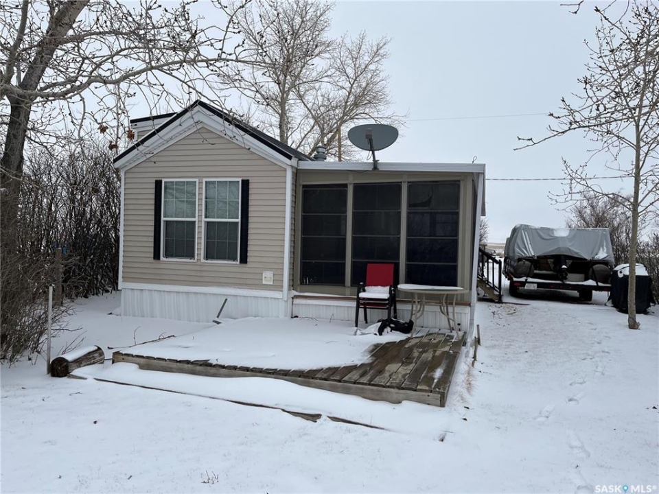 HURRY TO GET YOUR PIECE OF PARADISE!! Situated at Gaumond Bay , 10 kilometers from the Town of Gravelbourg on the Shores of Thomson Lake is this Resort Community and lies this park model on the water front. With its own dock, boathouse, abundance of yard space, fire pit area, underground sprinklers, close proximity to Thomson Lake Regional Park, lots of privacy and so much more you really should book your private viewing. Did I forget to mention that the home is in excellent condition and still looks brand new, the furniture and contents can be part of the sale, with an open concept, vaulted ceilings, fireplace, and lots of cupboard space. Then there is the outside which boasts 3 deck spaces for all types of weather or comfort levels, the gorgeous enclosed 10x16 sun room can be enjoyed in almost any weather situation, the second deck 10x22 features a tinned roof for shade but is open on the sides to enjoy the warm summer days and then the 12x12 wood deck at the south side of the home that is totally open for just lounging or whatever you chose. Across the lake is Thomson Lake Regional Park which you can enjoy a 9 hole golf course, swimming pool, clubhouse with a restaurant, concession, camping and numerous other outdoor activities. If you have to run to town for something the Town of Gravelbourg is only 10 kms away with a grocery store, gas station, Hospital, churches, pharmacies, restaurants and much more. You should come and see this property today.