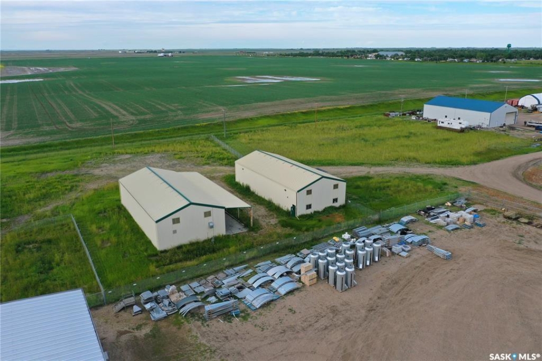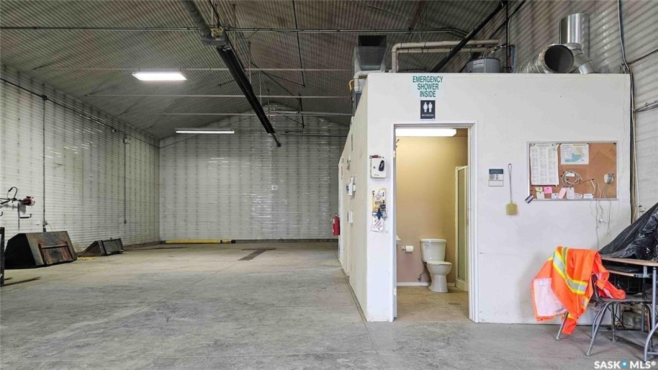 Prime Industrial Opportunity on Highways 7 & 4 -- Position your business along Rosetown's major transportation corridors. This 2.29 acre Light Industrial property offers exceptional flexibility for equipment repair, storage, or a wide range of commercial/industrial uses. Located in Rosetown's industrial park, the majority of the site is secured within a fenced compound. The property includes two 40' x 80' x 20' warehouse buildings, each built with Makloc rigid frames, concrete floors, concrete foundations, and white aluminum interior sheeting. BUILDING #1 (Heated & Insulated): Forced air gas furnace (2023) + overhead radiant heater, one 12' x 14' overhead door, three steel man doors, two washrooms (one with shower; new hot water tank 2023), utility room, center floor sump with grates and separator, 3 HP vertical air compressor, security system with remote monitoring and a 200 amp main electrical panel. BUILDING #2 (Unheated): Two 12' x 14' overhead doors, two steel man doors, center sump, 100 amp exterior sub panel with explosion proof electrical service, awning with 15' eave height for sheltered loading/unloading, loading dock with sump pump (can be filled for grade level access). -- In 2021, the replacement cost for each building—frame and exterior only—was estimated at $338,000. With concrete, services, and inflation, this represents a million dollar build today. --- The heated shop is presently leased and generates a nice income. --- This property sits less than one mile west of the Highway 7 & 4 junction and is minutes from multiple bulk fuel suppliers. Highway 7 serves as a major route between Saskatoon and Calgary, while Highway 4 connects Meadow Lake to the U.S. border, ensuring excellent logistical access in all directions.