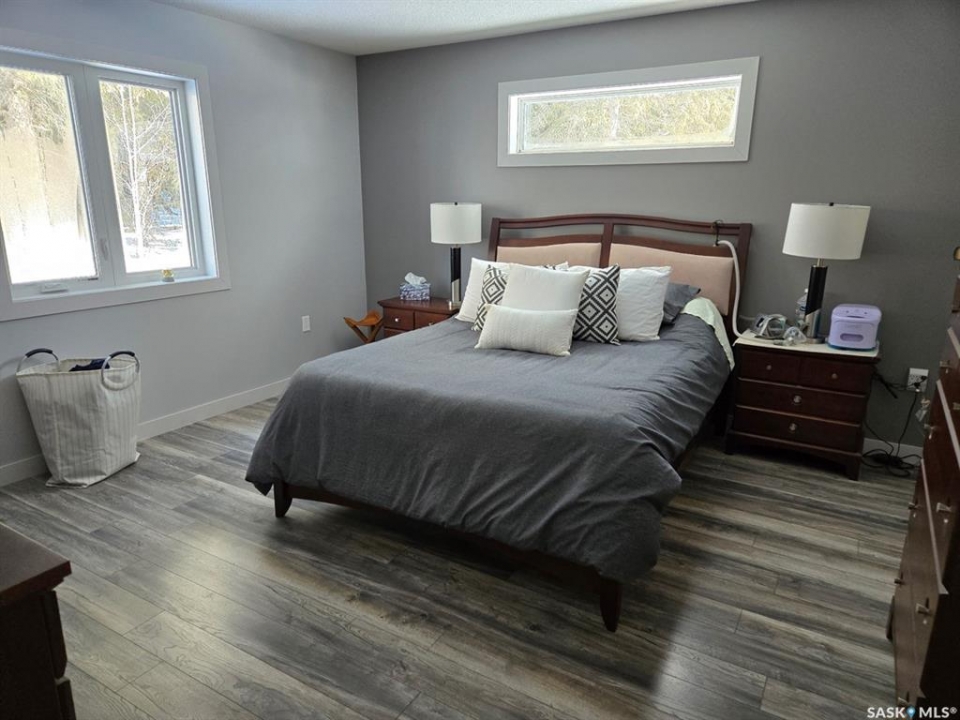 Gorgeous 3.64 acreage that is adjacent to the west side of Turtle Lake, SK. This property is only minutes from the water's edge and is in a mature, treed environment providing privacy, serenity, and the utmost relaxation. As you drive into the property through an extended driveway, you arrive at an amazing-looking 1830 sq ft home with a double attached garage, this property shows tremendous pride from the outside, and with no disappointments as you enter the home. The main has a kitchen with plenty of cabinets, counter space, and an island, which flows into the dining area and onto the living area that features a gas-burning fireplace and patio doors that takes you onto a back yard deck. Master bedroom with a full bath en-suite and a walk-in closet, two additional bedrooms, and a full bath. Off the entry from the attached garage, there is a half bath and a utility room with a washer and dryer. The In-floor heating and water systems equipment is found off an entry from the garage. As you leave the home through the garden doors from the living room, you enter onto a 638 sq ft deck that overlooks the back yards filled with perennials, wildlife, and birds that love their feeders. The front yard is meticulously landscaped with bushes and numerous colorful perennials. The side yard has a 36 x 28 triple bay partly heated garage. This only begins to describe the property, viewing the property will only give it its justice, and you will not be disappointed. Call an Agent today.