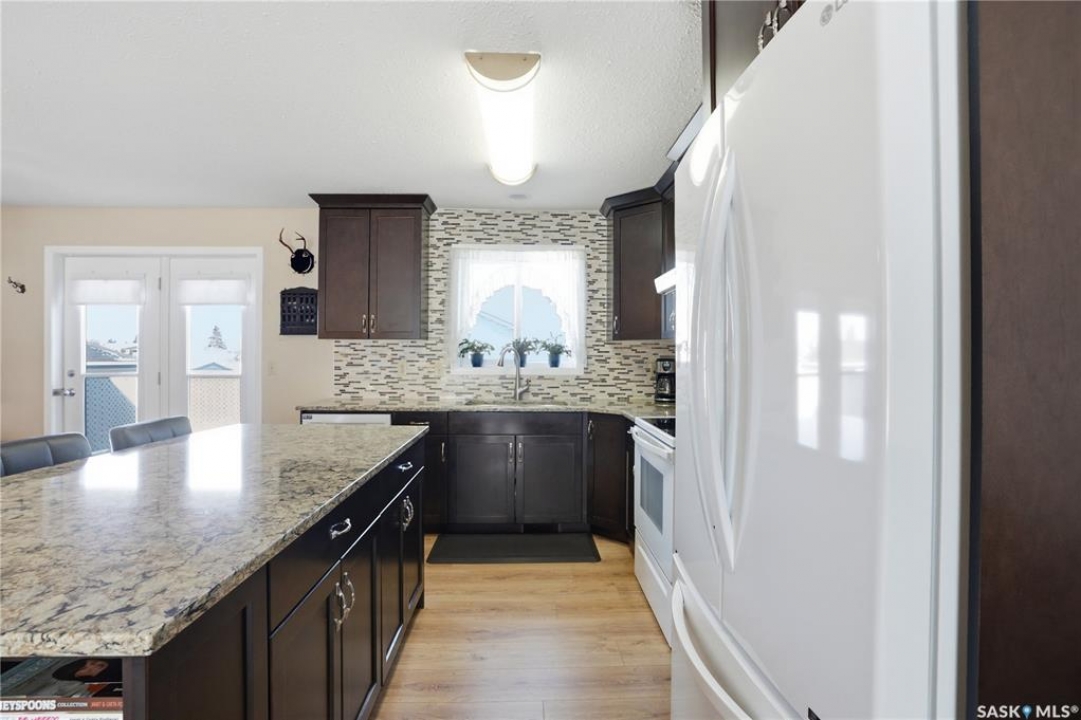 Backs Lions Park & greenspace!! Welcome to 425 5th St S, Martensville, this 5 bedroom, 3 bathroom bilevel comes move in ready with upgrades already done. The open concept kitchen features a grand island, granite countertops, and tile backsplash. The flooring on main floor has newer laminate through the living space. The primary bedroom also has its own ensuite making this a good fit for all buyers. The basement offers 2 more bedrooms, bathroom (needs shower installed to make B3) and a massive laundry room finished with cabinets and storage space. Out back you have a dream 25x27ft heated detached garage with 8 ft doors and 9 ft ceiling and there is even a floor drain to collect all the melted snow. Other notables: central air conditioning, deck off dining room, front concrete driveway, and is fully fenced. Don't miss out on this great home!