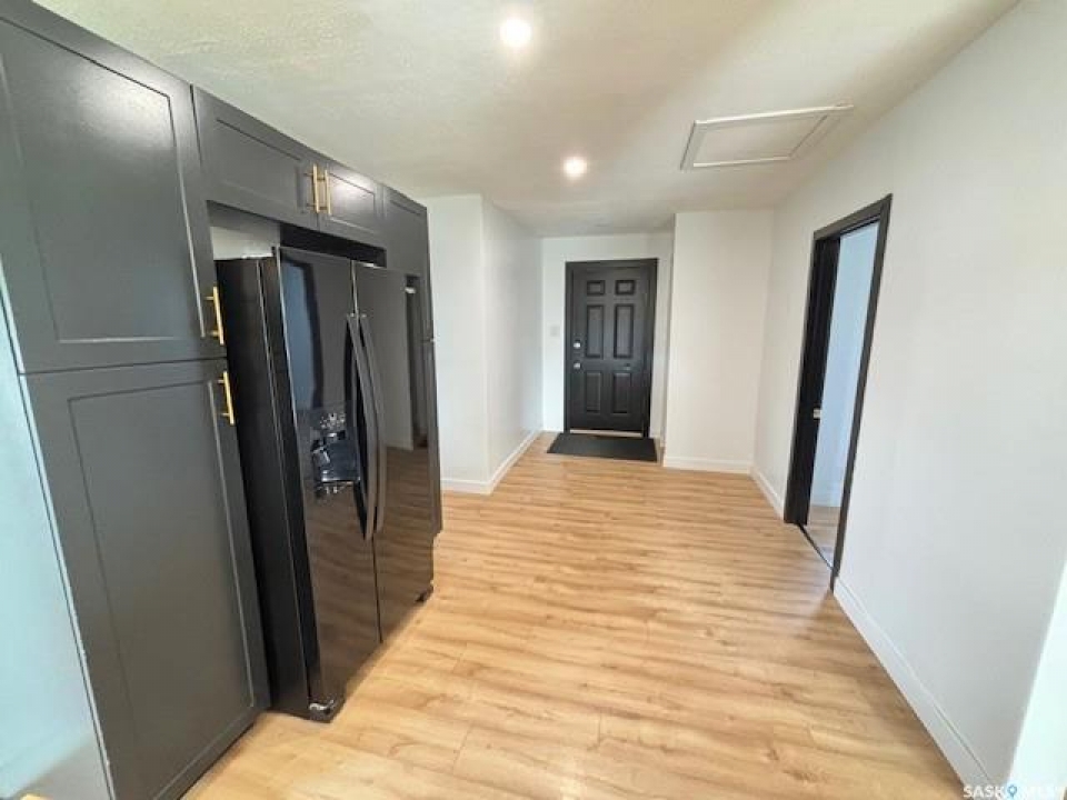 Welcome to this charming 840 sq ft bungalow located in the desirable North West Palliser area of Moose Jaw, close to schools and parks—perfect for first-time home buyers or those looking to downsize. The main floor features a bright, open-concept layout with a beautifully renovated kitchen (2022), complete with darker-toned cabinetry, updated sink, dishwasher, ample counter space, and a functional breakfast bar/island—ideal for everyday living and entertaining. Laminate flooring runs throughout the kitchen, dining area, and bedrooms, while a large south-facing picture window fills the space with natural light. The main level also includes a full 4-piece bathroom and two ample sized bedrooms. The fully developed lower level offers additional living space with a comfortable family room, a versatile den perfect for a home office or playroom, and a utility/laundry area. Outside, enjoy the fully landscaped yard featuring a wood deck, a designated garden area, and a storage shed. A long single detached garage provides excellent parking, storage, or workshop potential. Immediate possession is available—don't miss this opportunity to own a well-updated home in a great location!