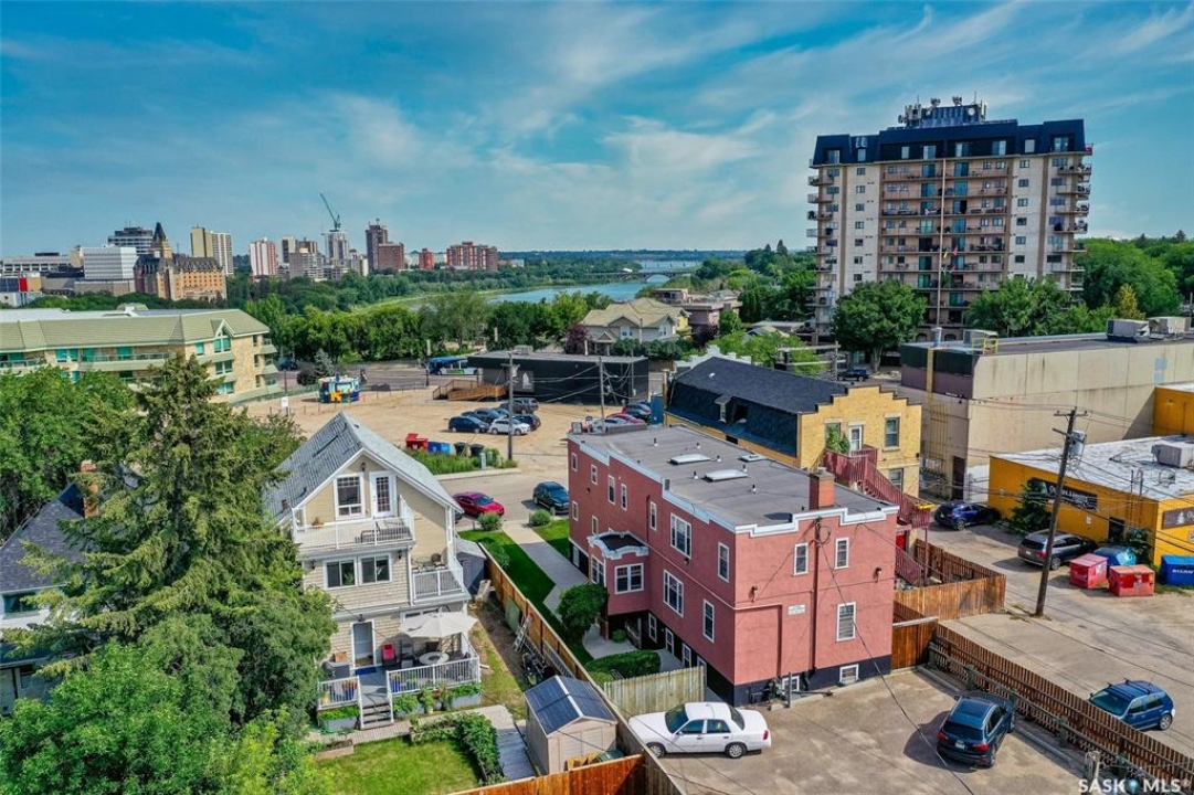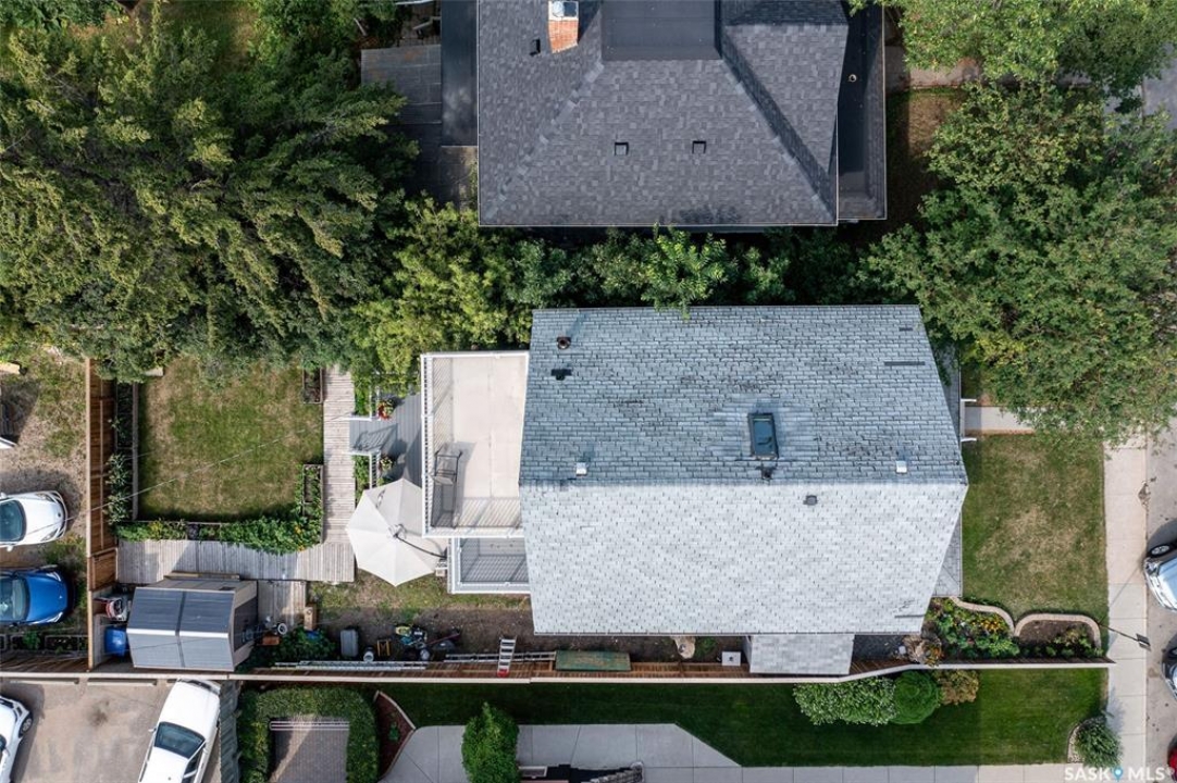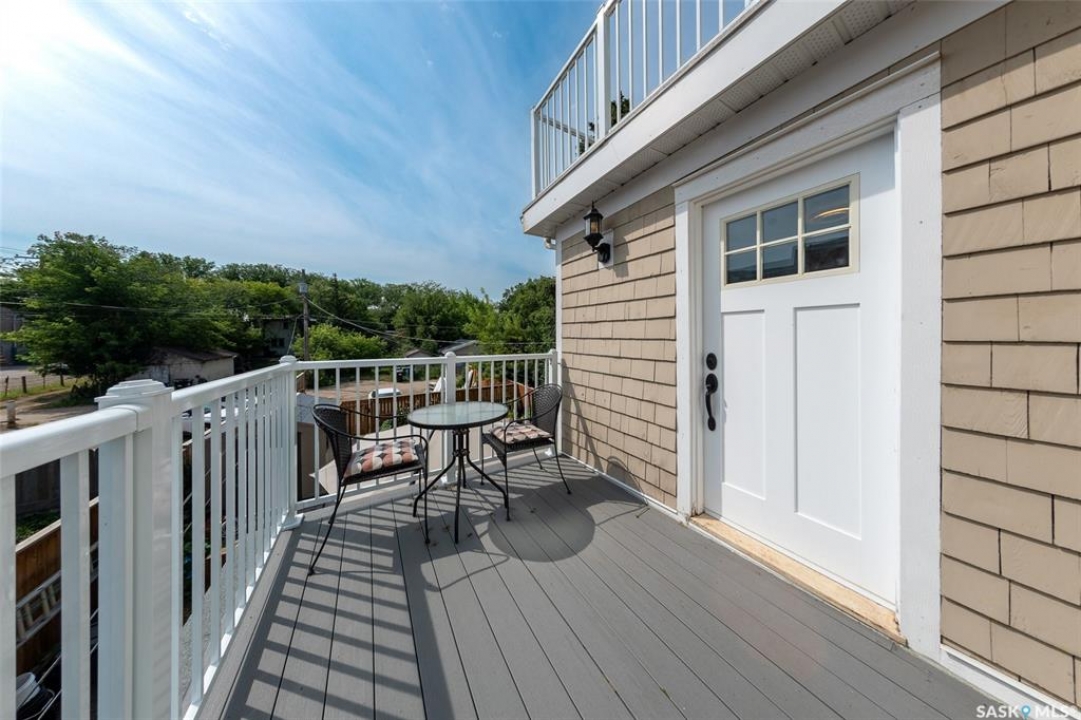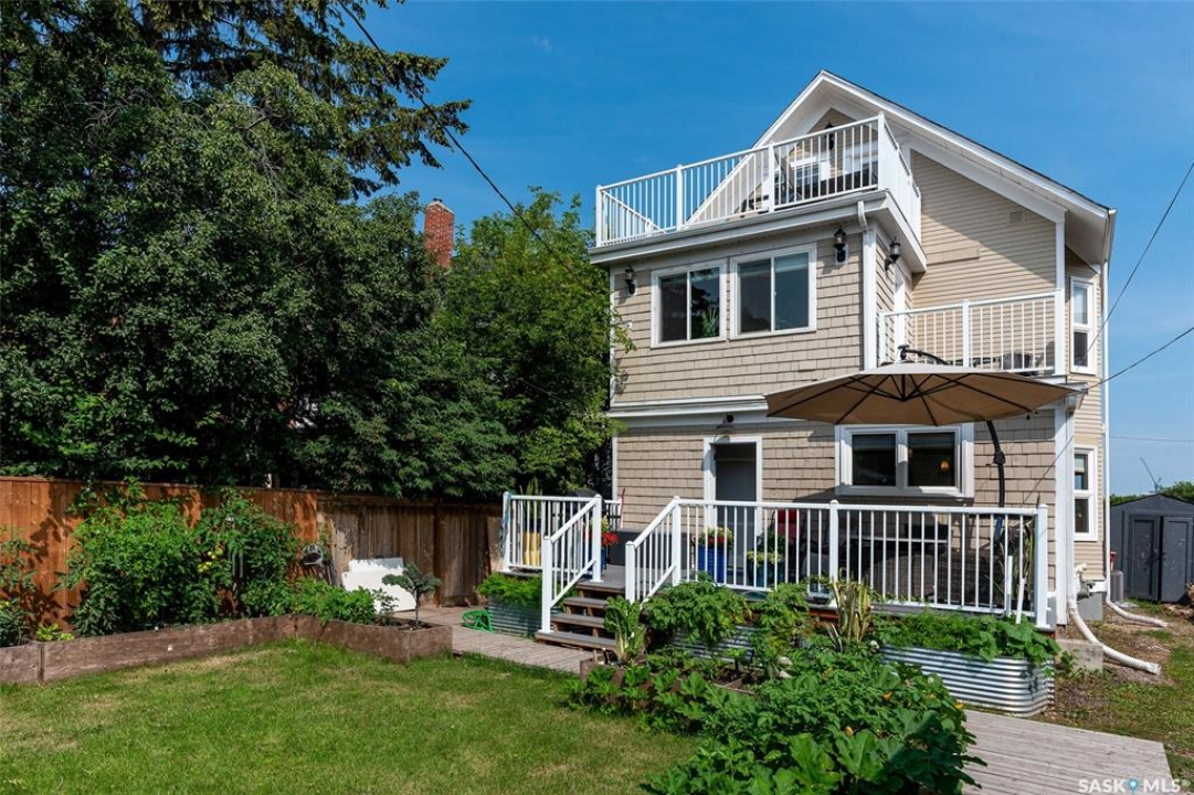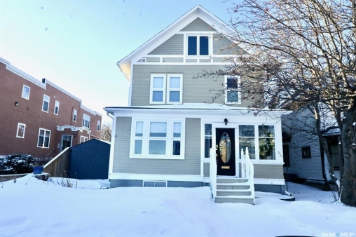 Just steps from the Saskatchewan River, tucked into the historic Nutana Neighbourhood, this Character 1911 home has been lovingly restored for clients who appreciate the history and location of this property. This spacious home has a completely renovated kitchen with quartz countertops, new cupboards and backsplash, under counter lighting, all new appliances, including a newer large wine and beer fridge and a nice open floorplan flowing through to the dining room and living room. An office space and main floor laundry are a great convenience on the main floor. Four- piece bathrooms on each of first two floors and half bath on third floor are convenient. Three large bedrooms on the second floor, one with a very large walk-in closet with window. (Could be used as a nursery.) One of the bedrooms on the second floor can also be used as a Sunroom. A new staircase leads to the third floor where the primary bedroom could be located. This room could also be used as a bonus room or very large office. Owner has replaced much of the crown molding to return this property to its original glory. There are South facing decks off the second and third floor as well as a back deck off the kitchen, also South facing. Most windows are new. Furnace, water heater and reverse osmosis recently changed. New paint everywhere and new engineered hardwood flooring make this is a turnkey property (Vinyl planking on the 3rd floor). Arches, tall baseboards, bay windows and glass doors complete the historic look of this home. This property has a completely fenced in backyard with board sidewalk leading to parking off the back alley. There is room for a garage. The owner has also created a small oasis of gardening boxes tucked around the back yard which is drenched in sunshine most of the day. Come and visit this beautifully renovated historic home, you'll be glad you did.