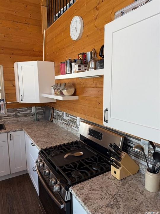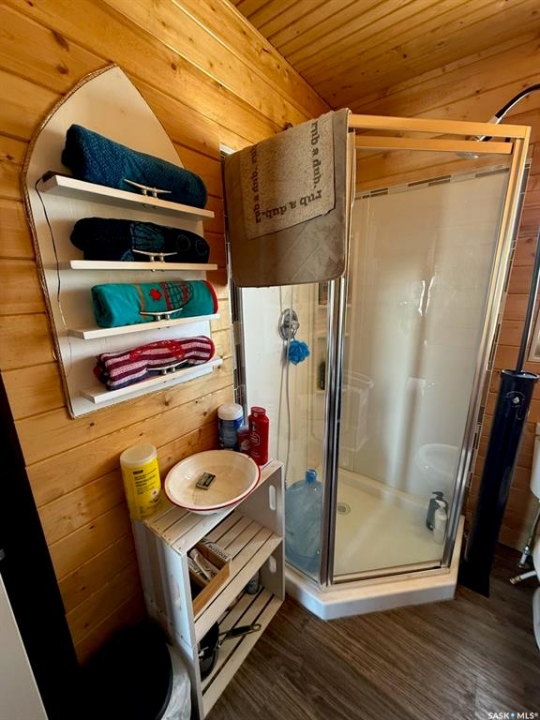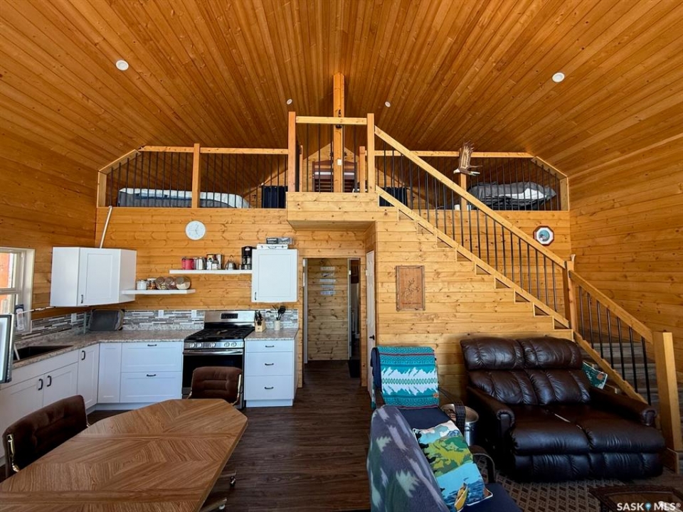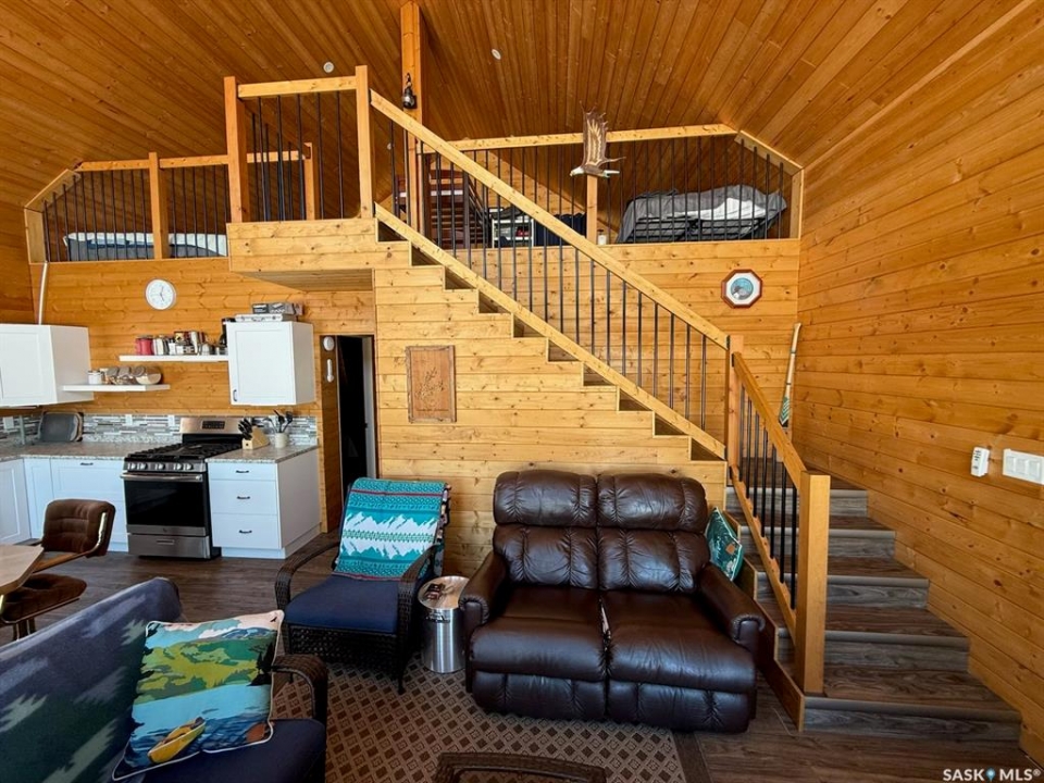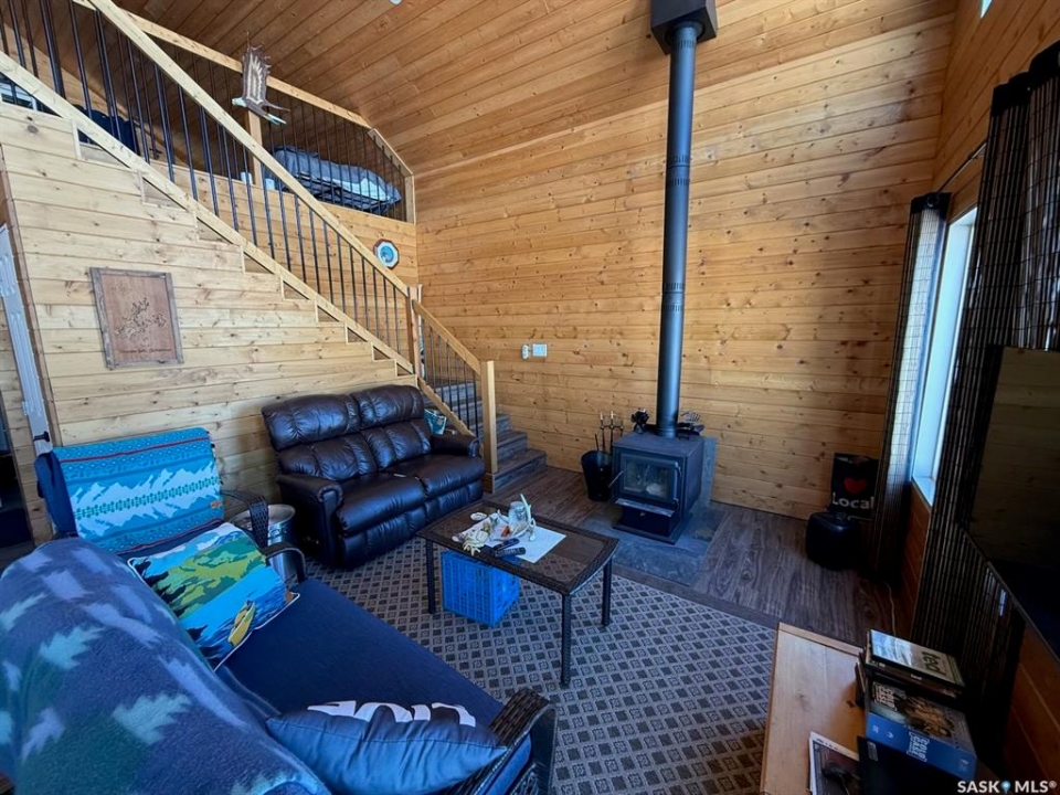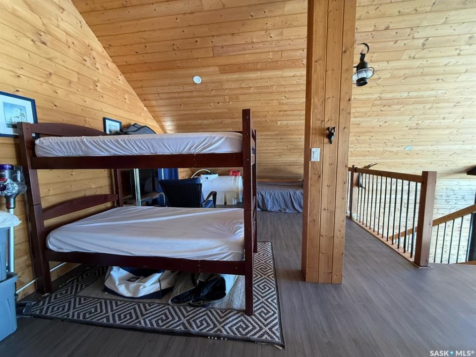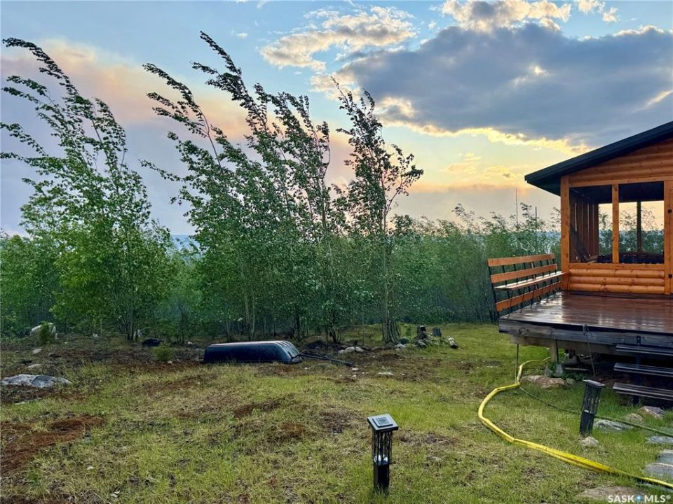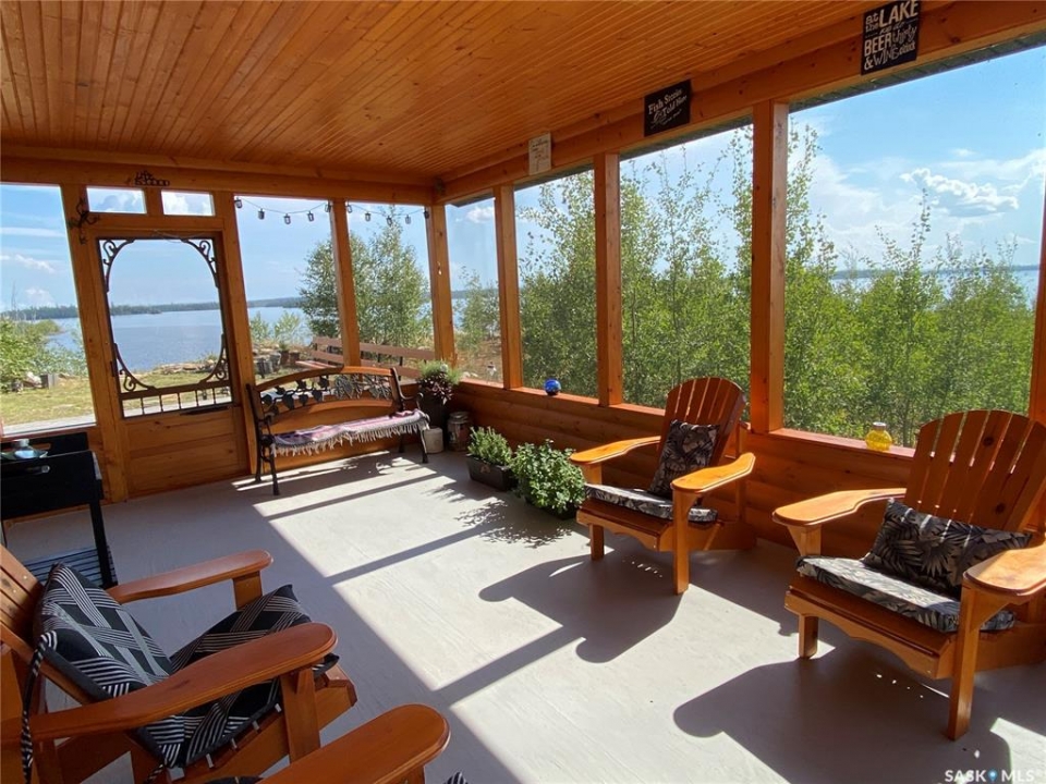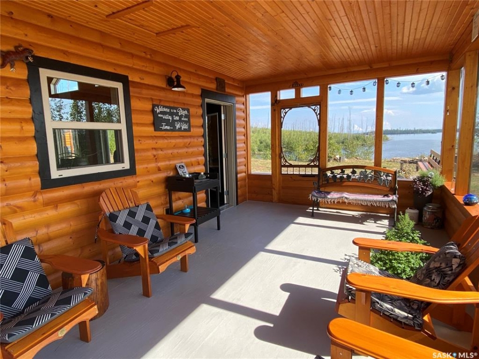 Life your best life at this gorgeous boat-in remote cabin on Nemeiben Lake with its own beach and dock! This beautiful turn-key cottage was professionally built in 2017 with high attention to detail and using new materials throughout. The open concept kitchen, living, and dining room features a high vaulted ceiling with spectacular views, custom white cabinetry with a tiled backsplash, full-size fridge, a large pantry, and a propane stove for cooking. Propane wall heaters in two rooms and a wood burning stove in the living room mean you can some out in the winter to enjoy. The entire cabin is finished with beautiful tongue-in-groove pine on the walls and ceilings and the main level features high quality weather-stable vinyl plank flooring. Just off the kitchen is a massive screened-in room with space to entertain the entire family! You could spend all day here alternately enjoying sun and shade as the sun moves across the sky, while you enjoy panoramic views of Nemeiben Lake on 3 sides and no bugs. There is a nice sized bedroom on the main level, as well as a full bathroom with a shower, flush toilet, vanity, and custom nautical themed shelves. Also on the main floor, the mechanical room houses the solar power inverter and batteries and has plenty of room for storage. Upstairs there is a large room with sweeping lake views across the vaulted ceiling as well as from the 2 opening windows facing the back bay. You could make 1 or 2 private bedrooms or leave it open to enjoy the view in all directions. The cabin comes fully furnished and includes a storage shed, boat dock, large open deck, solar power system, on-demand propane water heater, water pumps to draw water from the lake, and a lovely rock fire pit overlooking the water. Currently on a 33 year recreational lease from the Province of Saskatchewan (with 24 years remaining), but there is an option to purchase the land to own title. There is SO MUCH to see in this gorgeous & serene spot - call for more information!