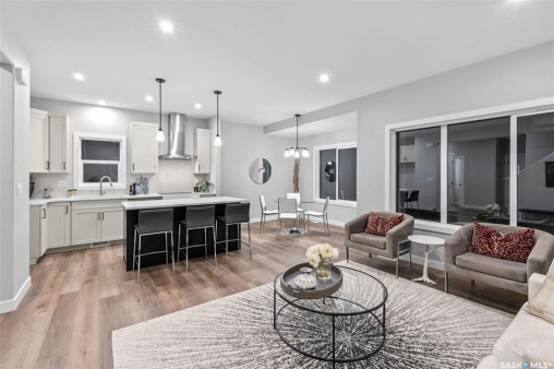 Welcome to "The Holdenberg" by premier builder Ehrenburg Homes in the desirable Eastbrook neighbourhood! This exceptional home showcases top-quality craftsmanship and premium materials throughout. The main floor boasts an open-concept layout perfect for entertaining. A welcoming front entry leads to a bright and expansive living room, highlighted by a stunning stack stone feature wall and an elegant electric fireplace. The contemporary kitchen offers a sleek center island with an eating bar, a large pantry, and quartz countertops, while the oversized dining area is ideal for family gatherings. A convenient 2-piece bath is located off the front foyer. Upstairs, the expansive primary suite includes a walk-in closet and a private 3-piece ensuite. The second level also features a fantastic bonus room, two additional well-sized bedrooms, a full bath, and a laundry room for ultimate convenience. The basement is suite-ready with a side entrance offering endless potential. The exterior is just as impressive, with front landscaping, a front sidewalk, and underground sprinklers included. Plus, enjoy peace of mind with a Saskatchewan New Home Warranty. This home blends style, function, and superior construction—your dream home awaits! (PST/GST are included within purchase price). Photos from a previous build.