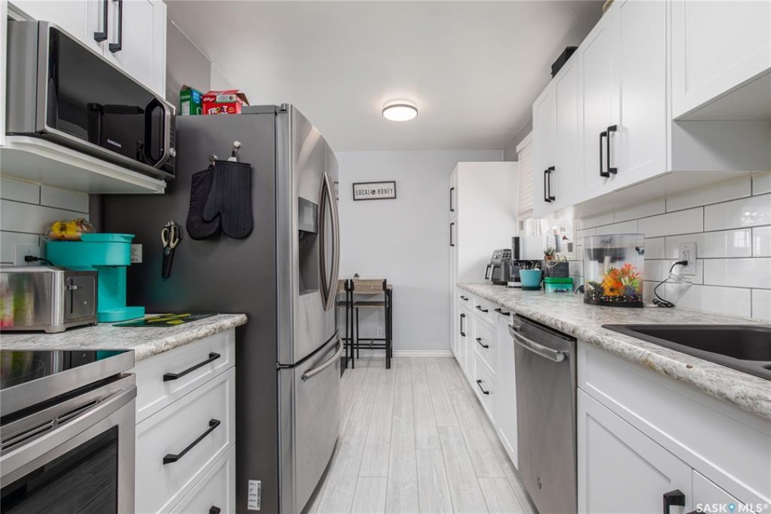 Step inside this adorable home! Bright and welcoming living room, where new whitewashed flooring flows seamlessly into a beautifully renovated custom kitchen by Kopp Cabinets designed for everyday living. Down the hall, you'll find three comfortable bedrooms along with an updated 4-piece bathroom, offering a functional layout for families of all sizes. The fully finished basement (completed in 2021) adds even more living space, featuring a cozy family room perfect for movie nights or a play area for the kids. There's also a versatile nook currently set up as a bar and office space, giving you flexibility to suit your lifestyle. A large fourth bedroom, 3-piece bathroom, and dedicated laundry room complete the lower level. Outside, enjoy a fully fenced yard with a newer composite deck and fire pit area ideal for relaxing or entertaining. With plenty of parking and major mechanical updates already taken care of (furnace, air conditioning), this home offers peace of mind and convenience. All that's left to do is move in and make it your own.