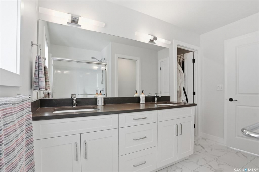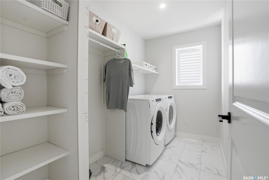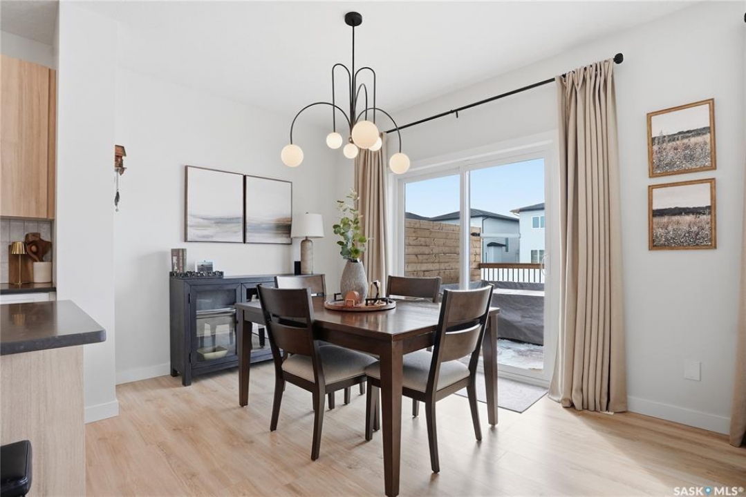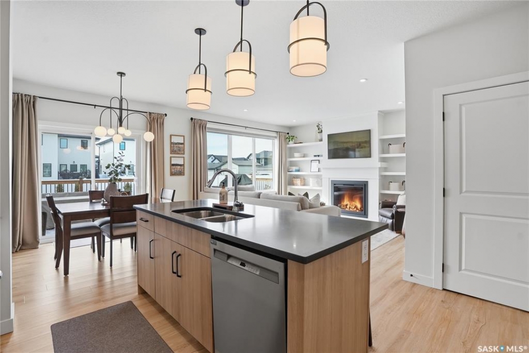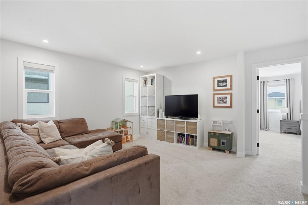 Located in the vibrant community of Brighton, this beautifully designed two-storey offers over 2,100 sq ft of thoughtfully planned living space. Blending style and function, this move-in ready home is perfectly suited for modern family living. The main floor is bright and inviting, featuring 9 ft ceilings and an open-concept layout ideal for everyday life and entertaining. A cozy gas fireplace anchors the living space, while a main-floor office adds flexibility for working from home or study space. The kitchen stands out with its two-tone cabinetry, quartz countertops, pantry, and direct-vent exhaust. Large windows bring in plenty of natural light, enhancing the home's warm and welcoming feel. Upstairs, you'll find 4 bedrooms, a spacious bonus room, 2 full bathrooms, and convenient second-floor laundry, offering both comfort and practicality for busy households. Additional highlights include a double attached garage and a fully finished exterior with a large treated deck and vinyl fencing, creating a great outdoor space for relaxing or entertaining. Ideally located with easy access in and out of the neighbourhood and close to amenities, this is a fantastic opportunity to own a well-appointed home in one of Saskatoon's most sought-after communities.