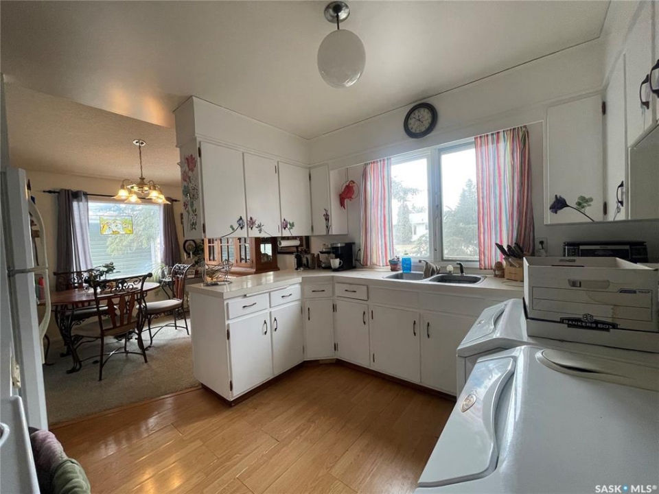 1001 2nd St. W in Kindersley across from the hospital, this 1227 sq ft split level home was built in 1968. Entering through the back door you will appreciate the character of the home. The main level offers a large living room that looks out back to the patio. There are nice large windows to allow the natural light in. Directly off the living room is the dining space that opens into the kitchen. The 2nd floor features 3 bedrooms, with the master having a 2pc bath. There is also a 4pc bathroom on this level. The lower level offers a 4th bedroom with a 2pc bath and large closet. There is also a family room & recreation space complete with pool table. The storage room houses the furnace (2020) and water heater (2019). This home is located on a corner that is fully fenced. There is a detached garage, nice tiered yard offering a patio with fire pit, and extra RV parking. Call to see this home today!