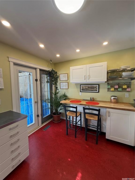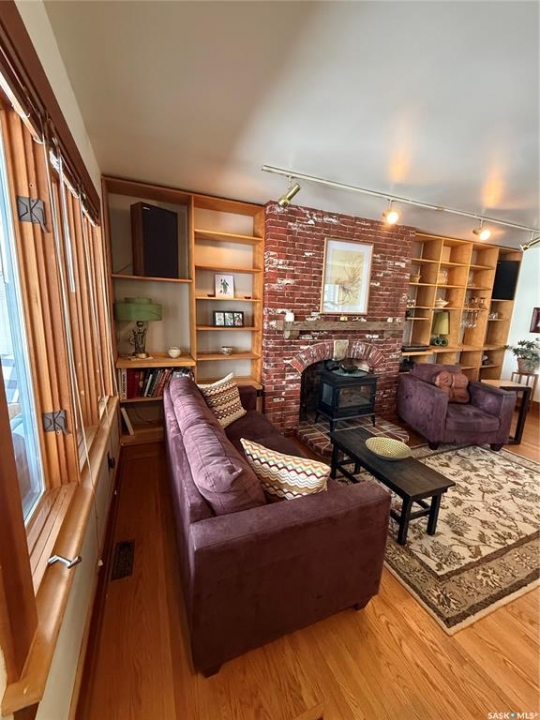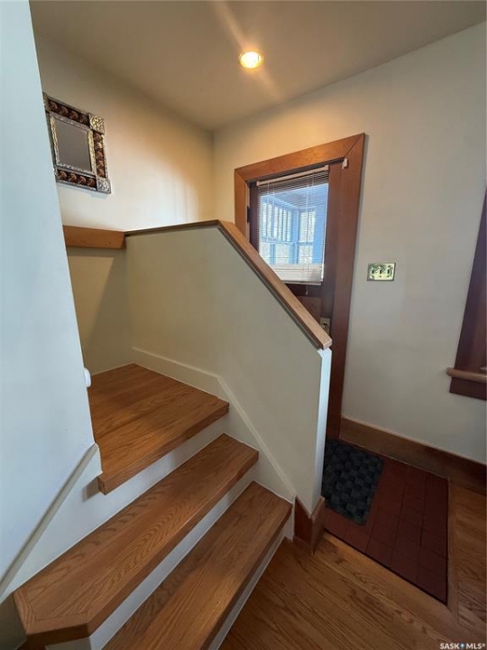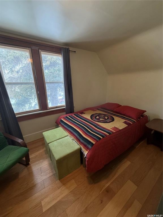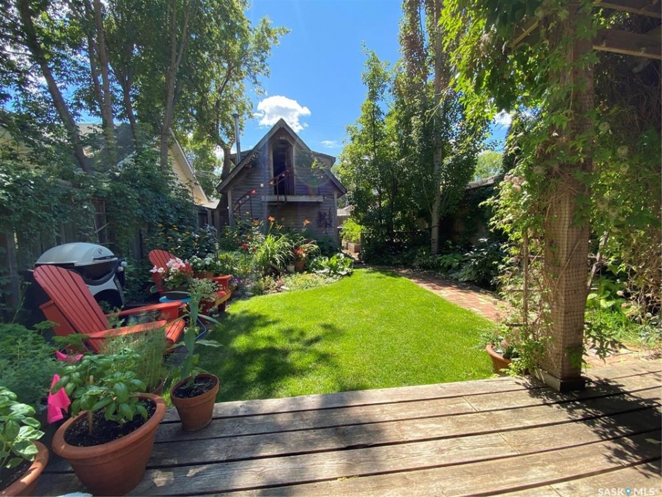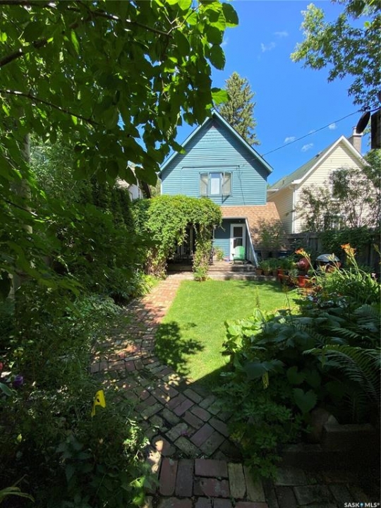 Charming character home in one of Saskatoon's most sought-after neighbourhoods — welcome to Buena Vista. From the moment you arrive, the enclosed front veranda draws you in, offering a cozy spot to relax beneath a canopy of beautiful mature trees on one of the area's most beloved streets. Step inside to a warm and inviting living room featuring built-in bookshelves and a charming mantle area that captures everything you love about character home living. The fully renovated kitchen (2018) comes with updated appliances — F/S, Dishwasher — stainless steel countertops flanking the stove, a stainless steel backsplash above, and a stunning stainless steel hood fan that anchors the space. A breakfast bar adds a casual dining option, garden doors off the kitchen lead you directly to the back deck — where a capped gas line is ready for barbecue hookup — and a convenient pantry keeps everything within easy reach. Upstairs, you'll find both bedrooms along with a generous den area nestled between them — a flexible space perfect for a home office, reading nook, or hobby room. Both bedrooms feature engineered hardwood flooring, and the den carries warm wood flooring throughout. The primary bedroom features a 2-piece ensuite, while the beautifully appointed 4-piece bath — fully renovated in 2019. The home has been well maintained with new shingles (2020), a new water heater (2025), and a new washer and dryer (2024) — all included. Step out back to a backyard that truly delivers — a covered deck attached to the home, lush grass kept effortlessly green by underground sprinklers (rear yard), and an abundance of established perennials that put on a show every season. The 12' × 20' single detached garage is topped with a finished, insulated three-season loft — ideal as an art studio, home office, or creative retreat. The AlarmTech security system is paid out and stays with the home.Preferred Possession available June 1st /26. A rare find in Buena Vista. Listed at $448,900 mls