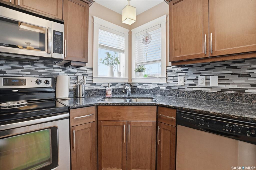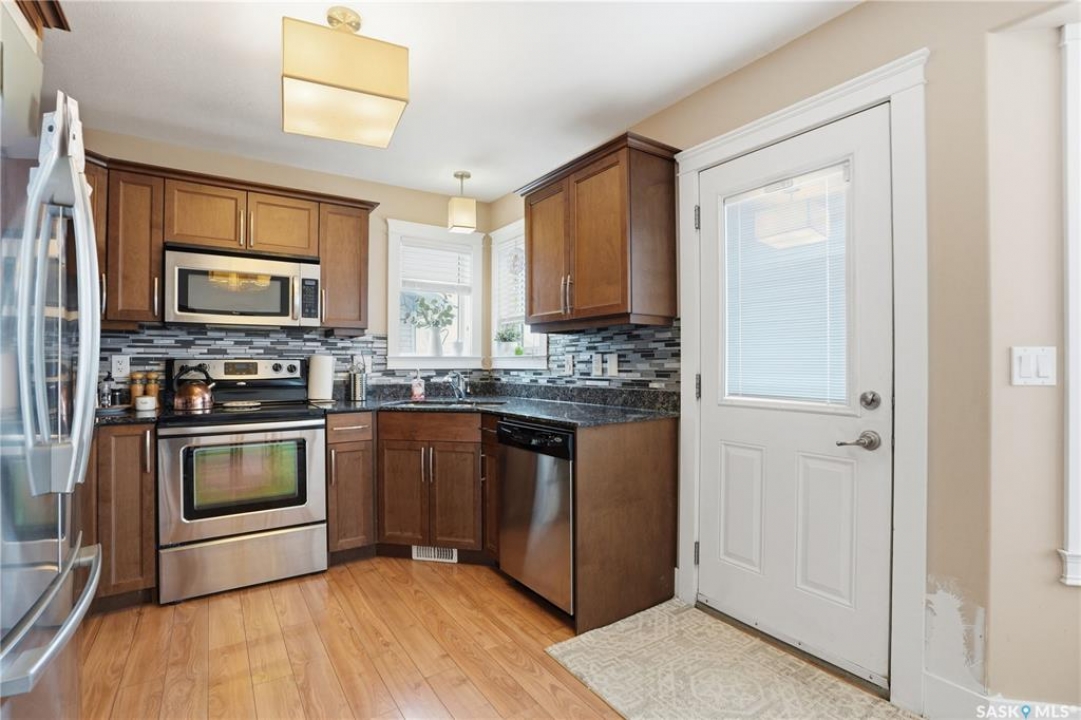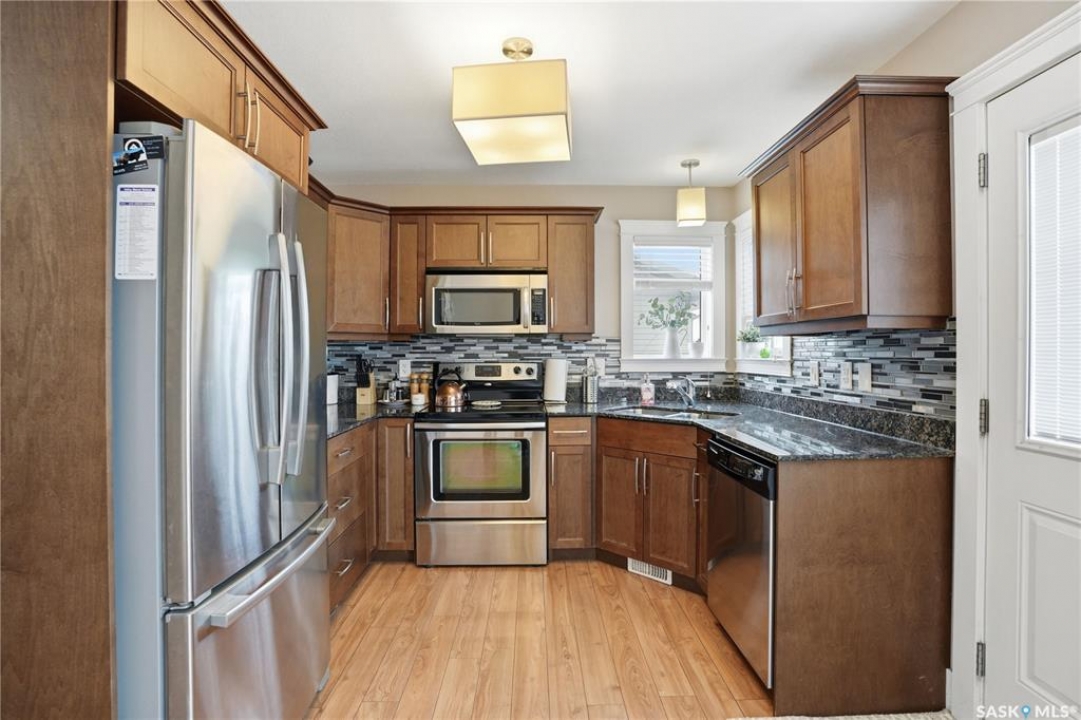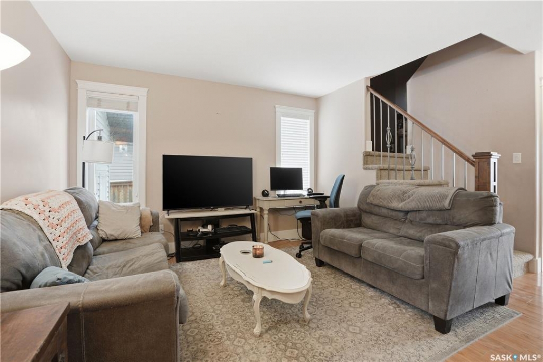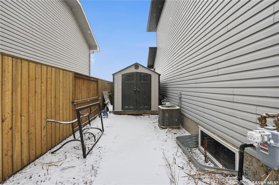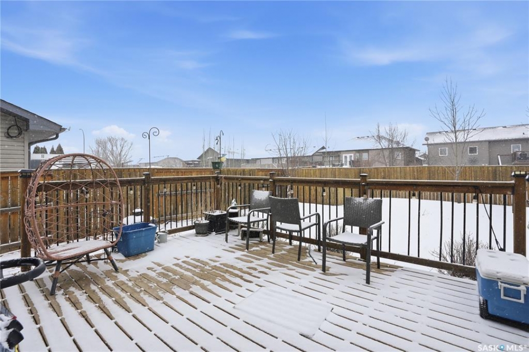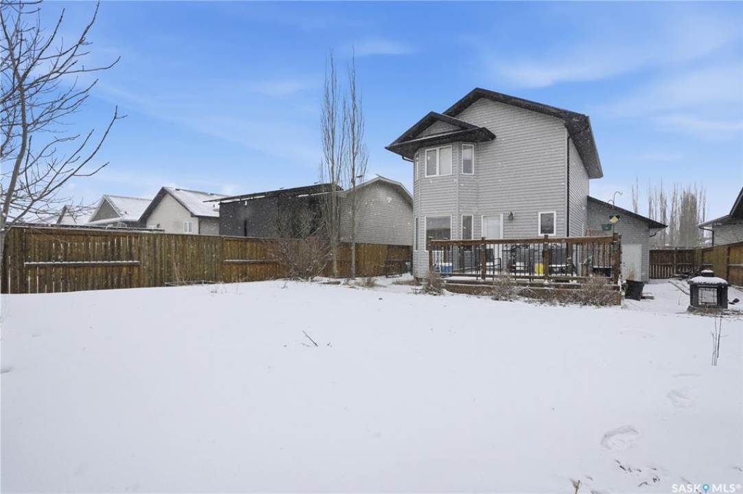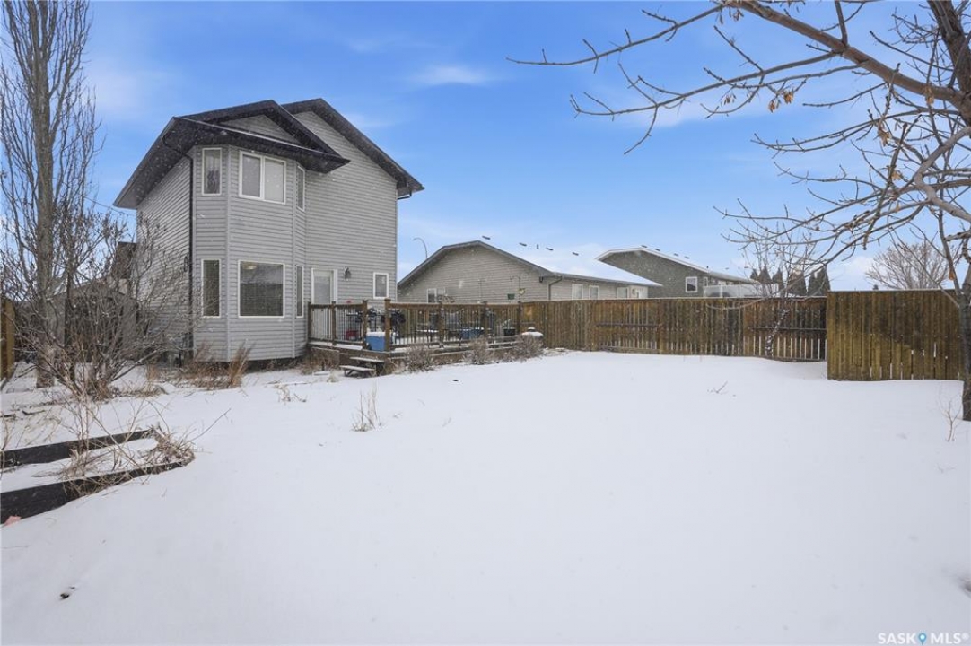 Located in the highly desirable community of Martensville, where listings are in short supply, this fully developed two-storey home is the perfect fit for a growing family. Just a short walk to the elementary school and parks, the location couldn't be more convenient. Offering 1,287 sq. ft., this move-in ready home features 4 bedrooms and 3 bathrooms, with a bright and functional layout. The kitchen is both stylish and practical, complete with granite countertops, tile backsplash, and stainless steel appliances. The main floor includes laundry, a spacious front entrance, and a 2-piece bathroom. The second level has a full bathroom and three bedrooms with the primary bedroom having a walk-in closet. The basement adds valuable living space, complete with a bedroom, full bathroom, and a cozy family room. Additional features include maple railings, central air conditioning, central vacuum, and a spacious front entrance. The back yard is fully fenced with a large deck, stamped concrete walkway and patio, underground sprinklers and a storage shed. The double attached insulated garage has direct entry and there is back alley access to the yard for future development or room for RVs, boats, and power toys. This turnkey home is ready for you to move in and enjoy.