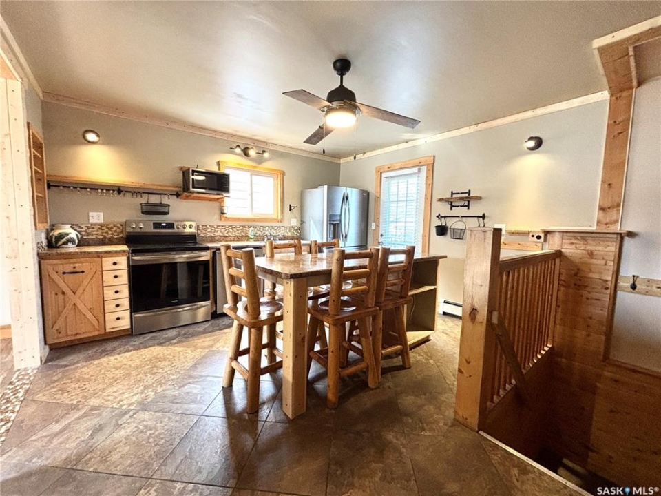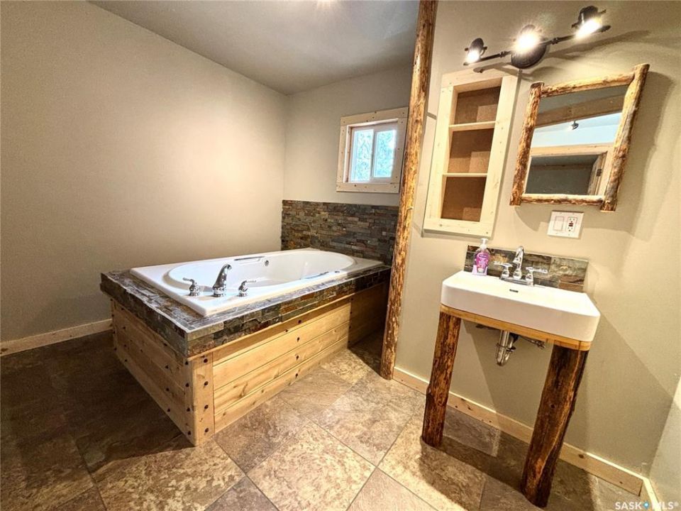 Welcome to this charming rustic retreat, where comfort meets functionality in a beautifully updated home. Thoughtfully renovated, the house has been lifted with a newly built basement, offering a solid foundation and expanded living space. The unique cork exterior not only adds character but also provides exceptional insulation—keeping the home warm through winter and refreshingly cool in the summer months. Inside, you'll find four well-appointed bedrooms, including one on the main level and three in the lower level, making it ideal for families or guests. The home features two stylish 3-piece bathrooms, with a stunning jetted tub upstairs that creates a perfect space to unwind. Select areas of heated tile flooring add an extra layer of comfort and luxury. Step outside and enjoy everything this spacious property has to offer. The large yard is a true outdoor haven, complete with raised garden beds, mature fruit trees, and an established raspberry patch—perfect for those who love to garden or embrace a more self-sufficient lifestyle. Cool off in the above-ground pool during warm summer days, or take advantage of the generous workshop space for hobbies, storage, or projects. This property offers a rare blend of rustic charm, modern updates, and outdoor living—an ideal place to call home.