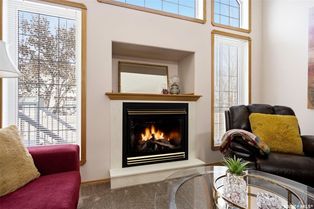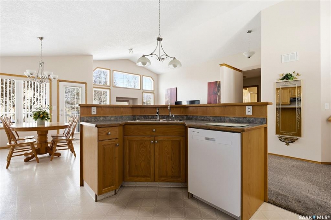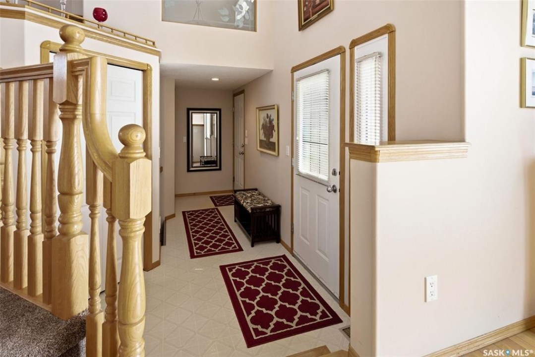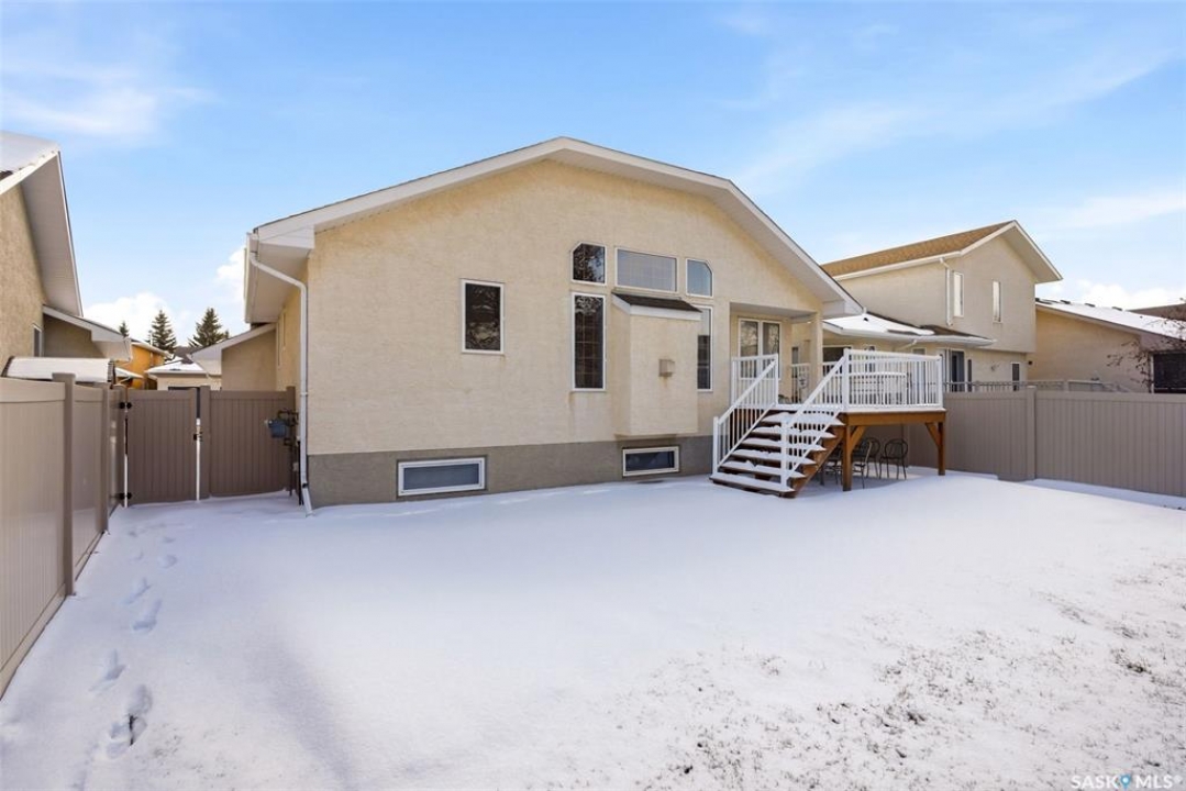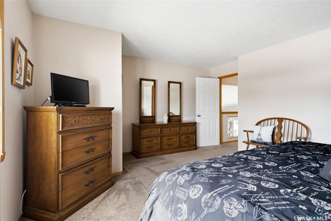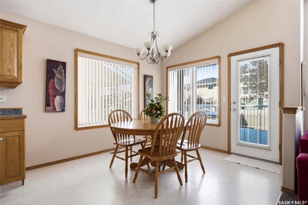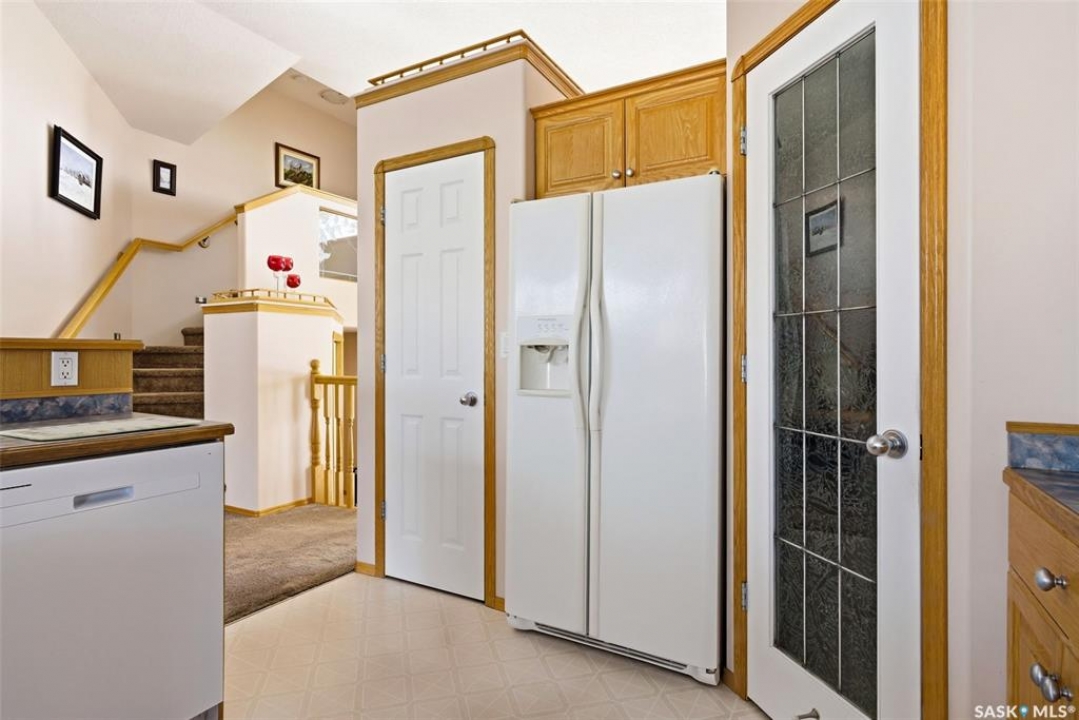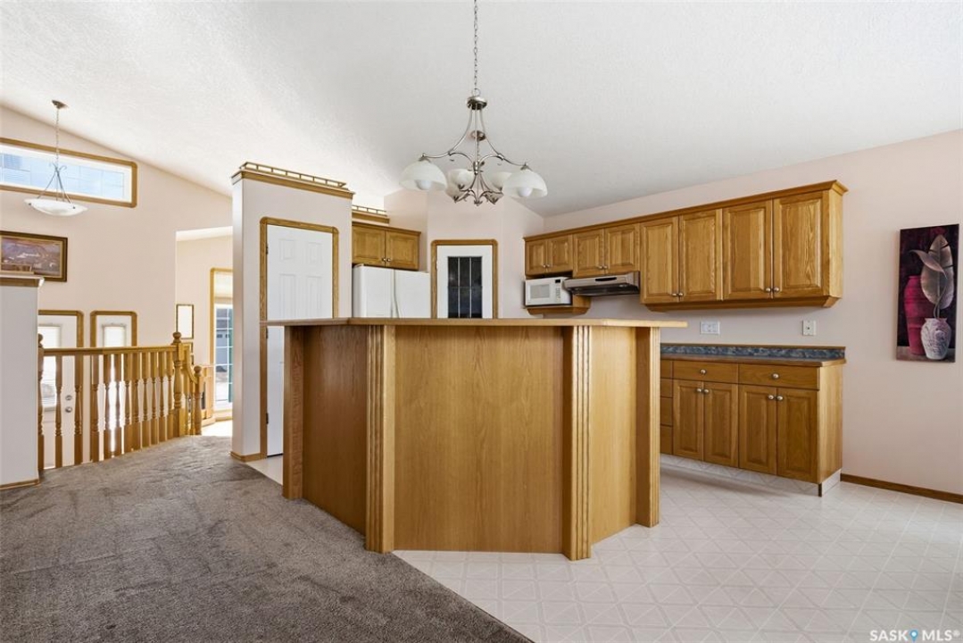 Absolute gem! Meticulously kept, custom-built by Emerald Park Homes, this unique modified bi-level offers 1,674 sq ft of thoughtfully designed living space with the primary suite above the garage. Step into a welcoming front entry featuring a versatile den/flex room—perfect for a home office or playroom. The open-concept main floor showcases a bright kitchen, dining area, and great room with vaulted ceilings, a cozy natural gas fireplace, and an impressive wall of windows that flood the space with natural light. The main level also includes two spacious bedrooms, a full bathroom, and a convenient laundry room. Upstairs, retreat to your private primary suite complete with a walk-in closet and full ensuite—your own peaceful escape. The bright basement features large windows, is fully insulated, and offers a wide-open layout ready for future development (basement plans available). The double attached garage (22' x 21') includes an additional 7' x 12' space ideal for a workshop or extra storage. Value-added upgrades include: Newer PVC fence (2020/21), Shingles (2015), New stove & dishwasher (2026). Additional highlights: corner pantry, under-cabinet lighting, closet lighting, central air conditioning, central vacuum, and all appliances included. Located in a fantastic family-friendly area close to St. Gabriel and Jack MacKenzie Schools—this is a wonderful place to call home!