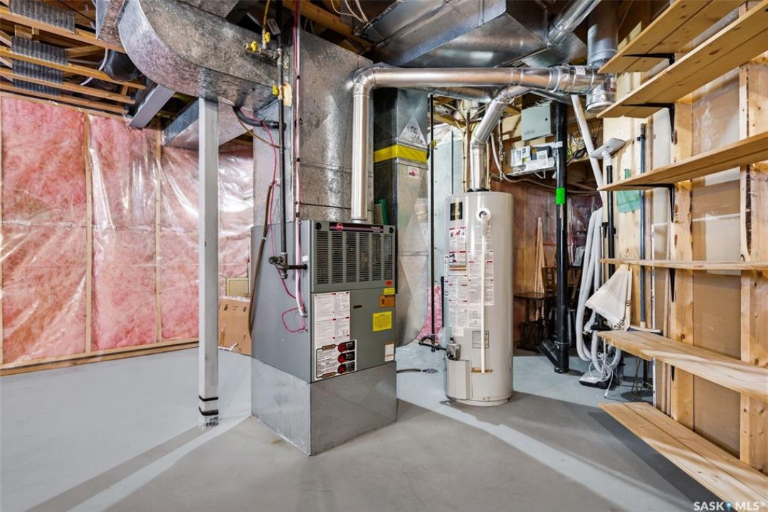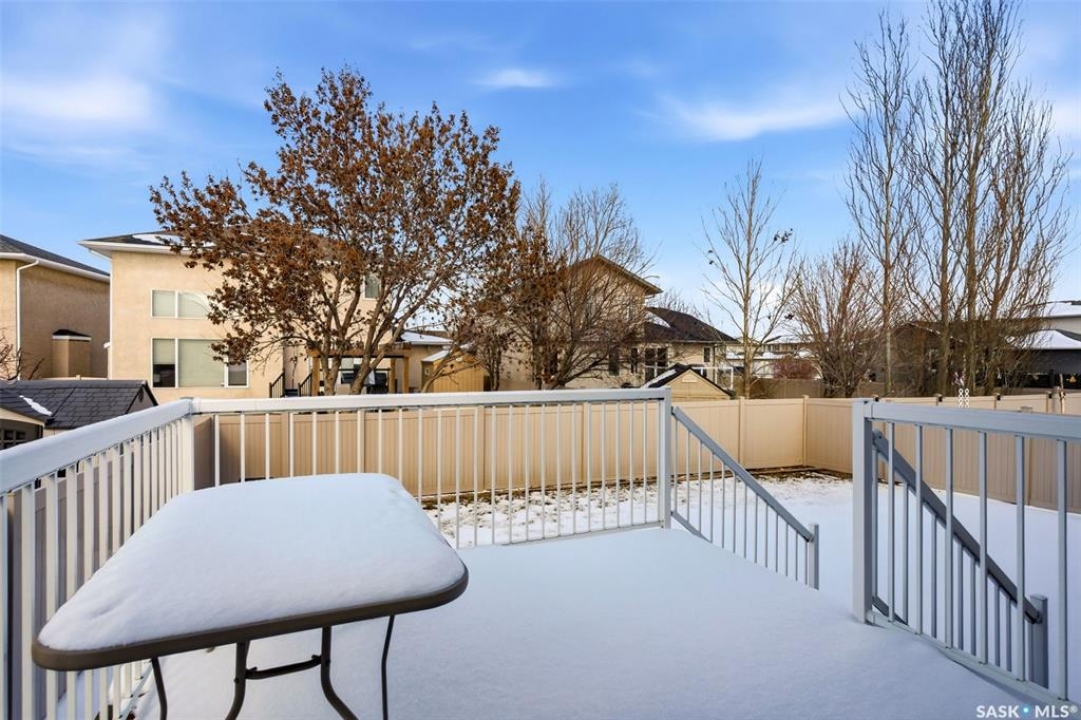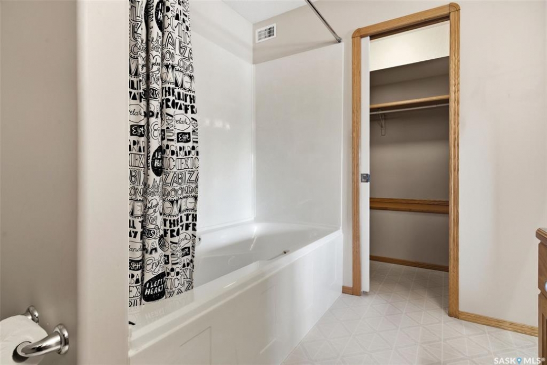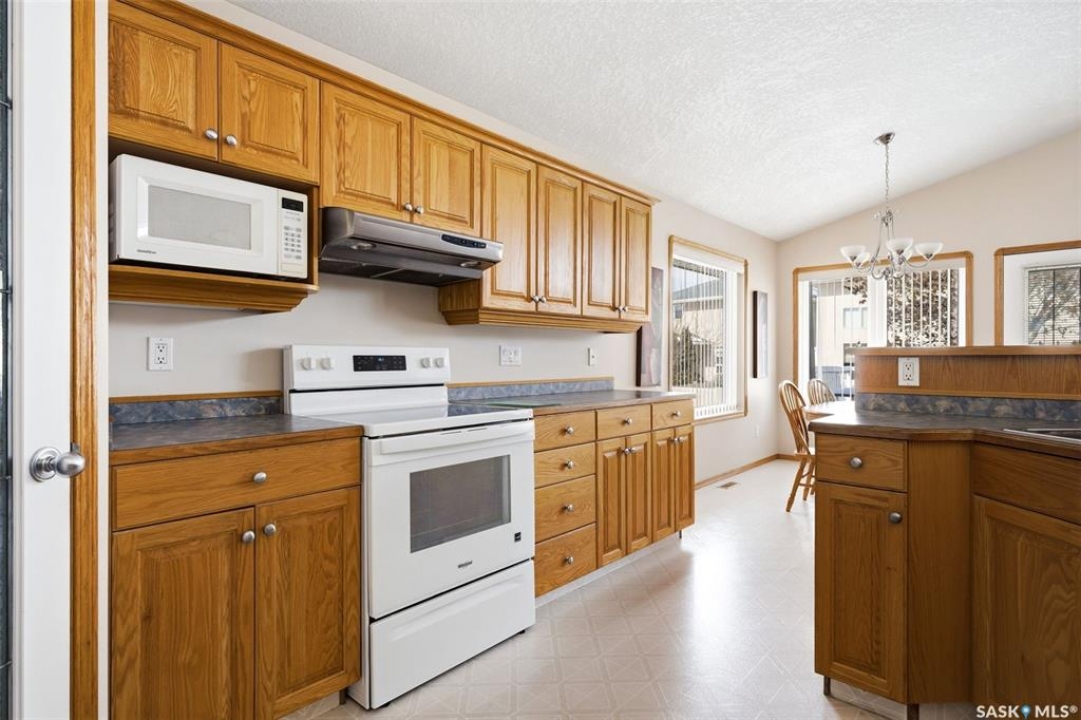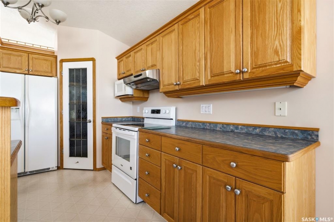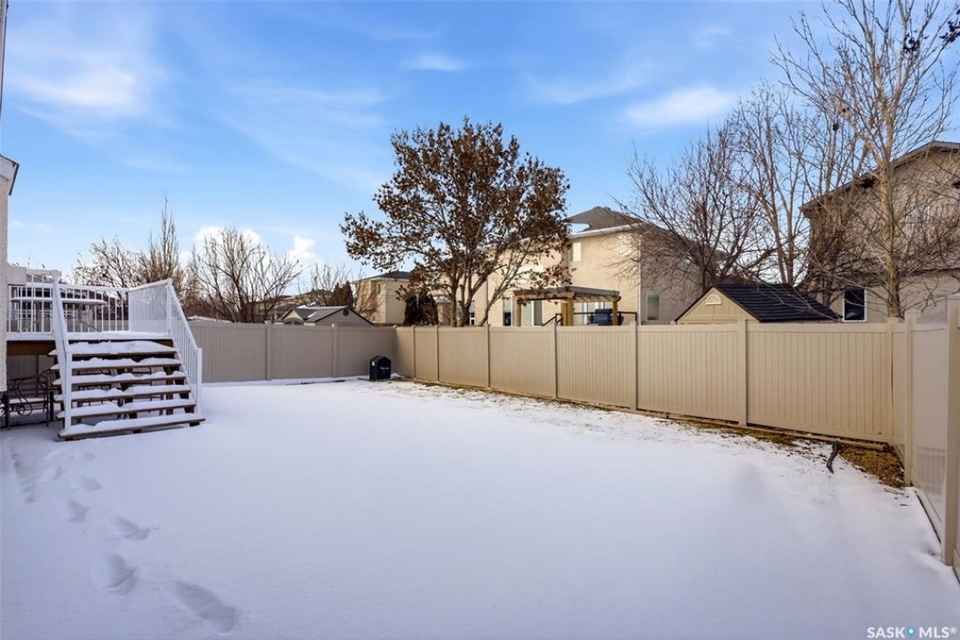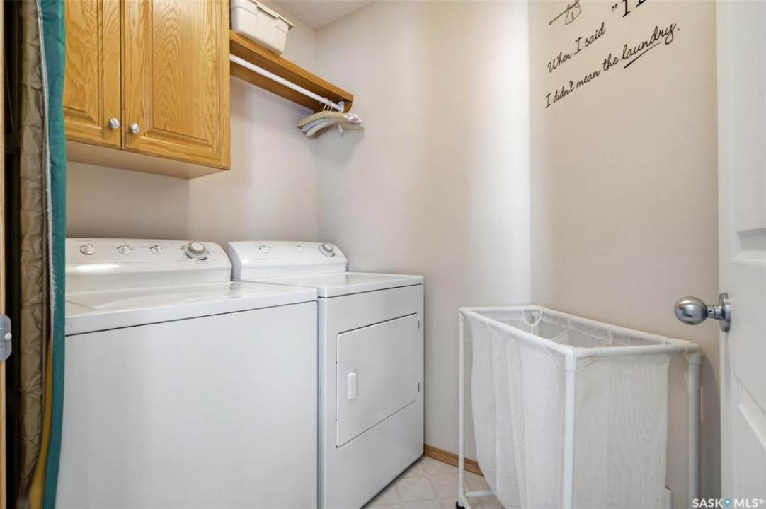 Absolute gem! Meticulously kept, custom-built by Emerald Park Homes, this unique modified bi-level offers 1,674 sq ft of thoughtfully designed living space with the primary suite above the garage. Step into a welcoming front entry featuring a versatile den/flex room—perfect for a home office or playroom. The open-concept main floor showcases a bright kitchen, dining area, and great room with vaulted ceilings, a cozy natural gas fireplace, and an impressive wall of windows that flood the space with natural light. The main level also includes two spacious bedrooms, a full bathroom, and a convenient laundry room. Upstairs, retreat to your private primary suite complete with a walk-in closet and full ensuite—your own peaceful escape. The bright basement features large windows, is fully insulated, and offers a wide-open layout ready for future development (basement plans available). The double attached garage (22' x 21') includes an additional 7' x 12' space ideal for a workshop or extra storage. Value-added upgrades include: Newer PVC fence (2020/21), Shingles (2015), New stove & dishwasher (2026). Additional highlights: corner pantry, under-cabinet lighting, closet lighting, central air conditioning, central vacuum, and all appliances included. Located in a fantastic family-friendly area close to St. Gabriel and Jack MacKenzie Schools—this is a wonderful place to call home!