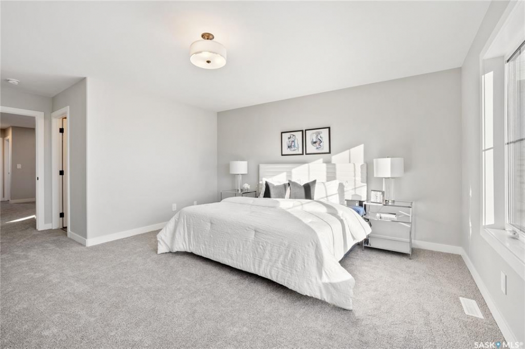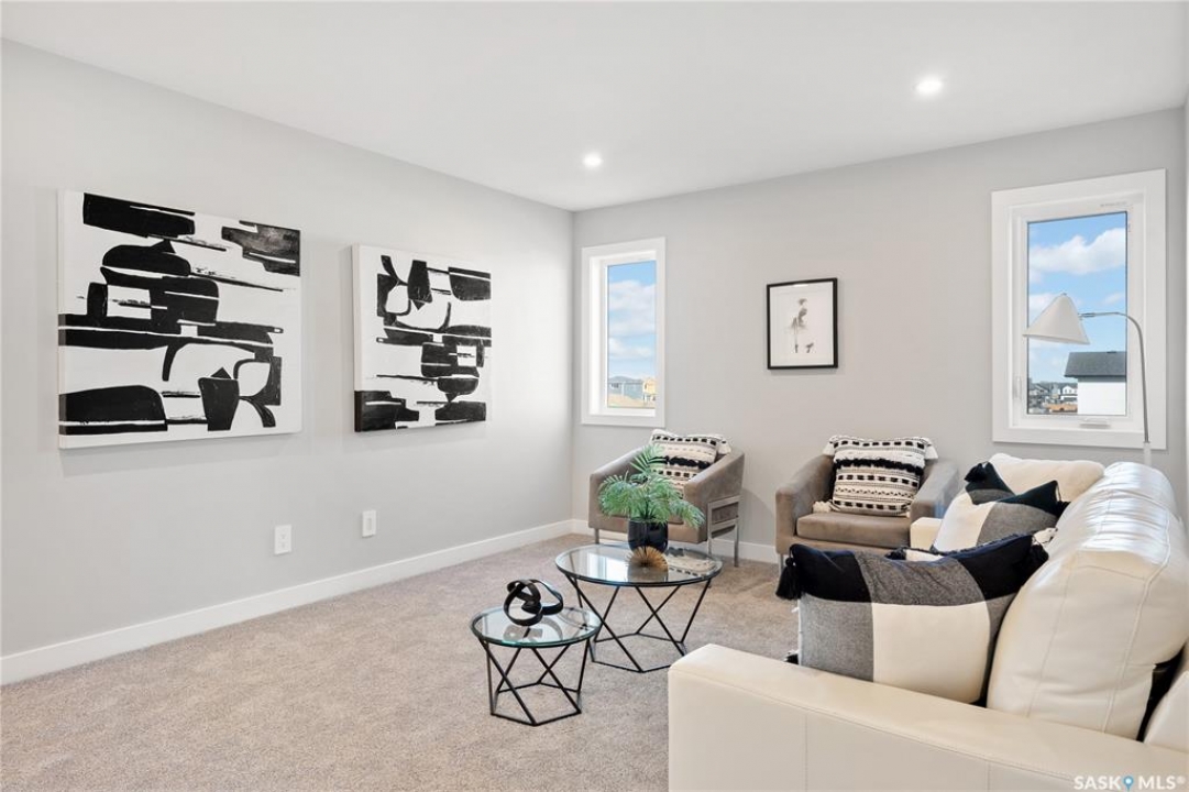 Welcome to the Zennenberg, a thoughtfully designed 2-storey home located in the growing community of Pilot Butte. Built by Ehrenburg Homes, this property offers 2,020 sq ft of functional living space with modern finishes and a family-friendly layout. The main floor features an open-concept design with a bright living room, spacious dining area, and a well-appointed kitchen complete with island and ample cabinetry — ideal for both everyday living and entertaining. A convenient mudroom and 2-piece bathroom add to the home's practicality. Upstairs, you'll find a generous primary bedroom with a 5-piece ensuite, along with two additional bedrooms, a full 4-piece bathroom, a bonus room, and second-floor laundry for added convenience. The basement is undeveloped, offering excellent potential for future development. Situated on a 6,085 sq ft lot, this home features a deck, triple attached garage, and ample parking. Located just minutes from Regina, Pilot Butte offers a quiet, family-oriented lifestyle with easy access to city amenities. Don't miss your opportunity to own a brand-new home offering comfort, functionality, and value in a desirable community! (PST/GST are included within purchase price). Note: Interior photos are from a previous build. Same model but some colours may vary.