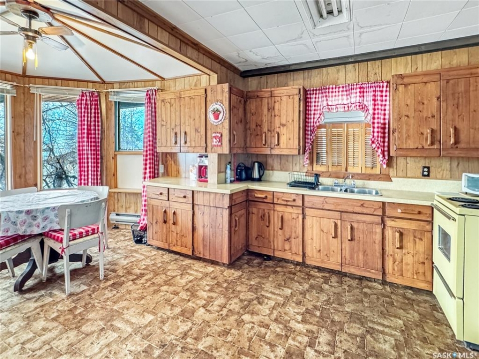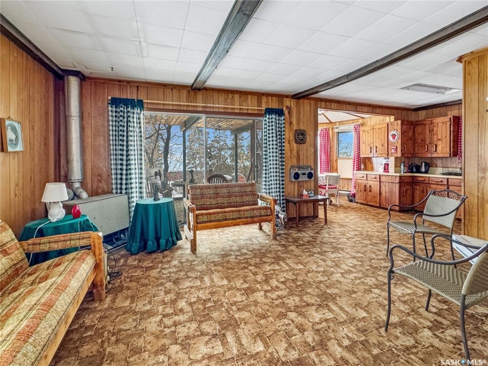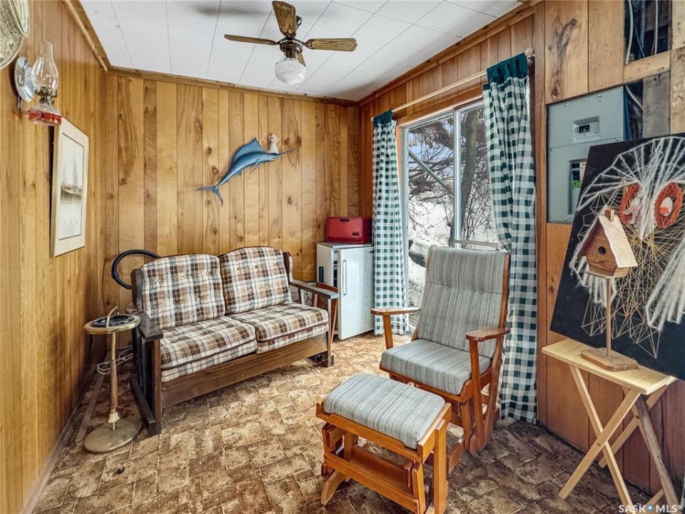 Enjoy everything Jackfish Lake has to offer with this inviting seasonal cabin, ideally located just a short walk from Hunts Cove beach. Spend your days on the sand and your evenings relaxing in your own private retreat. Set back among the trees, this property offers a peaceful, cozy cabin feel with plenty of parking and low-maintenance landscaping. Being sold fully furnished, it's completely turn-key so you can start enjoying lake life right away. Inside, the open-concept layout creates a warm and functional space for entertaining or unwinding after a day outdoors. The kitchen flows nicely into the dining and living areas, where a wood-burning fireplace adds that classic cabin charm. The large deck offers beautiful beach views and mesmerizing sunsets. The main cabin features two bedrooms and a spacious bathroom with a shower. Outside, gather around the fire pit and enjoy quiet evenings under the stars with family and friends. If you've been looking for an easy, affordable way to get into the lake lifestyle, just steps from a beautiful beach, this is a great opportunity to make it happen.