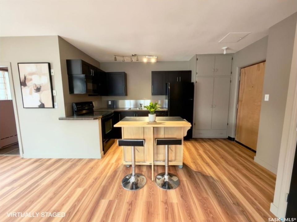 Bright and inviting bachelor unit in City Park, just steps from downtown and all its amenities! This corner unit features large windows that fill the space with natural light, along with newer flooring and fresh paint throughout. The kitchen offers sleek cabinetry, a dishwasher, and a convenient moveable island. Located just blocks from the river, this is a great opportunity for a first-time buyer or investor. Shared laundry is located just down the hall. Contact your agent today!