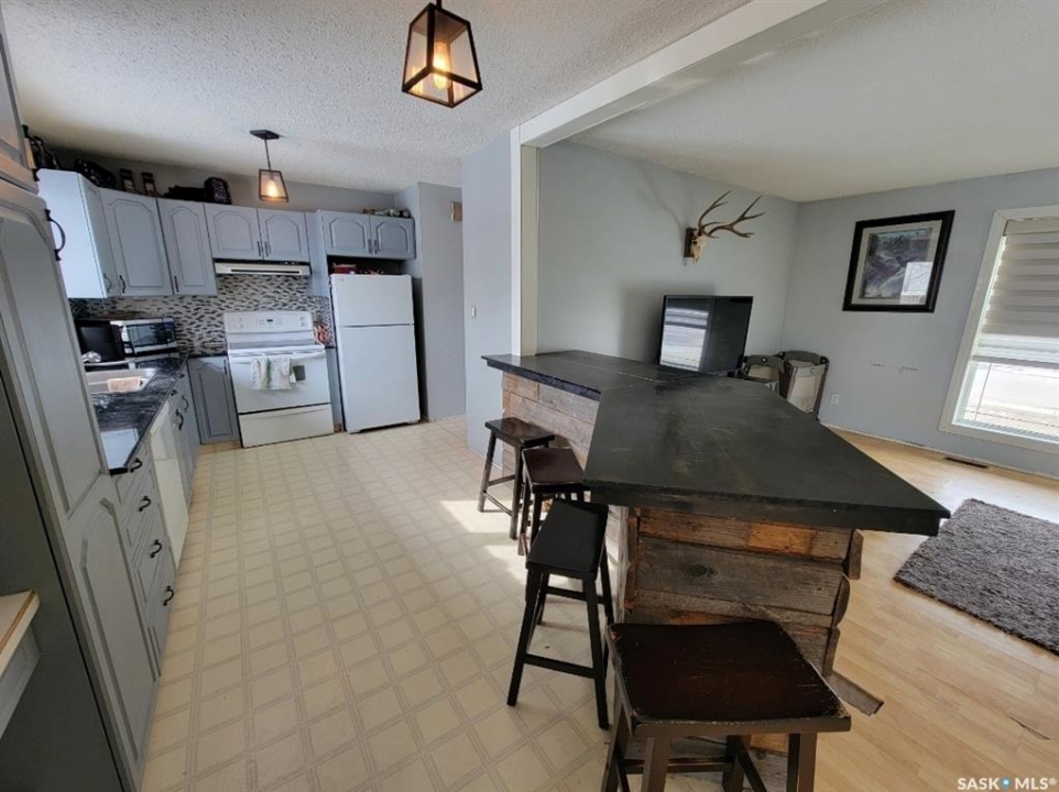 Affordable Opportunity in a Prime Location, Park Views and Minutes to the Lake! Welcome to this 4 bed, 3 bath home offering 1,204 sq ft of functional living space in one of Macklin's most desirable neighborhoods, an excellent opportunity for first-time buyers, growing families, or investors looking to build equity. Situated directly across from a park and just a short 2 minute drive to the lake, this 1991 built home offers a location that continues to hold strong long term value. The main floor features a bright and practical layout with a kitchen complete with central island, dining area, and patio doors leading to a spacious deck—ideal for everyday living and entertaining. The main level includes two bedrooms, including a generous primary bedroom with a 2-piece ensuite. Originally designed as three bedrooms on the main floor, there is potential to convert it back to suit your needs. The fully finished basement adds additional living space with two bedrooms, a full bathroom, a large family room, and ample storage—providing flexibility for families or rental potential. Additional features include central air conditioning, natural gas forced air heating, a fully insulated attached garage, fully fenced yard, underground sprinklers, gemstone seasonal lighting, and great curb appeal. With solid bones, a great layout, and an unbeatable location, this home offers an excellent chance to enter the market at an affordable price point while adding your own updates over time. Don't miss this opportunity to invest in a home with strong potential in a sought-after area.