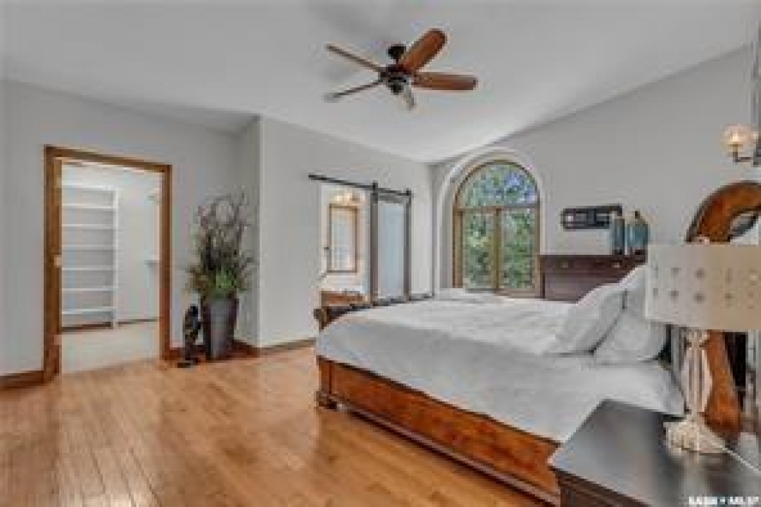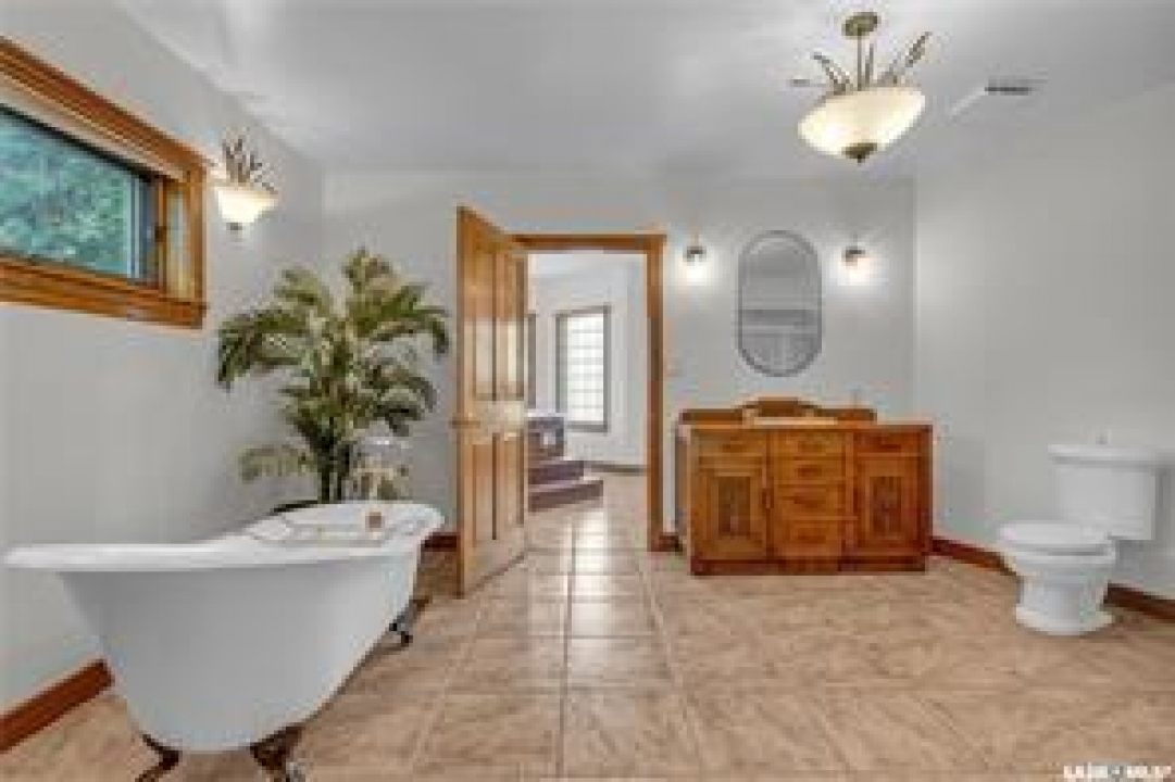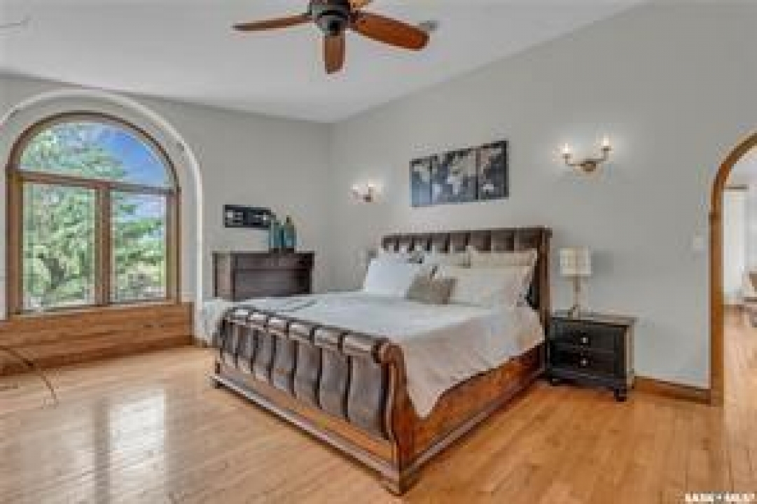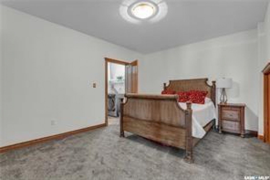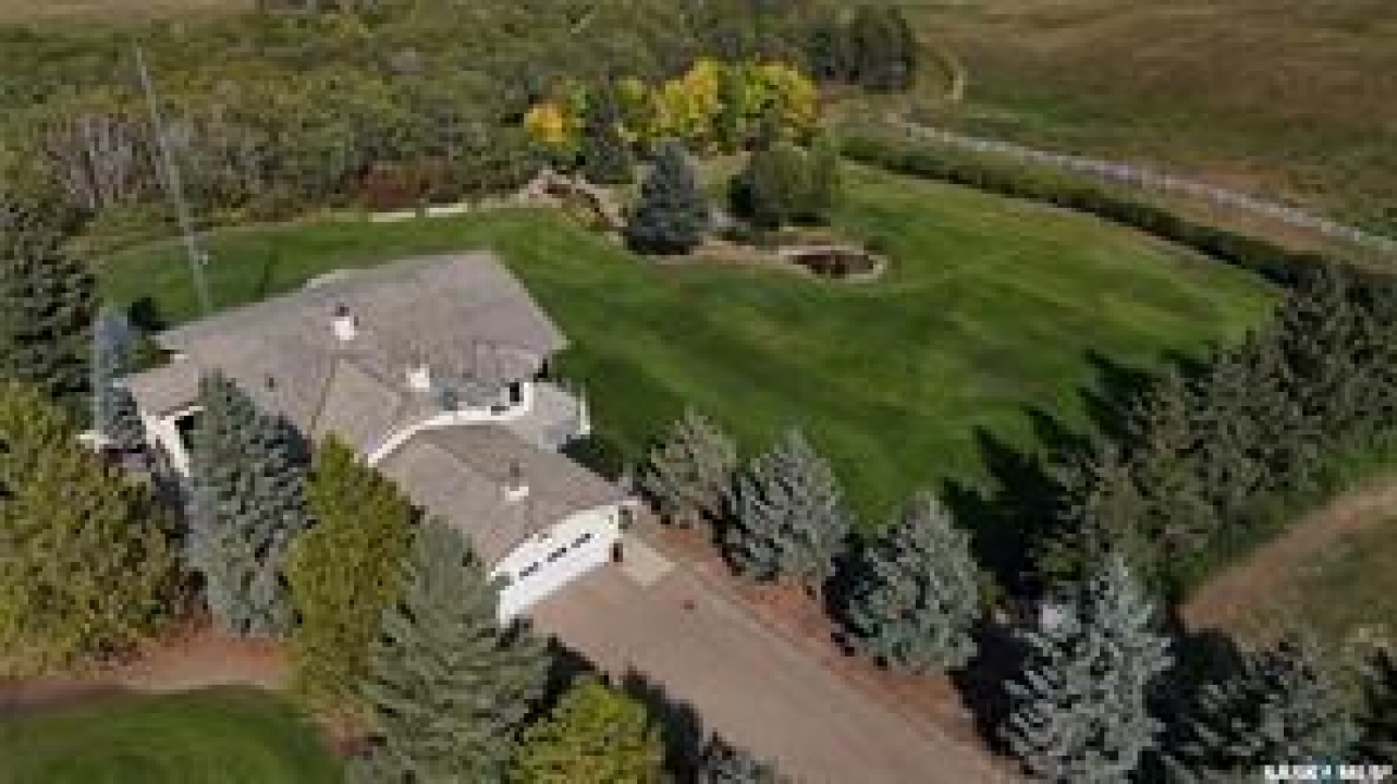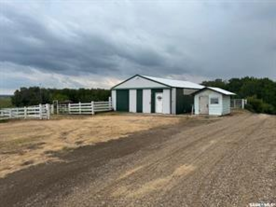 Welcome to your own private equestrian retreat! This breathtaking 79-acre property, a stone's throw from the Battlefords, offers the perfect blend of luxury, comfort, & functionality. Whether you're a horse enthusiast or simply seeking tranquility in nature, this pristine acreage promises the ultimate lifestyle. When you arrive, you're greeted by a grand courtyard entrance, setting a tone of elegance. The open floor plan boasts abundant natural light, between living areas, making this home perfect for entertaining. A stunning three-sided fireplace is the centerpiece of the living space, providing warmth & ambiance on chilly evenings. This spacious four-bedroom, three-and-a-half-bathroom home is designed with both beauty and convenience in mind. The wet bar is perfect for hosting friends & family, while the large entertainment areas, inside & out, offer plenty of room for gatherings. The lower level has a feature wall including a 75-inch Samsung frame TV with non-reflective screen that displays wall art when not in use, surround sound speakers are located on the wall & outside on the deck. The walkout basement extends your living space into the serene outdoors, where a beautiful pond and gazebo await, creating a backdrop for relaxation & peaceful reflection. The property is also a dream for horse lovers, with an impressive barn, stables, riding arena—everything you need to keep your horses in top shape & enjoy the equestrian lifestyle to the fullest. The tranquil surroundings, including the lush fields & serene pond area, create the ideal setting for both you & your animals. This is more than just an acreage—it's a lifestyle. Whether you're riding, relaxing by the pond, or entertaining guests in your beautiful home, you'll experience the ultimate in country living & all the amenities you need. A 48x 40 heated shop also includes living quarters for a hired hand or a guest space for family & friends. The entry to the property has a large, controlled iron gate.