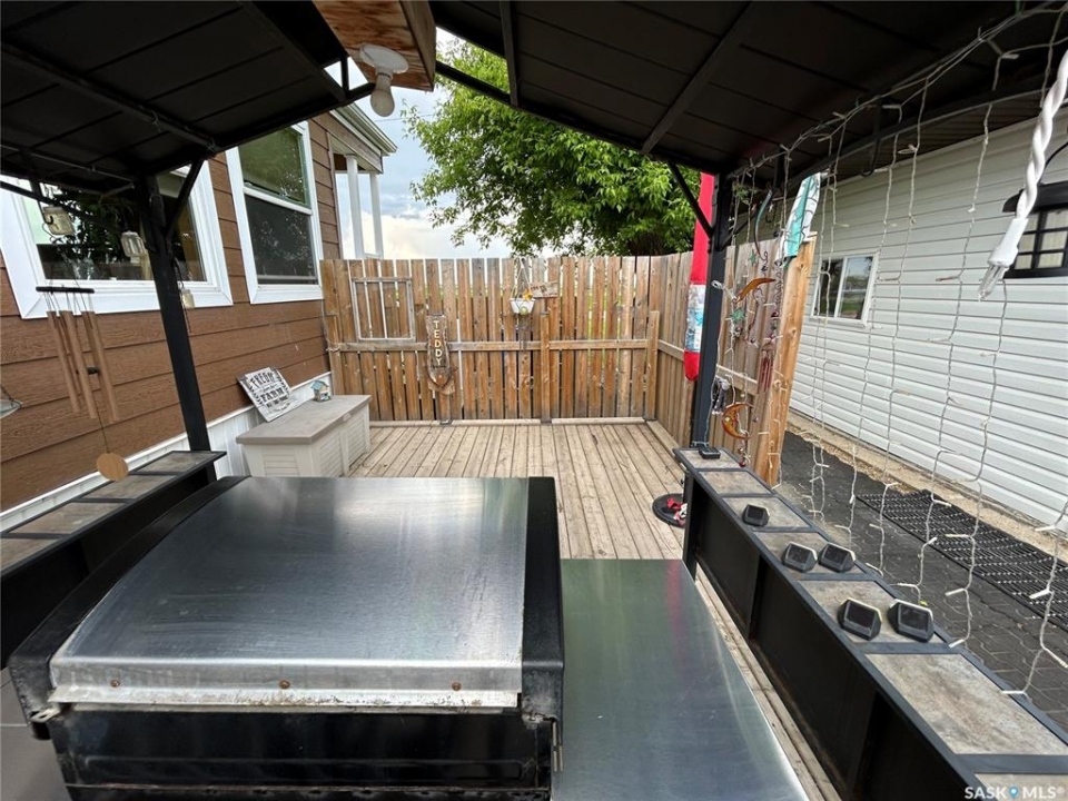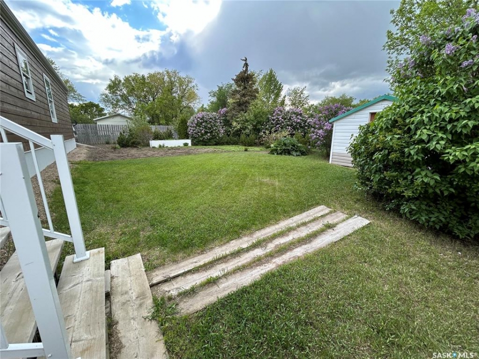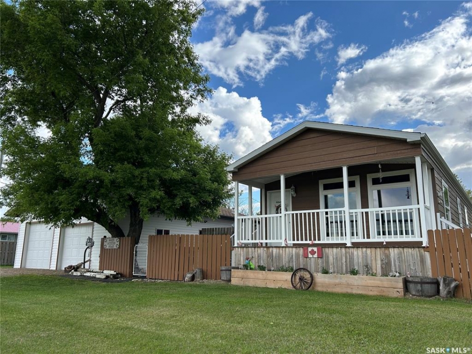Welcome to small town living just a short drive from Weyburn! This well maintained home in Halbrite offers space, versatility, and exceptional outdoor living on a generous 100' x 120' fully fenced property. The yard is thoughtfully set up for both relaxation and function, featuring a patio area, deck, raised garden beds, mature trees and shrubs, and ample parking. There's even a 50 amp RV plug at the rear of the property—perfect for visitors or your own travel setup. Two storage sheds provide extra space. A standout feature of this property is the oversized double garage, fully insulated and heated, offering plenty of room for parking, projects, and storage. Above and beyond, the garage includes a self-contained suite complete with a full bathroom, laundry, kitchen area, and a Murphy bed—ideal for guests, extended family, or potential rental income. Inside the home, pride of ownership is evident throughout. You'll appreciate the bright, welcoming living spaces, a functional layout, and a kitchen with plenty of cabinet and counter space. Storage is abundant, making this home as practical as it is inviting. Whether you're looking for a move-in-ready home, extra income potential, or space to enjoy both indoors and out, this property checks all the boxes, all within a short, convenient drive to Weyburn. Contact for your showing today!