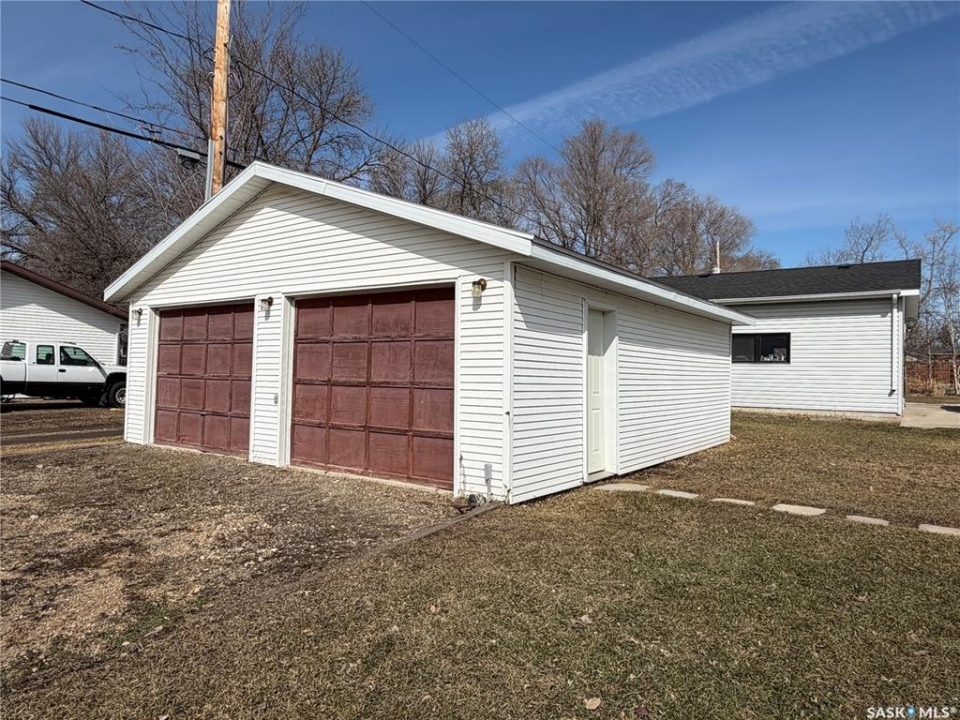 Charming 2-storey character home that has been beautifully refreshed with new paint, flooring, and an updated bathroom—blending classic charm with modern touches! Step inside to a spacious foyer/mudroom, perfect for busy family living. The home features a massive kitchen with tons of cupboard space and a patio door leading to the side yard—ideal for everyday convenience and entertaining. The dining area flows seamlessly into the bright living room, creating a warm and inviting main floor layout. A 4-piece bathroom combined with laundry completes the main level. Upstairs, you'll find three comfortable bedrooms, offering plenty of space for a growing family. The basement provides additional storage space. Situated on a corner lot, this property also includes a double detached garage and is conveniently located within walking distance to a local school and daycare. A wonderful opportunity to own a move-in ready family home with character and updates throughout!