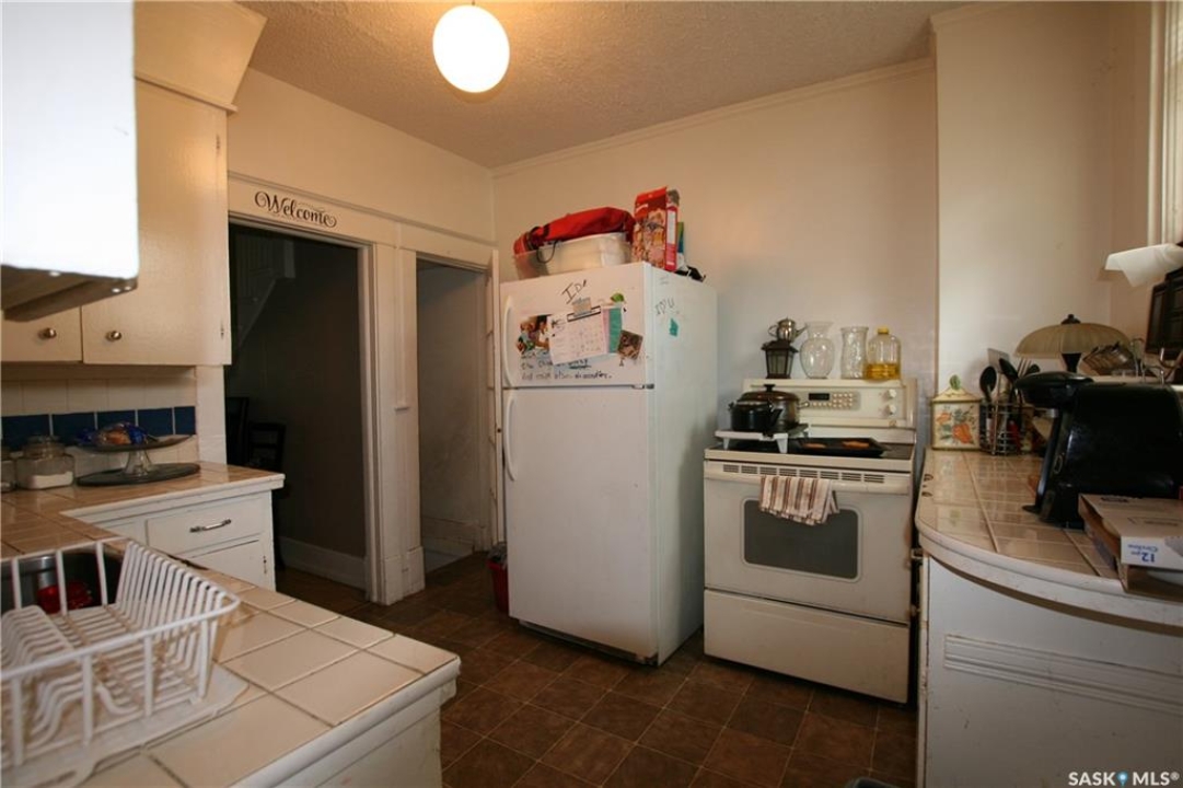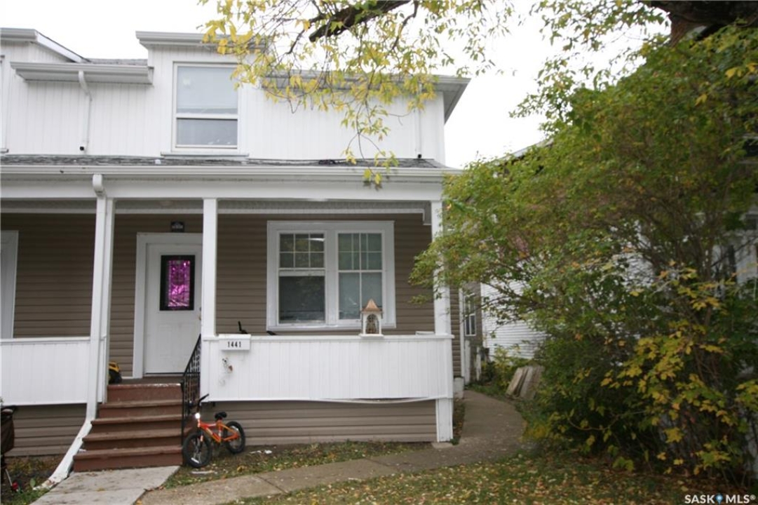 Lovely three bedroom character home that would make a wonderful first home. Covered porch across front of house. Upon entry you notice the original wooden staircase along with original woodwork throughout. Spacious living room and attached dining room both with tall ceilings. Easy clean laminate flooring throughout. Large windows fill each room with sunlight. Kitchen offers plenty of cabinetry with good storage. Fridge, stove and built-in dishwasher are all included. Upper level has three good sized bedrooms and a full four-piece bathroom. Lower level is clean and dry. High efficient furnace and newer hot water heater. Washer and dryer included. Enjoy a fully fenced in backyard with deck, grass area and a garden area. Room to park three vehicles. Newer water and sewer lines, updated electrical, some new windows, upgraded insulation and siding. Shows beautifully and priced to sell. This home is move-in-ready and can be purchased with 1437 Argyle. Live on one side and rent the other to subsidize your mortgage payment. Awesome revenue opportunity.