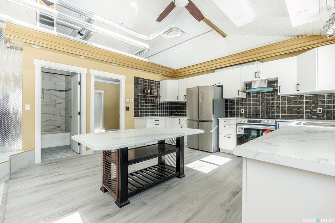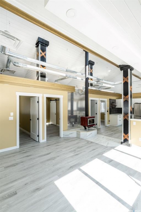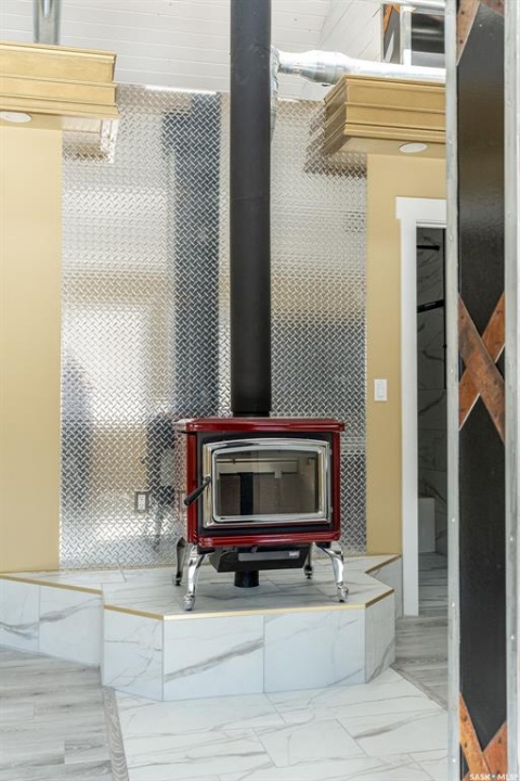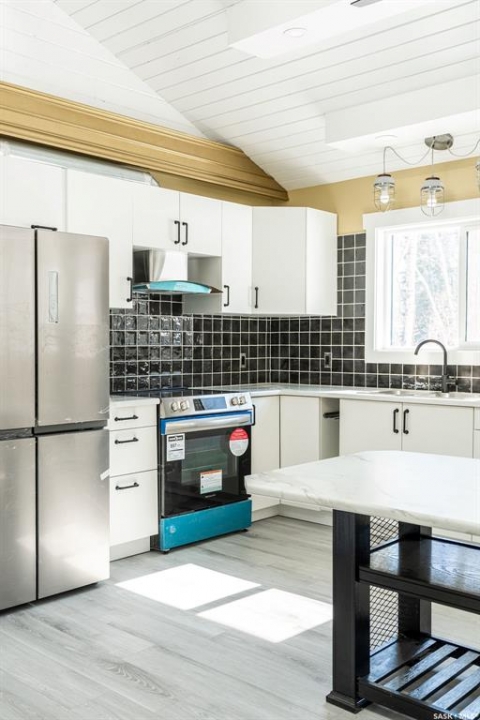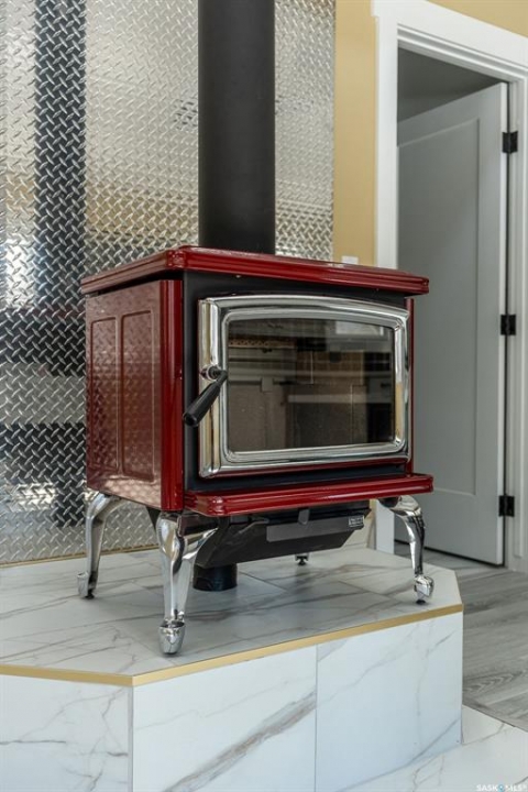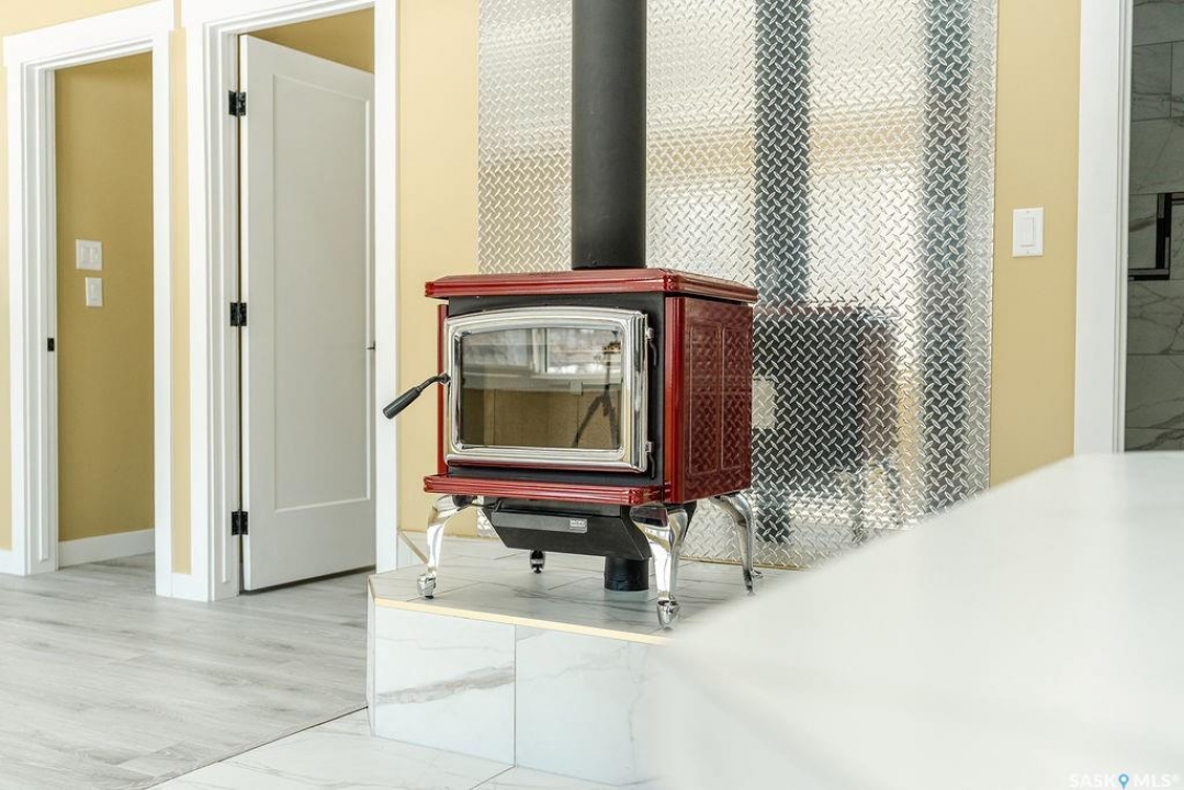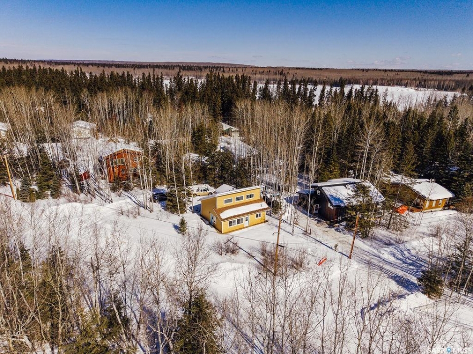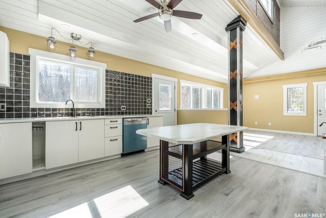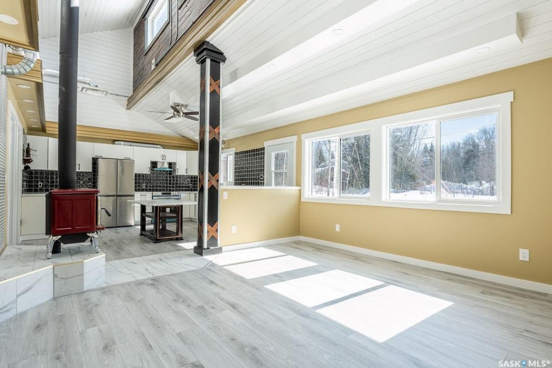 Welcome to 1 May Bay in Pickerel Point at Delaronde Lake — a brand new, never-lived-in cabin that perfectly blends modern industrial style with the peaceful beauty of lake life. This stunning 998 sq. ft. cabin features 3 bedrooms and 1 full bathroom, designed for comfort, style, and easy living. Step inside and you'll immediately notice the impressive 18-ft vaulted ceilings and the abundance of windows that fill the space with natural light. The upper windows are equipped with electric blinds for convenience and comfort. The kitchen is beautifully finished with an eat-up island, brand new stainless steel appliances, and soft-close cabinetry throughout, while extra pot lights have been added across the home to create a bright, welcoming space day or night. Each bedroom includes its own closet with a custom-built barn door complete with coat hooks, adding both character and functionality. The living room features a striking red porcelain wood stove, creating a cozy focal point for cooler evenings. Heated floors run throughout the entire cabin, and vinyl plank flooring makes for durable, low-maintenance living. Custom gold trim accents around the rooms add a unique and stylish finishing touch. The cabin also includes in-home laundry for everyday convenience. Outside, the property offers plenty of space with room to build a future garage, a long gravel driveway perfect for parking RVs and boats, and a gravel patio area ready for outdoor entertaining. The yard is beautifully natural with bush, Saskatoon berry bushes, and newly planted oak trees. Located just a short walk to the water, marina, and boat dock, this property is part of a fantastic lake community and is the perfect place for boating, fishing, relaxing, and making memories year-round.