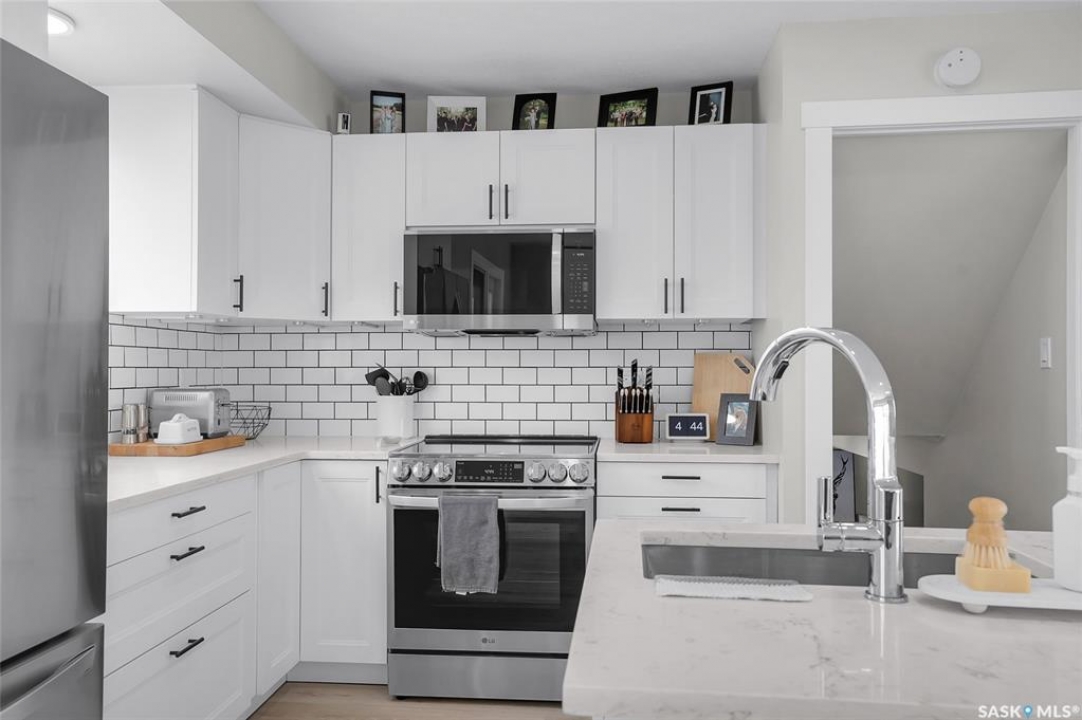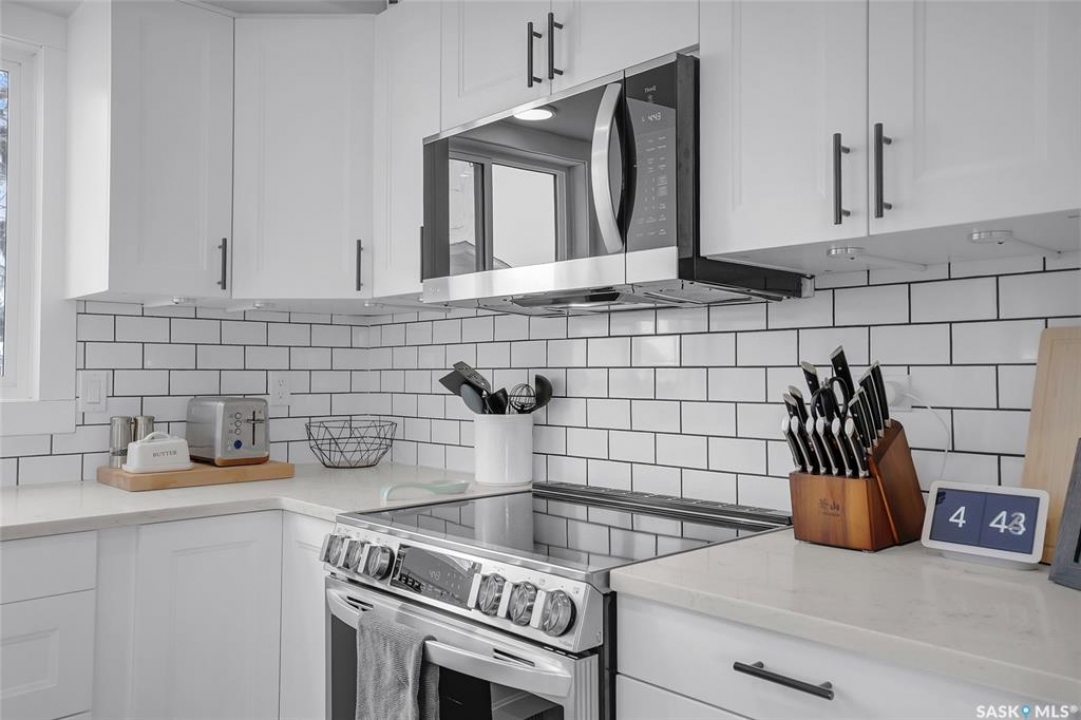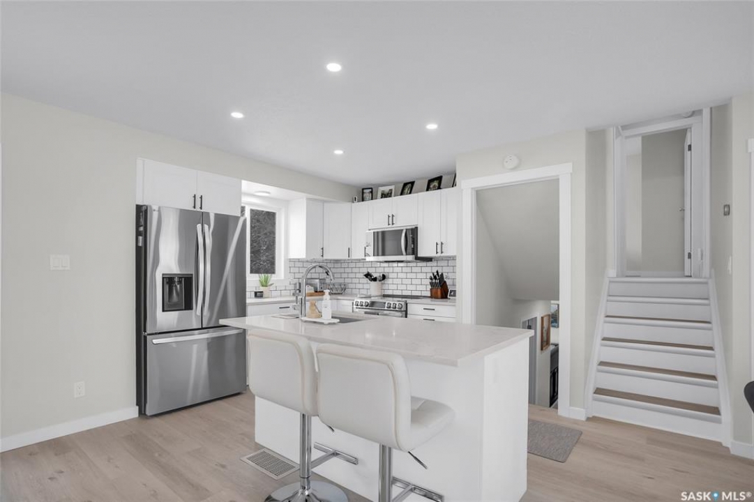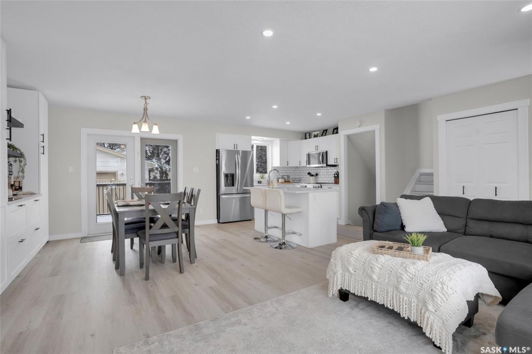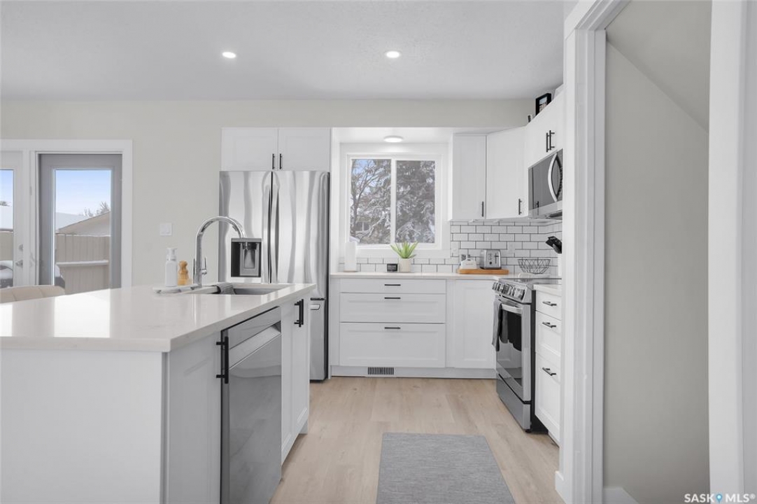 Welcome to this beautiful 900 sq ft split-level home in the sought-after Silverwood Heights neighborhood. Spread over 4 levels, this well-maintained property has seen extensive renovations. The bright, modern open-concept kitchen is perfect for entertaining, featuring a new ceiling, pot lights, fixtures, stainless steel appliances (2023), quartz countertops, tile backsplash, a gorgeous built-in banquette in the dining area, plenty of cupboard space, and a large island with an undermount stainless steel sink (2023 renos). The inviting living room boasts large windows and brand-new high-end vinyl plank flooring (2026). Upstairs offers two comfortably sized bedrooms and a spacious 4pc bathroom with storage, left unfinished for your personal touch. Windows were updated around 2017, shingles replaced in 2019, and central AC, Nest thermostat, furnace, and water heater installed around 2020. The third lower level has a cozy family room with a wet bar and brand new luxury carpet (March 2026), brightened by ground-level windows, plus a charming 3pc guest bathroom. The basement level houses the laundry with newer LG washer (2024) and dryer (2023), built-in storage, and two additional bedrooms with non-conforming windows. Other features include a new toilet, painted vanities, new basement trim, and central vac with attachments, as well as central AC. A patio door off the dining area leads to a large deck overlooking the huge, private, tree-lined backyard, perfect for kids, pets, and a big garden behind the garage. The fully insulated two-car garage can easily be heated. Just minutes from the bus, schools, parks, and the river—this is one you won't want to miss.