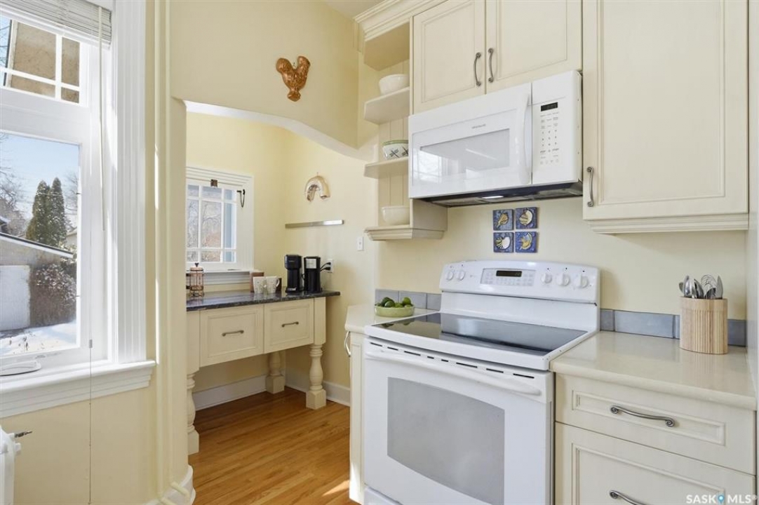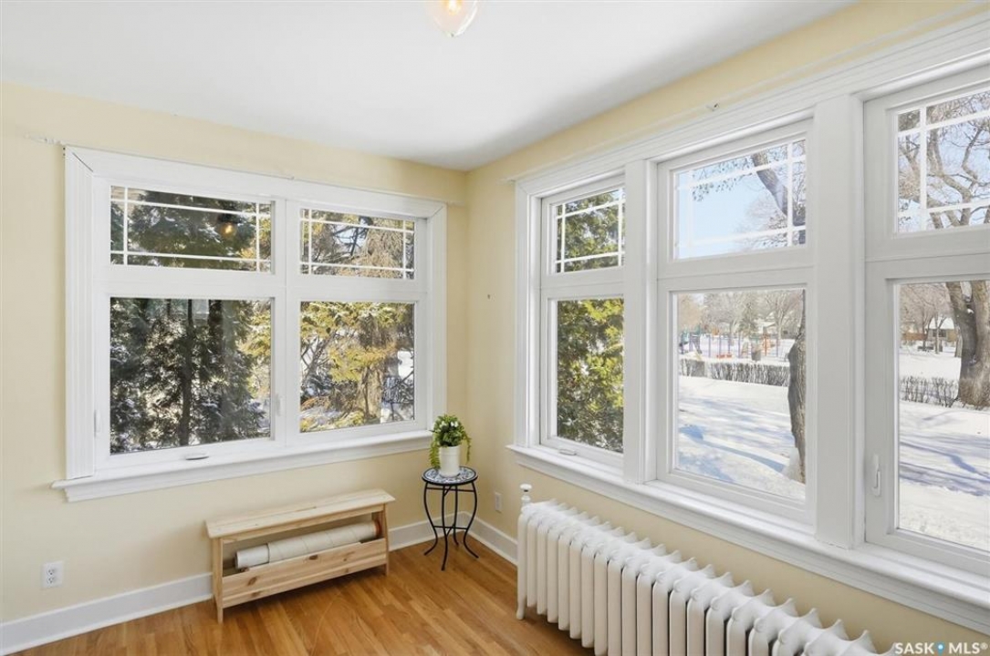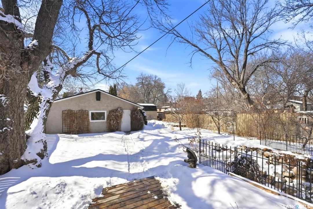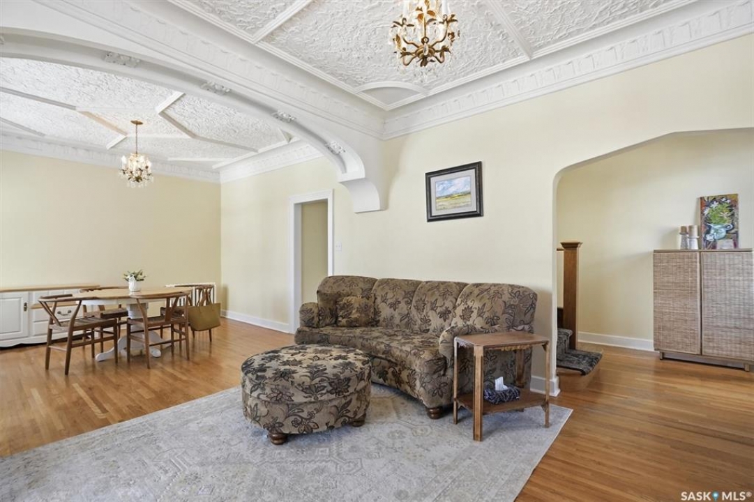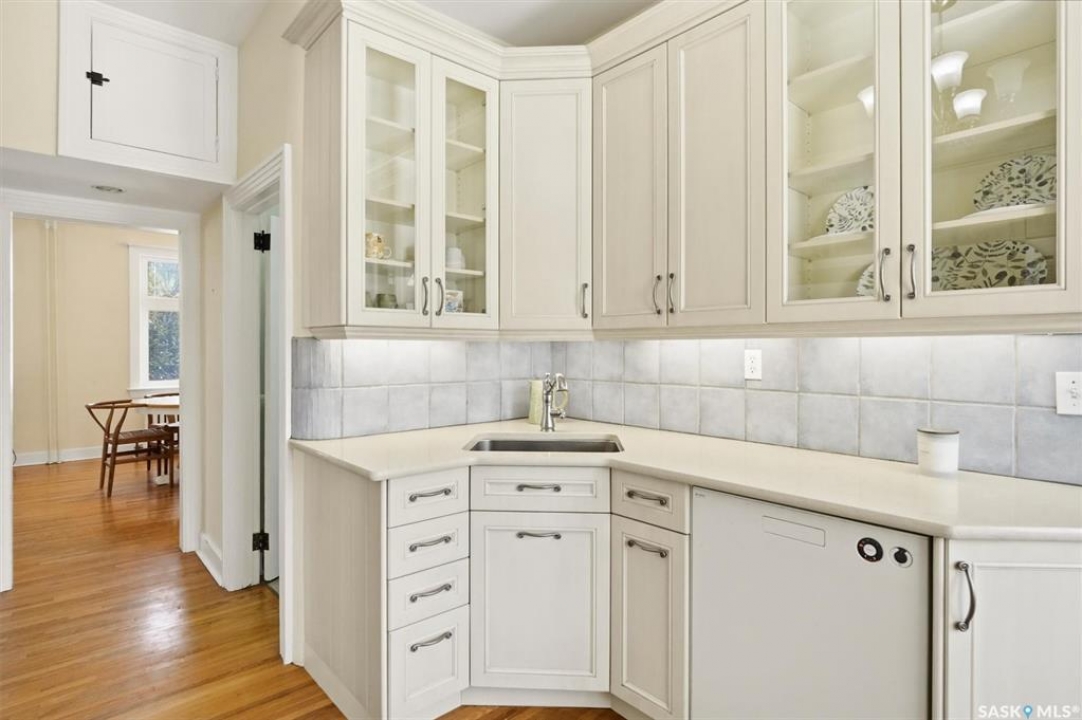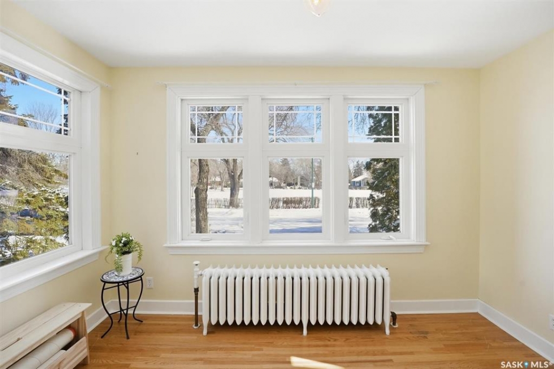 A truly rare home where timeless character, crown mouldings, archways, and a bright walkout basement come together in a way you don't often see. Set on a 50 x 134 ft. lot across from Wilson Park and just steps to the river, this property immediately stands out for its craftsmanship and attention to detail. The spacious front foyer offers flexibility as a sitting area or office and leads into a warm, inviting living room with a wood-burning fireplace. The living and dining spaces are truly special, featuring detailed ceilings, crown mouldings, and stunning archways that create a seamless, elegant flow throughout. The kitchen is both functional and thoughtfully updated with high-quality Redl cabinetry, quartz countertops, and a dedicated coffee bar or prep space with granite in the nook. The main floor includes a versatile bedroom or office and a full four-piece bathroom with stained glass windows and a claw foot tub. Upstairs, the primary bedroom features a private balcony overlooking the park, along with a second bedroom and a three-piece bathroom. The walkout basement is a standout bright, open, and beautifully finished with in-floor heating. The spacious family room is filled with natural light and opens directly to the backyard through garden doors. This level also offers an additional bedroom, a three-piece bathroom with walk-in shower, and a generous laundry area. Wet bar rough-in provides excellent potential for entertaining or a future suite. The backyard feels private and established with mature greenery, patio space, garden boxes, and a shed. Additional features include a heated double detached garage, on-demand hot water, and extensive upgrades to mechanical, plumbing, electrical, along with metal roofing and fiberglass fascia on both the house and garage. Located minutes to City Park Elementary, City Hospital, and quick access to main routes, this is a rare opportunity to own a character home where pride of ownership shines throughout.