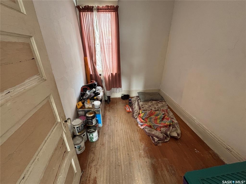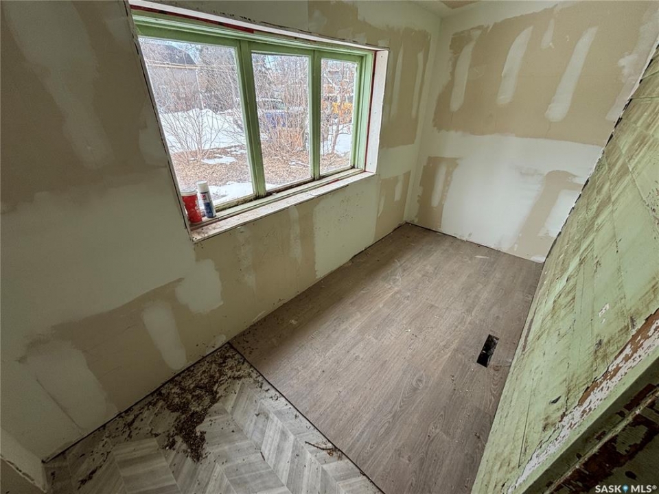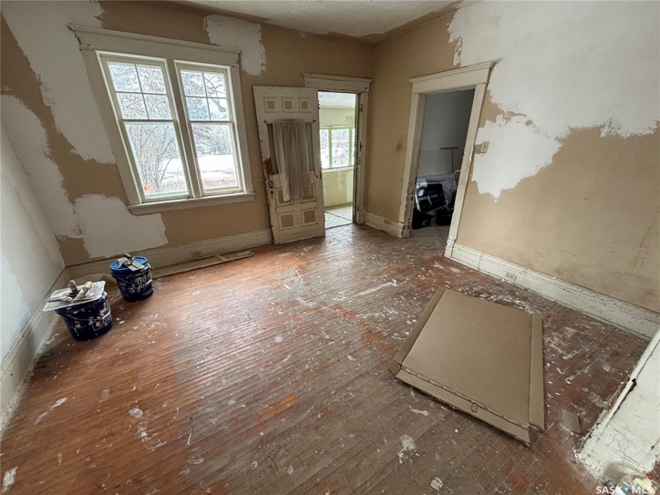 Carpenter's special in Delisle. This character bungalow has some work started but needs a complete renovation to be liveable. 2 bedrooms, 1 bath, main floor laundry. Some hardwood floors visible. Corner lot