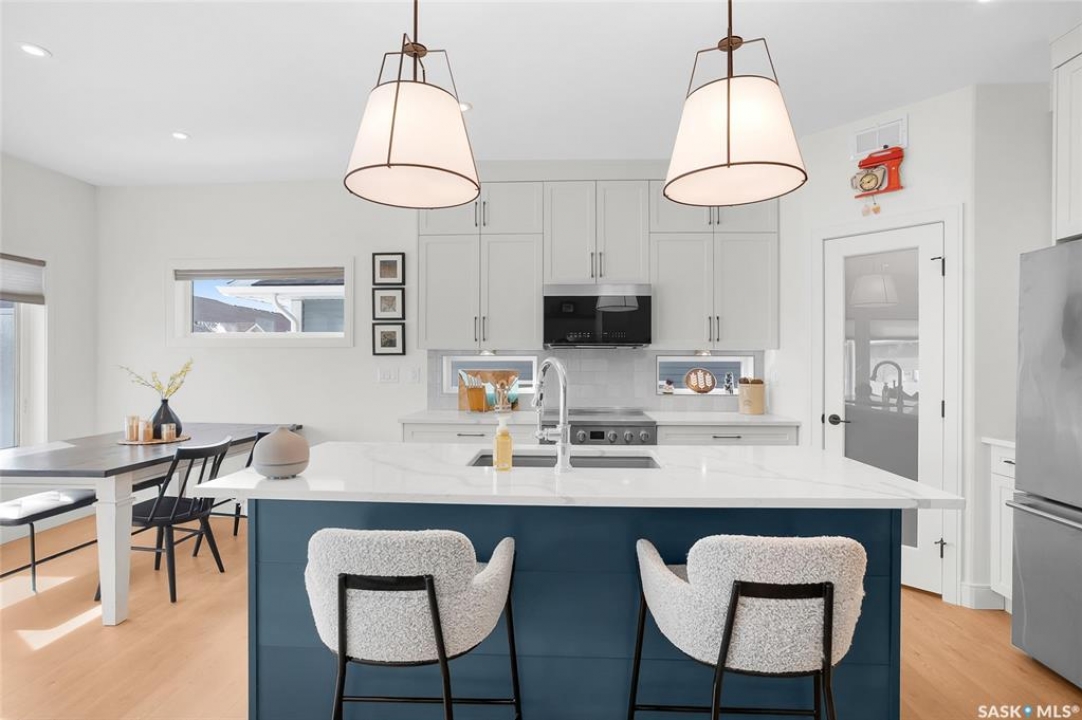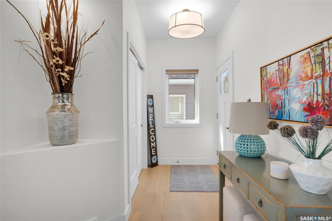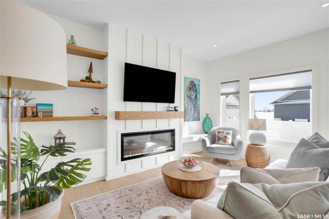 Welcome to the vibrant community of Warman, a city that offers all essential amenities and more. This immaculate end-unit townhome, bungalow style, built by a reputable Northridge builder, is ideally situated in a highly sought-after neighborhood adjacent to the golf course, offering lovely views of surrounding green space. Well maintained by its original owner, the home features thoughtful upgrades throughout, including enhanced lighting, custom living room shelving, and premium Electrolux appliances—a fridge, stove, washer, dryer, built-in microwave/hood fan—as well as a high-end Miele built-in dishwasher. The open-concept floor plan creates an inviting and functional living space. The modern kitchen is bright and stylish, complete with a walk-in pantry, island with breakfast bar, and quartz countertops. The comfortable living room offers a beautiful electric fireplace as its focal point. The primary bedroom includes a private three-piece ensuite. Step outside through the garden door to enjoy the south-facing deck, equipped with a custom motorized awning for shade and comfort when desired. The full basement features four large windows, is fully insulated, and is open for your future development. Additional highlights include custom blinds, central air conditioning and a fully insulated, drywalled double attached garage with direct entry. Located just steps from Corney Klassen Park, you'll have access to excellent walking paths and a wonderful sense of small-community serenity—all while enjoying the convenience of big-city services. With quick access to Saskatoon via a well-maintained double-lane highway, this home offers outstanding livability. Experience condo-townhome living at its finest, offering effortless comfort and low-maintenance convenience. Truly move-in ready and a pleasure to view.