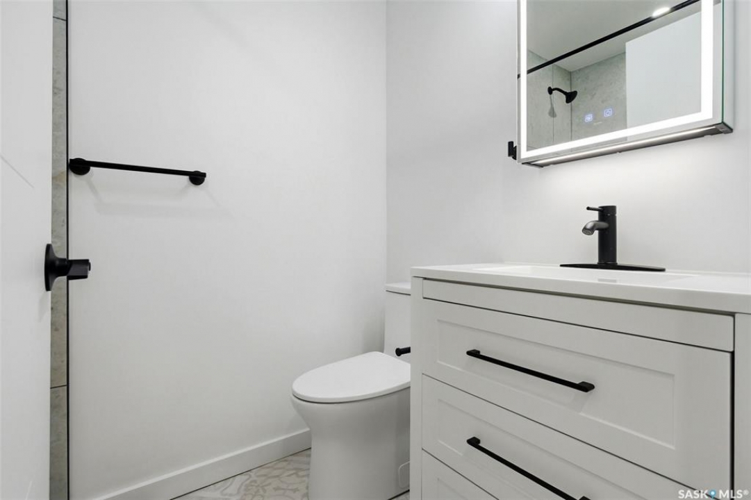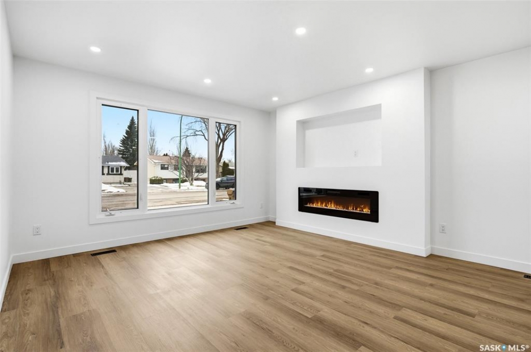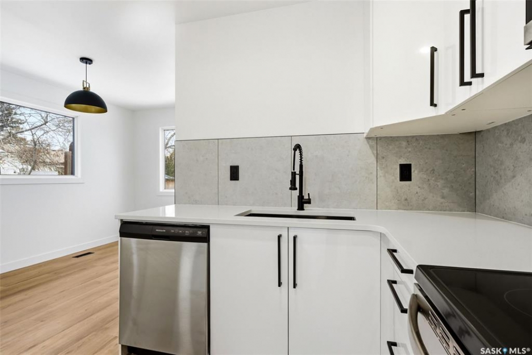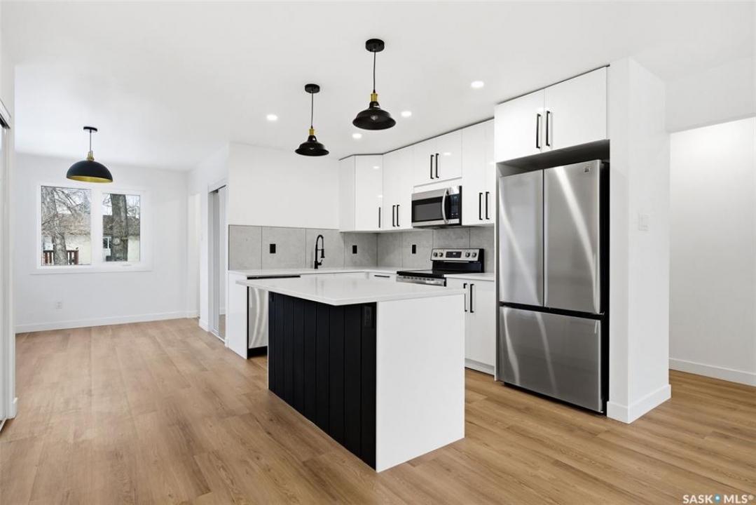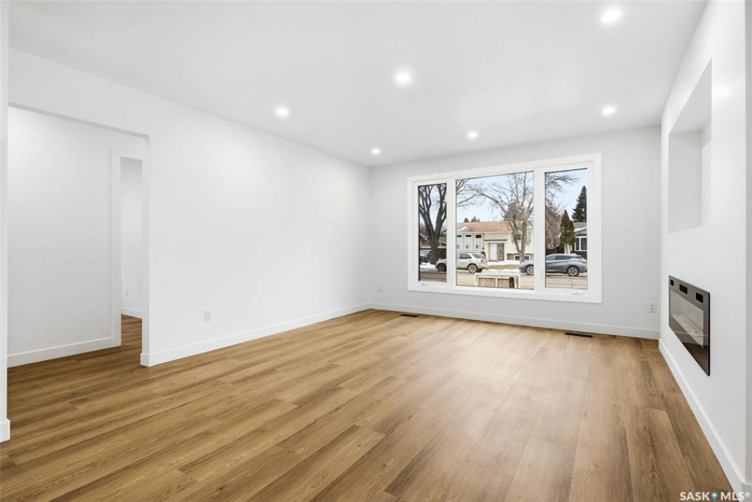 Welcome to 414 Rink Avenue, another beautifully reimagined home brought to life by Bouss Construction! Every detail in this transformation was intentionally crafted by professionals to create a warm and functional space you'll be proud to call home. Located on a quiet street just steps away from an elementary school and parks, this home is perfect for families. Step inside to a redesigned bright and welcoming open-concept layout. The living room draws you in with large south facing front windows, modern pot lighting and a custom feature wall complete with an electric fireplace and TV insert. The kitchen is a true showpiece, fully rebuilt with both form and function in mind. Enjoy quartz countertops, stainless steel appliances, sleek white cabinetry with black hardware and a centre island with an eat-up bar — perfect for casual meals or morning coffee. There's plenty of space for a dining table to host family or friends. Down the hall, you'll find three comfortable bedrooms and a fully redeveloped 4-piece bathroom featuring a beautifully finished tiled tub surround and modern fixtures. The primary bedroom includes your own 2-piece ensuite as well. The basement of this home offers the perfect canvas for your vision. The slab is in excellent condition and the foundation walls were inspected and structurally reinforced with an engineer's sign off. The foundation walls were framed, insulated and vapour barriered as per the City's permit requirement. All the work done on this house was completed by professionals and permitted with the City of Regina. All kitchen appliances are brand new. There is room for a potential two car garage and quotes can be provided by the seller and completed as a mortgage add on if desired. Don't miss out on this one!