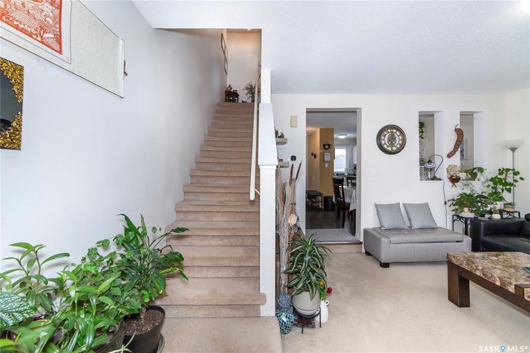 Welcome to #147-1128 McKercher Dr, Situated in the desirable Wildwood Village, this well-maintained 3-bedroom, 2-bath townhouse offers comfort, convenience, and exceptional value. Ideally located directly across from a playground and close to bus routes and all 8th Street amenities, this home is perfect for families, first-time buyers, or investors. The bright main floor features a spacious living room with a large south-facing window, filling the space with natural light, and opens seamlessly to the dining area. The functional kitchen includes a built-in dishwasher, backsplash, microwave hood fan, double sink, and a window overlooking the playground. A convenient half bath completes the main level. Upstairs offers laminate flooring throughout, a generous primary bedroom, two additional bedrooms, and a full bathroom. The partially finished basement provides extra living space along with a laundry/utility area. Enjoy a private, fully fenced south-facing backyard with patio—deeper than most units. Recent updates add peace of mind, and with condo fees covering common area maintenance, exterior building maintenance, garbage, lawn care, snow removal, water, and reserve fund contributions, this is a fantastic opportunity in a sought-after east-side location. Book your private showing today!