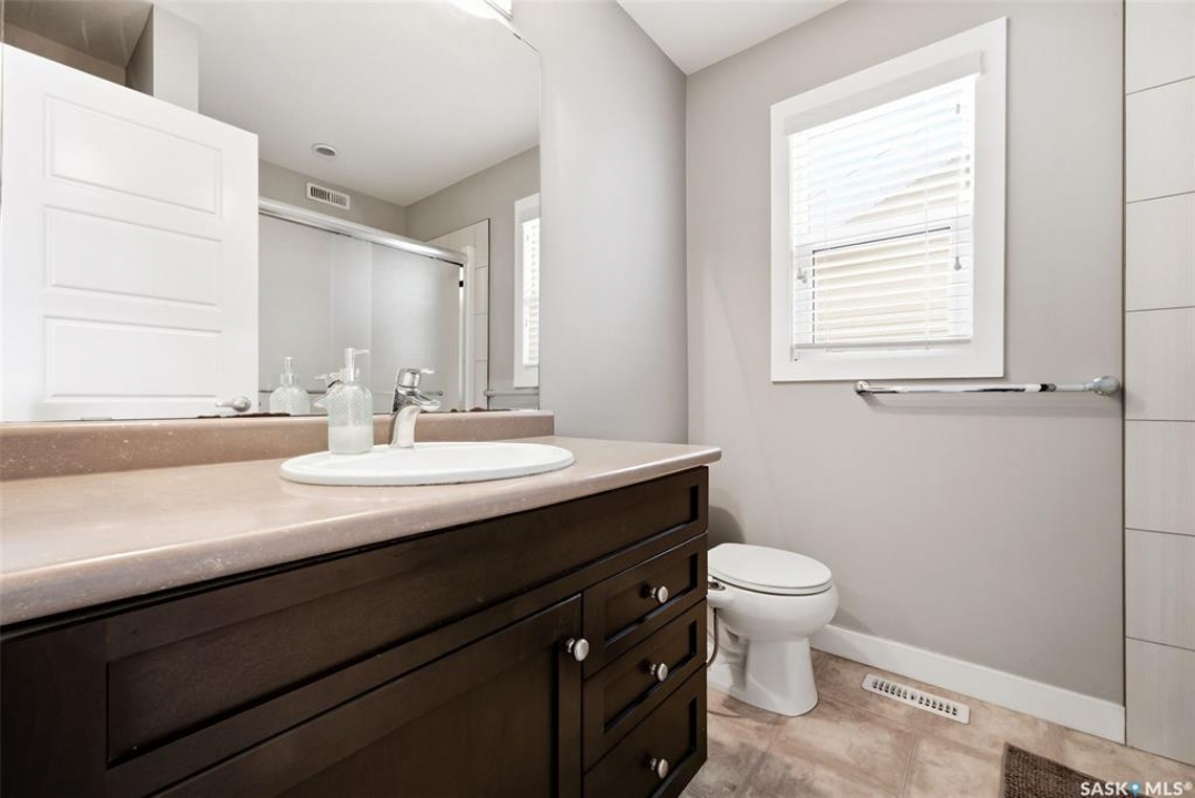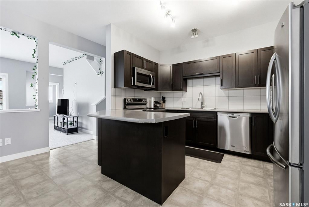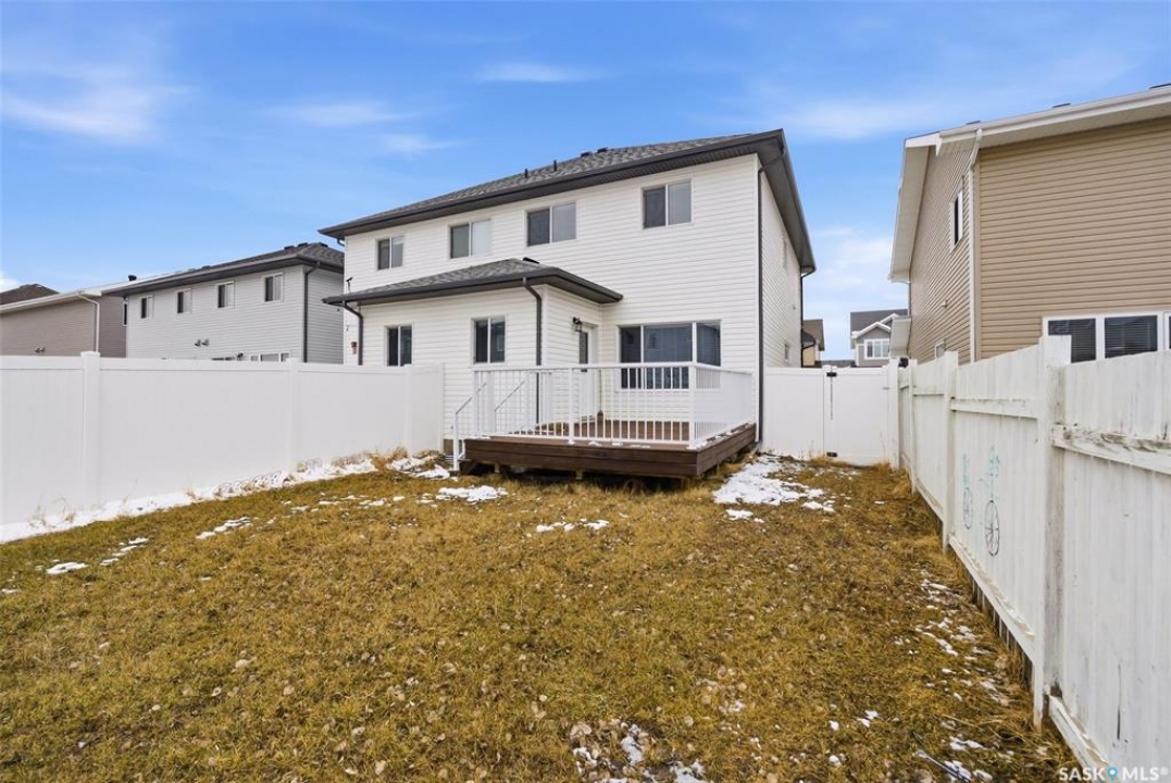 Welcome to this well-maintained 2-storey semi-detached home located in the desirable Greens on Gardiner neighbourhood! Built in 2014, this property offers 1,513 sq ft of thoughtfully designed living space and is perfect for families, first-time buyers, or investors. The main floor features a bright and open-concept layout with a spacious living room, functional dining area, and a modern kitchen complete with dark cabinetry, ample counter space, and stainless steel appliances. A convenient 2-piece bathroom completes the main level. Upstairs, you'll find three comfortable bedrooms, including a generous primary bedroom with a 3-piece ensuite, an additional 4-piece bathroom, and the added convenience of second-floor laundry. The basement is currently unfinished, providing an excellent opportunity to develop additional living space to suit your needs. Outside, enjoy a fully fenced yard with a large deck—perfect for entertaining or relaxing. The property also features an attached garage and concrete driveway with off-street parking. Situated in a family-friendly area close to parks, schools, and all east-end amenities, this home offers great value in a growing community.