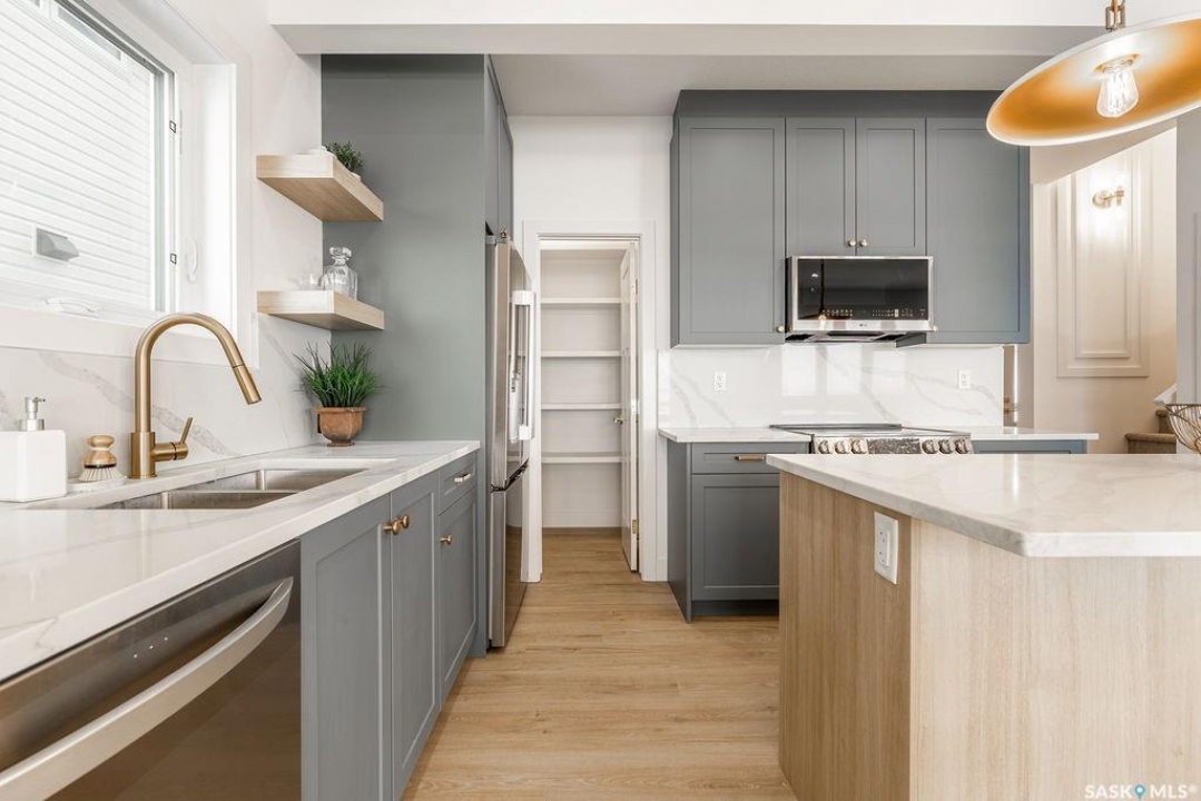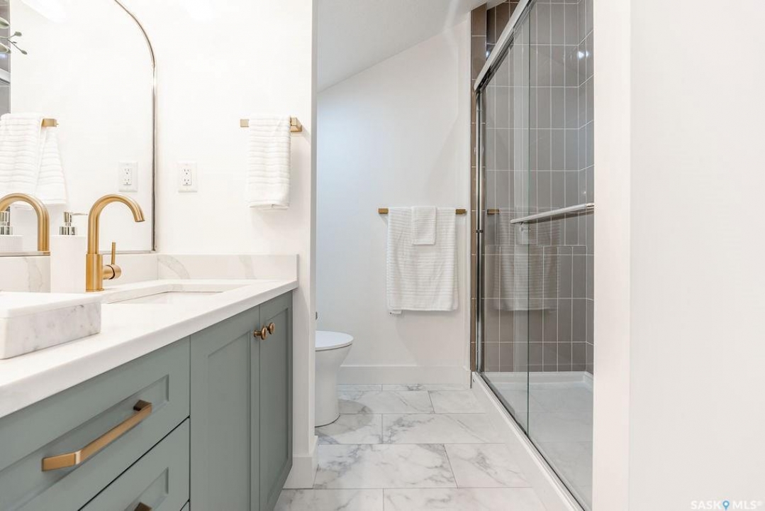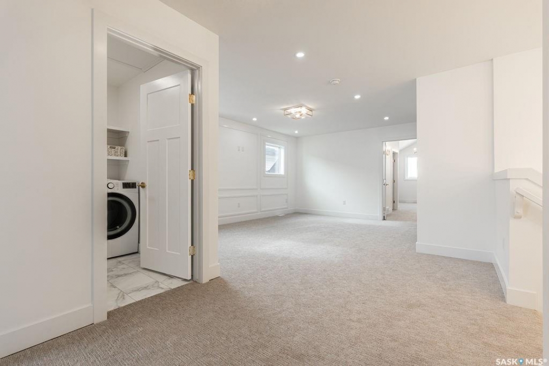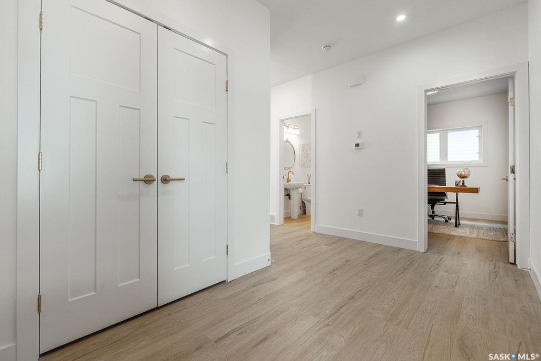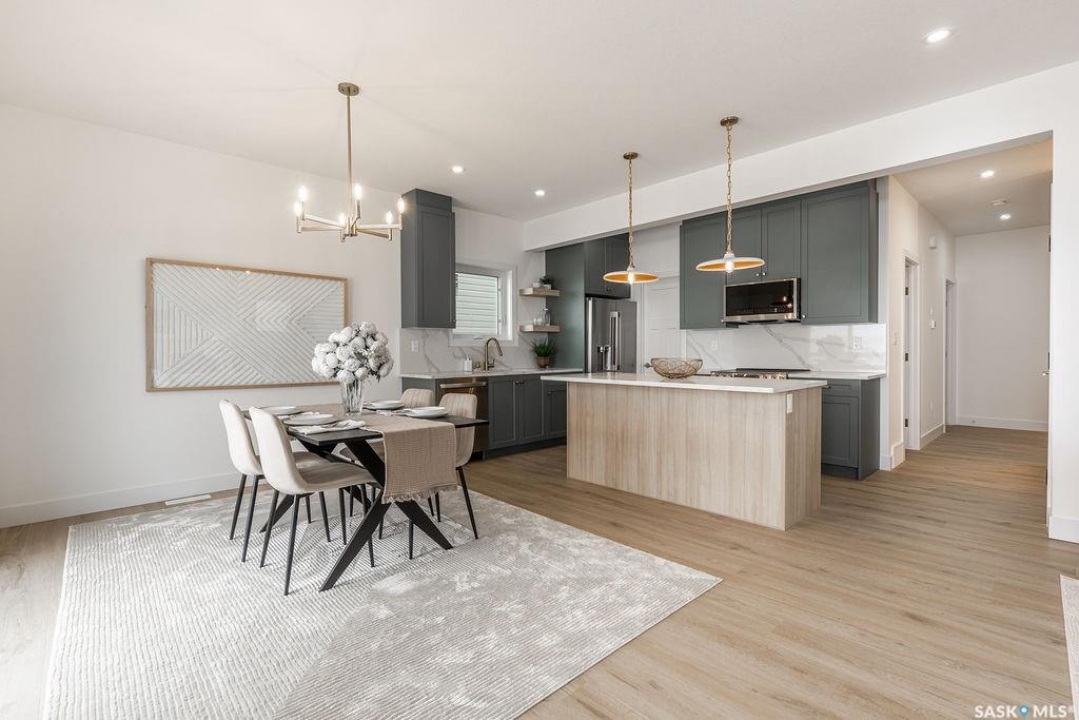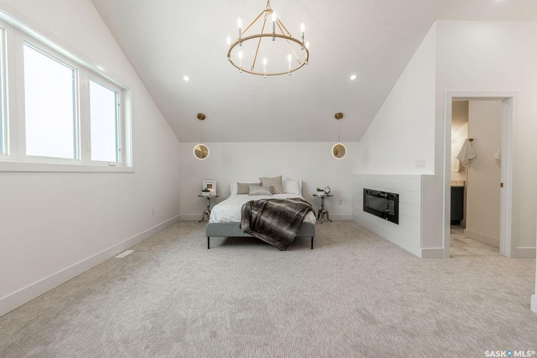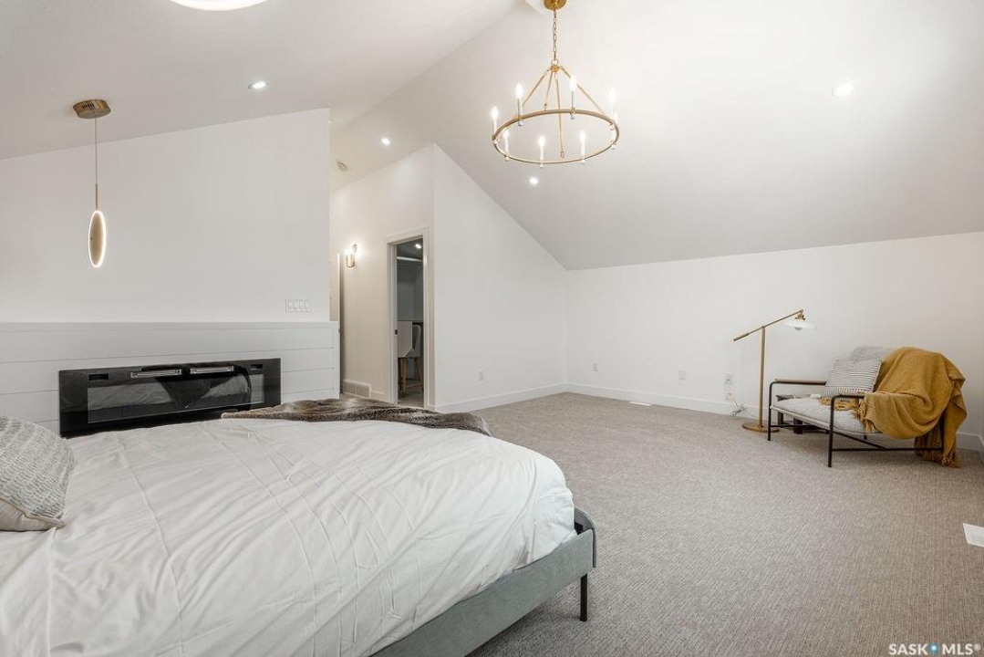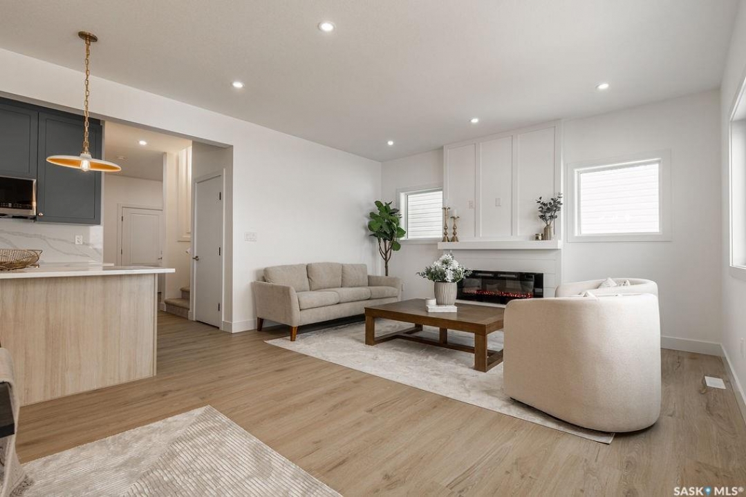 Welcome to 307 Sharma Crescent — a luxury high-end build in Aspen Ridge featuring a legal two-bedroom suite and upgrades you won't typically find in new construction. Step inside and immediately notice the attention to detail throughout. The main floor offers convenient access to the attached, insulated, and heated oversized double garage, a bright front office, and a 2-piece bathroom. The stunning high-end kitchen features stainless steel appliances, quartz countertops, an eat-up island, walk-in pantry, and a stylish range hood. The kitchen flows seamlessly into the dining area with garden doors leading to a finished deck, perfect for outdoor entertaining. The spacious living room is filled with natural light from large windows and is anchored by a modern electric fireplace, all within a beautiful open-concept layout. Upstairs you'll find a huge bonus room, convenient second-floor laundry, and a total of four bedrooms. There is a 4-piece main bathroom, and the luxurious primary suite is truly a retreat, featuring a vaulted ceiling, electric fireplace, space for a sitting area, a large walk-in closet with a built-in makeup desk, and a stunning 4-piece ensuite with double sinks and a large walk-in tiled shower. The basement features a legal two-bedroom suite with a separate entrance, modern kitchen, living room, its own laundry, and a 3-piece bathroom with a large walk-in tiled shower — perfect for extended family or rental income. Additional features include central air conditioning, luxury vinyl plank flooring, upgraded millwork and lighting, and a finished driveway. This home is packed with upgrades and offers luxury, space, and income potential all in one of Saskatoon's most desirable neighbourhoods.