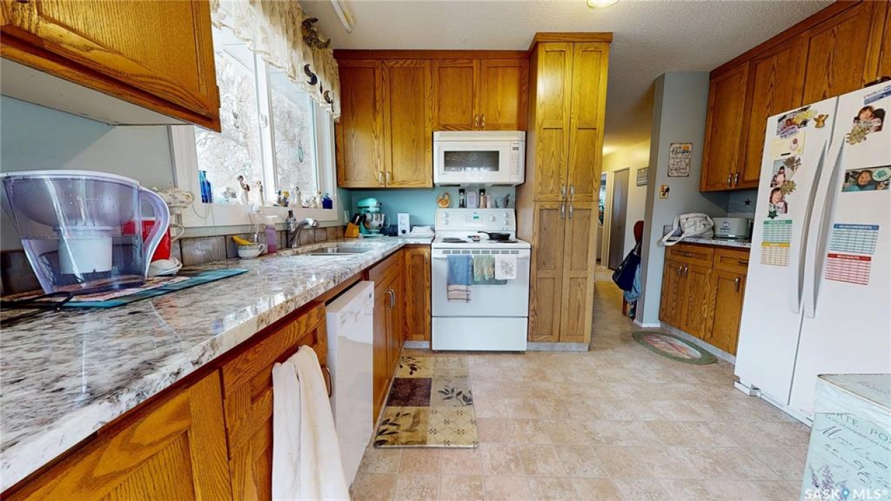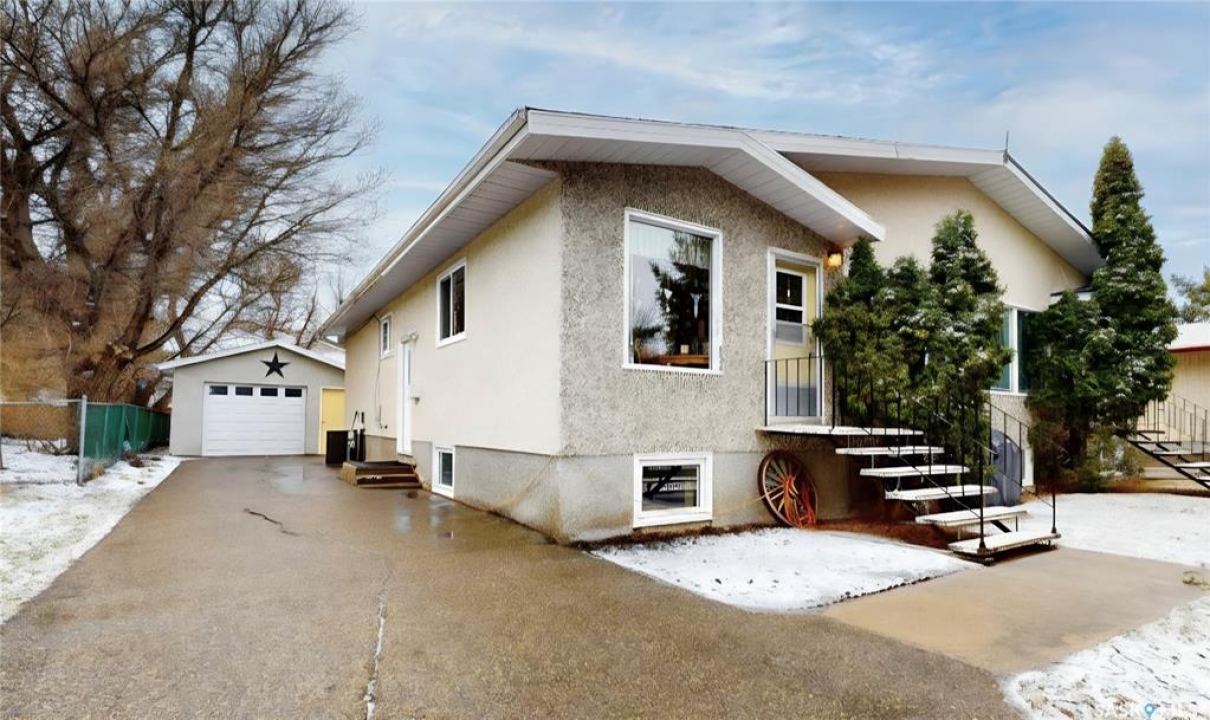 Discover this exceptionally well-maintained, 1/2 duplex. This 4-bedroom 2-bath home is located on a quiet crescent in Maple Creek. The eat-in kitchen received new cabinets in 2008. Other improvements since 2021 include updated stone countertops. The kitchen features a pull-out drawer pantry, built-in china, good appliances, including a new b/i apartment size dishwasher. The living room is a nice sized with updated vinyl plank flooring. The main floor has 2 roomy bedrooms that also have updated vinyl plank flooring, updated 4pc bath & main floor laundry/storage room. The fully developed basement has a large recreation room, updated 3pc bath with good tile flooring, 2 bedrooms, both with updated vinyl flooring, plus a storage room with good shelving as well a mechanical room with plenty of storage room as well. With fresh paint throughout this home boasts a move-in ready feel. The c/c basement walls and floor appear to be in excellent condition. The majority of windows have been updated and the exterior is stucco for minimal maintenance. A single front drive with ample parking leads to the single detached garage, which features both front and back doors, and the fully fenced backyard extends behind the garage, offering privacy and space for outdoor enjoyment. This well-priced, turnkey home is a must-see—don't miss the opportunity to make it yours!