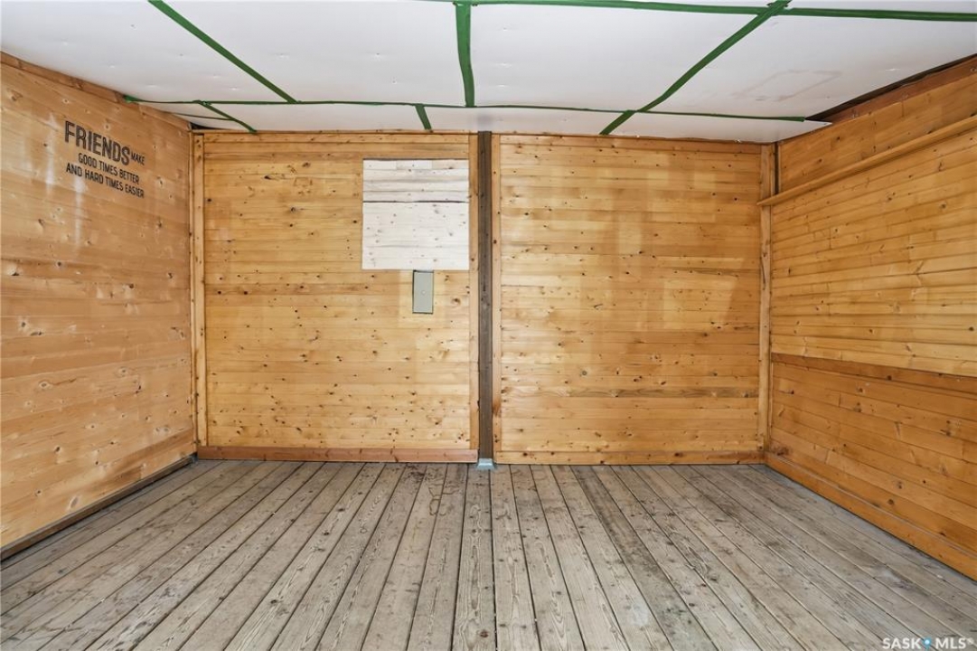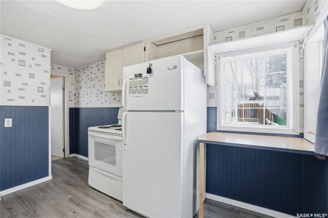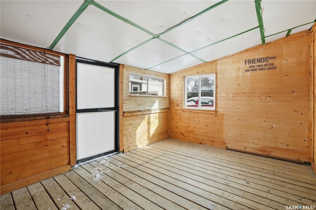 Excellent starter home here! This 2 bed and 1 bath home boasts over 700 sq.ft. and is situated on a quiet street in a great neighborhood. Heading in the side door you are greeted by a galley style kitchen. Next we find a formal dining room with nice hardwood floors - this space opens up into your living space which has so much natural light! Off the front of the home we find a spacious and private deck which is South facing and sure to be where you enjoy your morning coffee. Next we find 2 decent sized bedrooms on the main floor as well as a 4 piece bathroom. Heading downstairs we have a den, a laundry space and a utility room with lots of storage. Outside we find a long ashphalt driveway, a shed and a fenced backyard - as well as a covered and screened in sunroom which you are sure to enjoy all summer long. If you are looking for easy living this could be the place. Many updates over the years. Quick possession is available. Reach out today to book your showing!