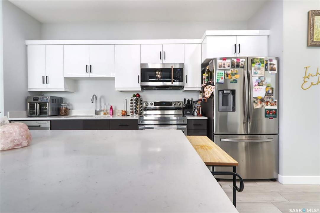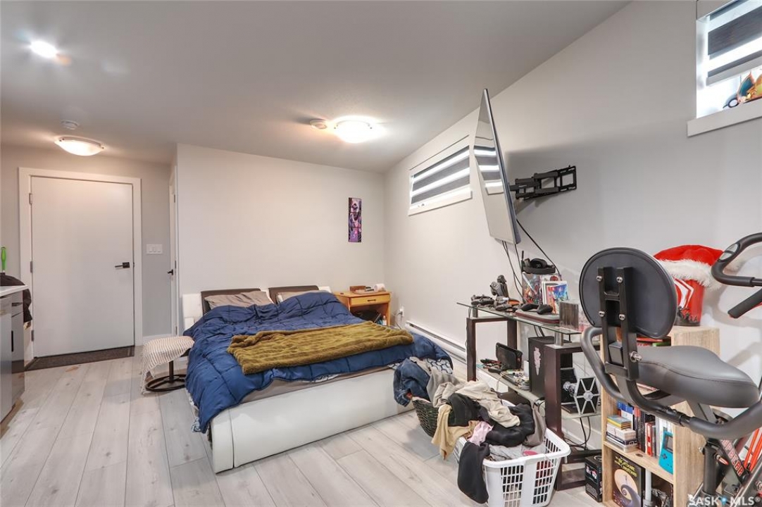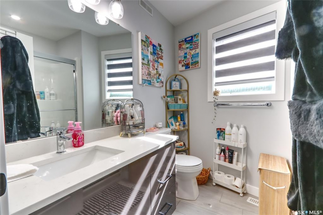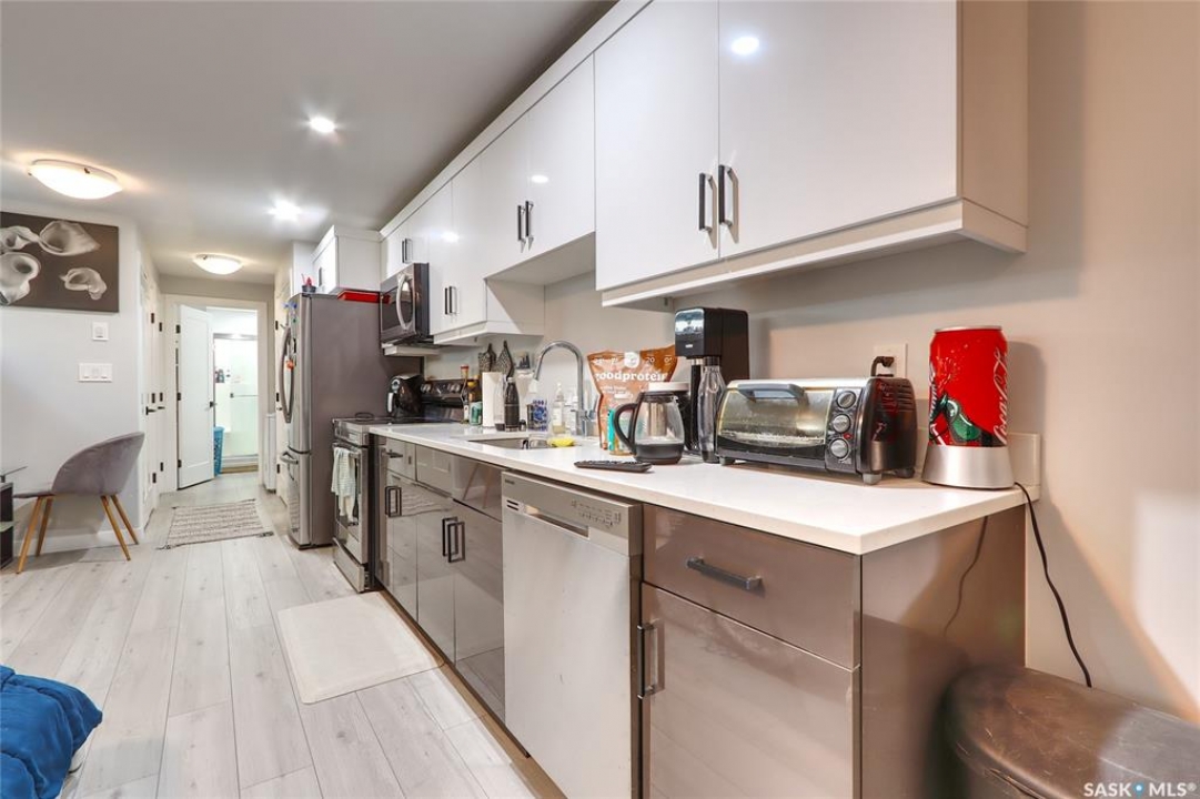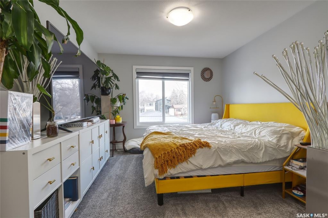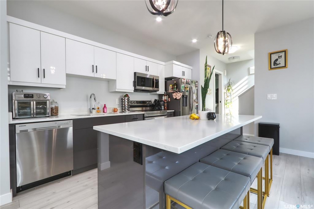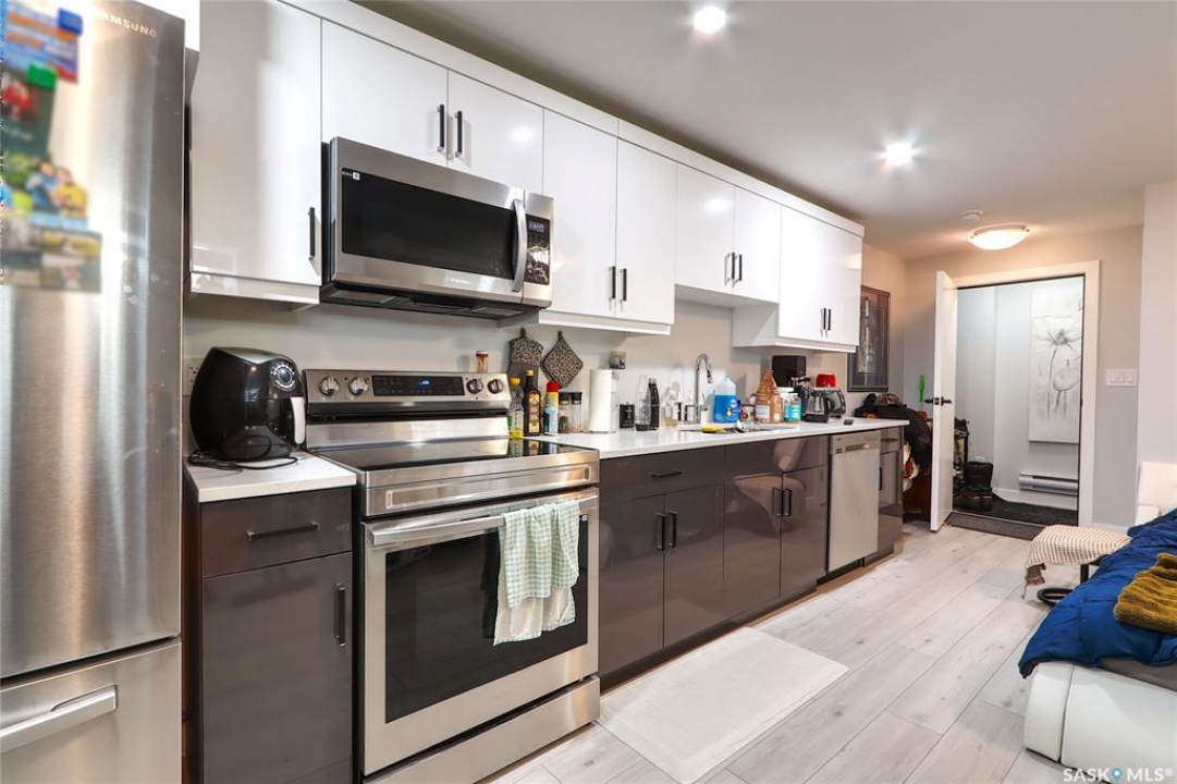 Welcome to this highly customized 2-storey home offering 1,293 sq ft of stylish and functional living space. Thoughtfully designed with modern finishes throughout, this home is perfect for homeowners and investors alike. The main floor features a bright open-concept layout seamlessly connecting the living room, dining area, and kitchen—ideal for both everyday living and entertaining. The kitchen is beautifully finished with two-tone white and brown cabinetry, stainless steel appliances, and ample storage space. A convenient 2-piece bathroom completes the main level. Upstairs, you're greeted by a unique balcony space that adds character and charm. The second floor offers two spacious bedrooms and two full bathrooms. The primary bedroom includes double closets and a private 3-piece ensuite, creating a comfortable retreat. The basement is fully developed with a regulated studio suite, complete with its own separate entrance. It features a modern two-tone white and brown kitchen, a 3-piece bathroom, and an efficient layout—making it an excellent mortgage helper or investment opportunity. At the rear of the home, you'll find a detached two-car garage, providing secure parking and additional storage. Located in cathedral neighbourhood of Regina, this property offers quick access to downtown, schools, parks, and public transit. Its proximity to amenities and key institutions like the University of Regina and Saskatchewan Polytechnic makes it especially attractive for students, professionals, and investors. A fantastic opportunity to own a modern, income-generating home in a convenient and established location.
