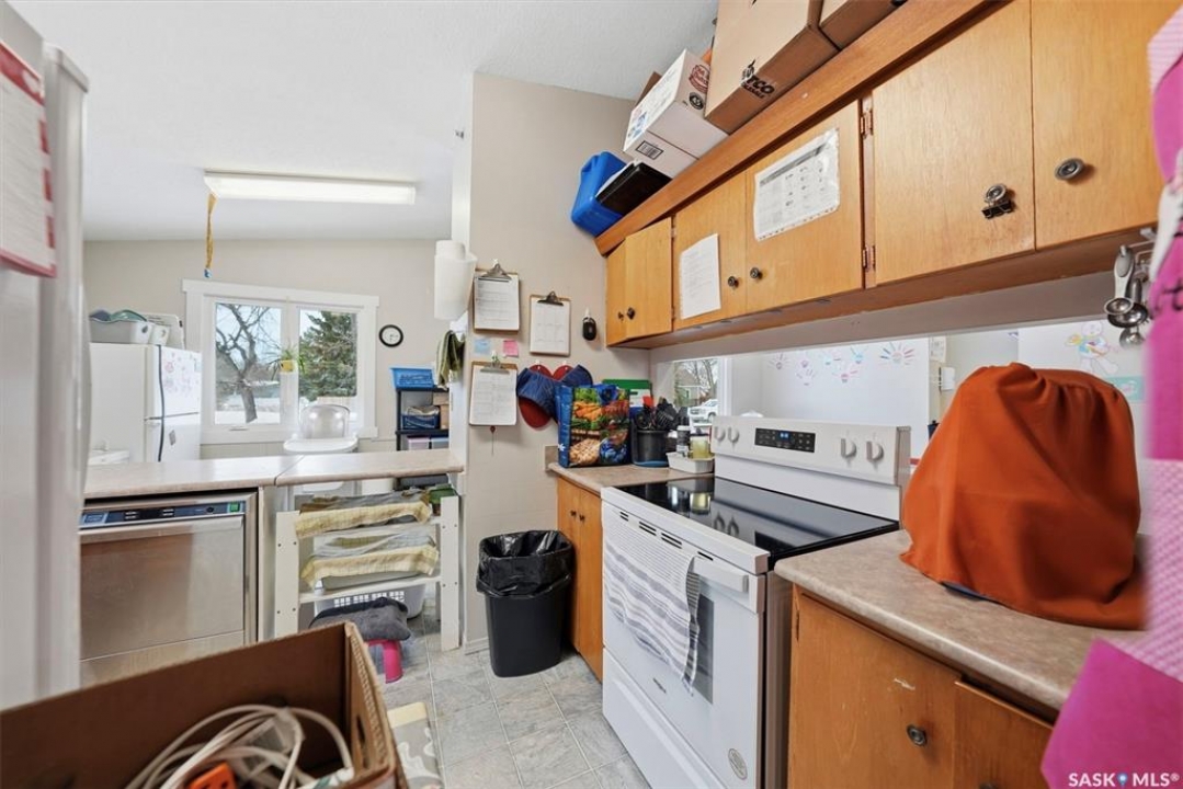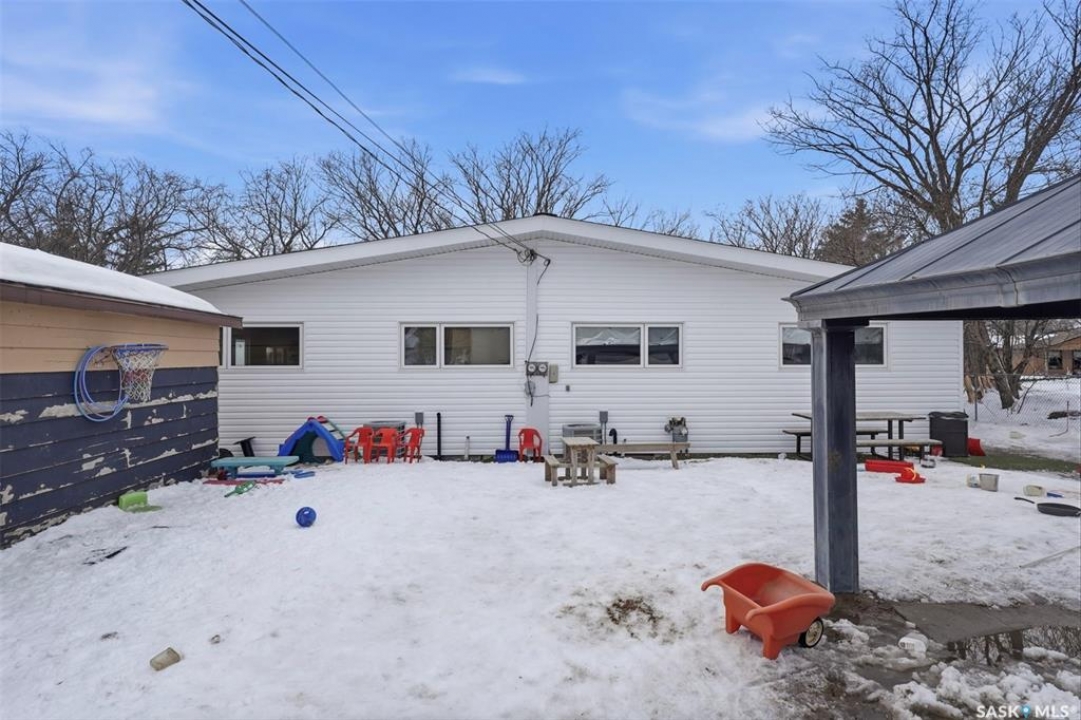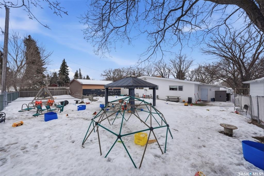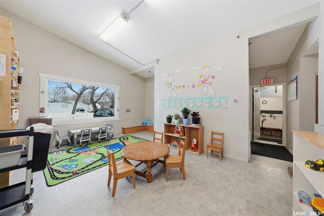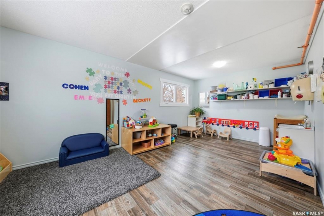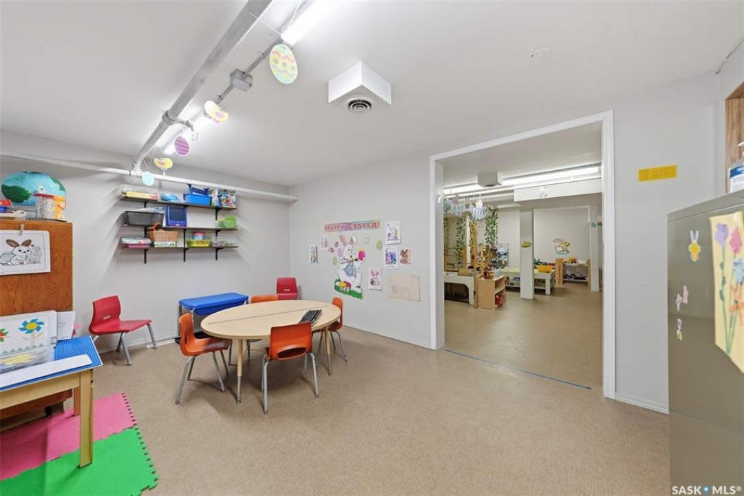 This former duplex has been in use as the local daycare, and has been continuously updated. Located on a 75ft lot on a quiet street, this property would make an excellent single family home, group home, or could be converted back to a duplex. There is a large mudroom on the north side that also accesses the back yard. Step into the main space, and your notice the vaulted ceilings and huge windows, which create an open, bright space. There is one full kitchen and one partial (ikea cabinetry, no stove) kitchen. 2 - 2 pc baths previously had bath tubs, there is room to re-install. Bedrooms have been opened up to create larger spaces. Basement is open with a play room, games room, locker/storage room, utility, laundry in utility, tv room, and another 2 pc bath. Backyard is xeriscaped and fenced, and there is a fenced area in the front yard. There has been continuous updating on this building including siding, windows and furnaces in 2025, shingles 2021. and more. Must be seen to be appreciated! Call your agent today to book your private viewing!