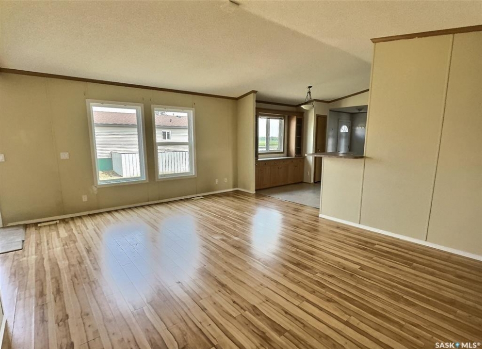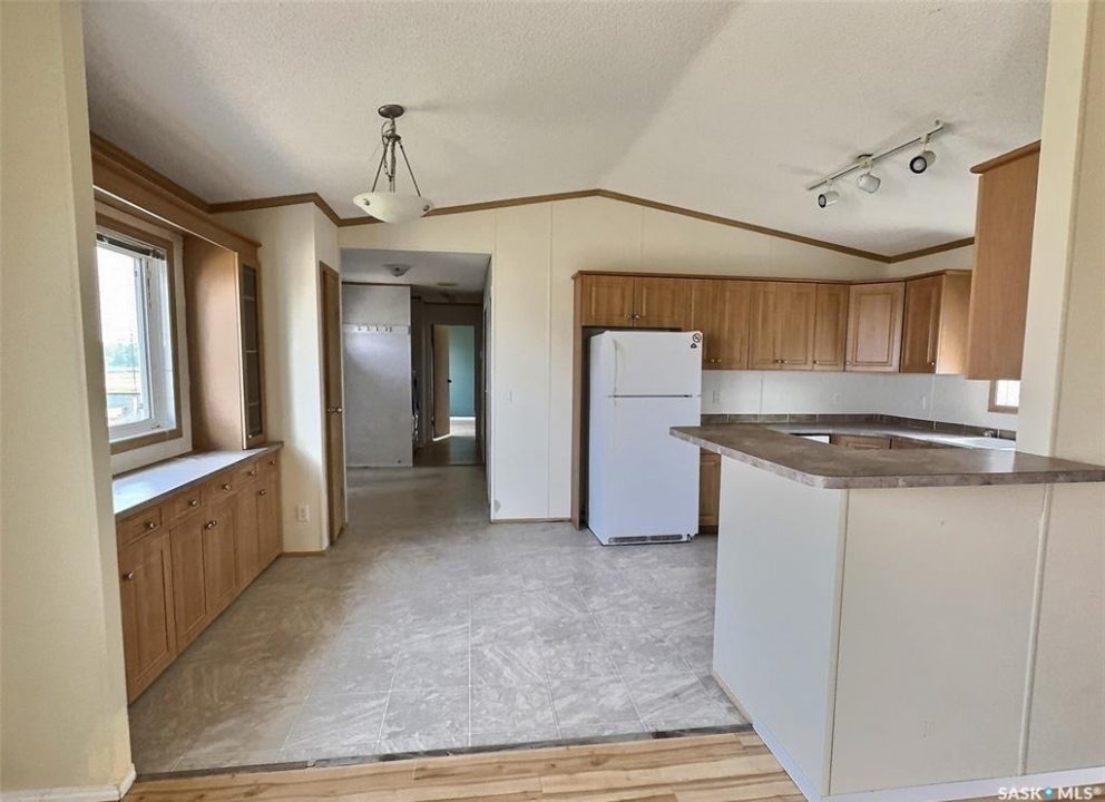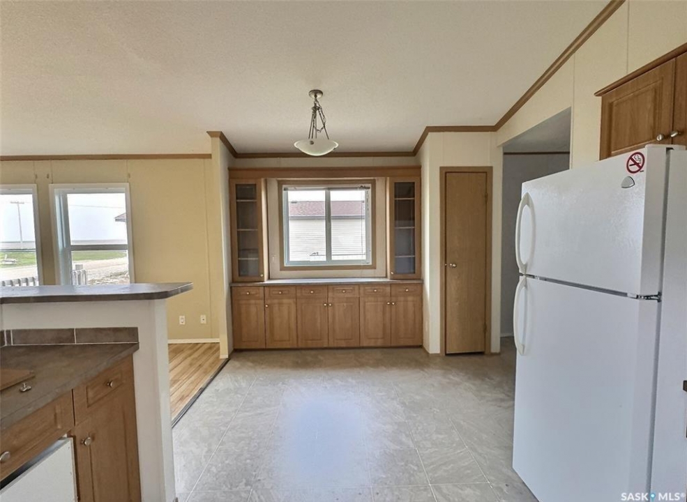 This 4 bed, 2 bath mobile home is over 1500 sqft and is located on a large lot in the quiet community of Macoun just 20 minutes from Estevan. � Two large bedrooms are located at the front of the home along with the main 4 piece bathroom. from there you have a spacious living area complete with vaulted ceilings. The large, bright kitchen includes ample cabinetry, large windows a built in hutch and opens onto the dining area. The laundry is located just down the hallway with a huge room across from it that can either be used as a theatre room or fourth bedroom. The master bedroom is located at the rear of the property and includes an en-suite and walk in closet. � A renter is already in place if you are looking for an investment property. Call me today for a viewing!