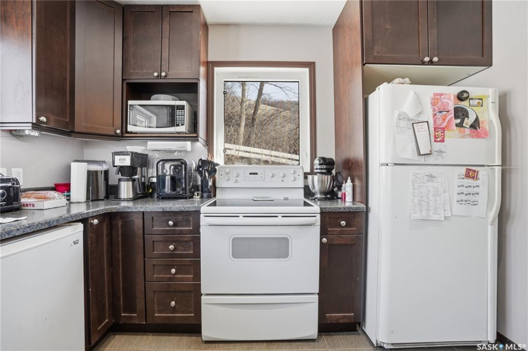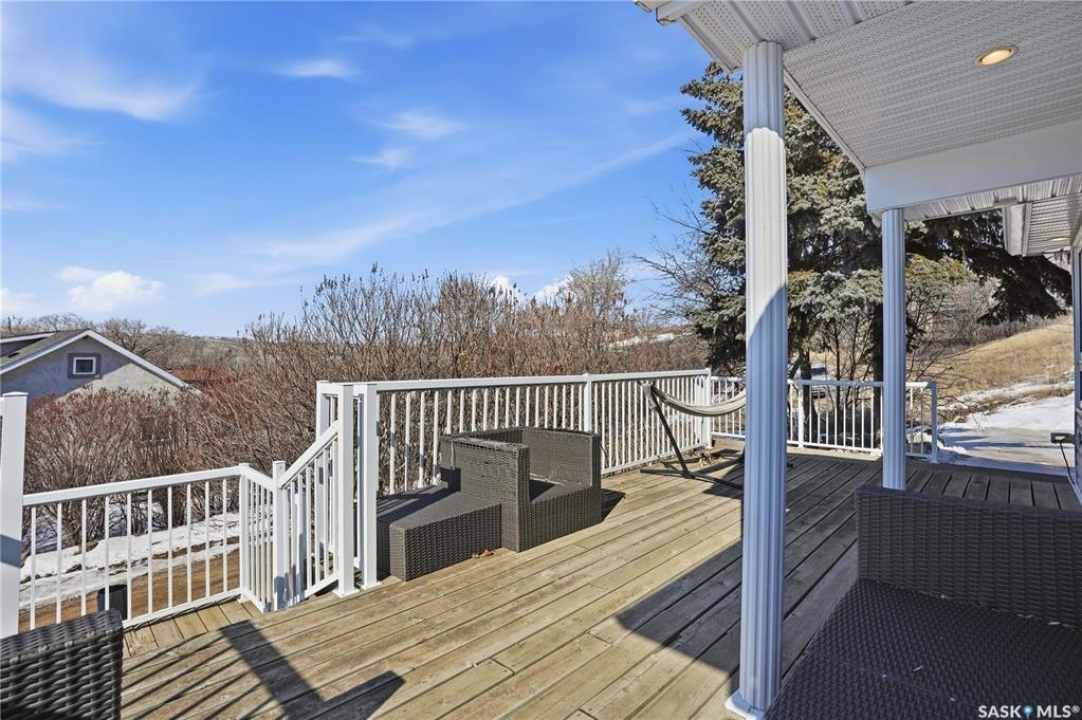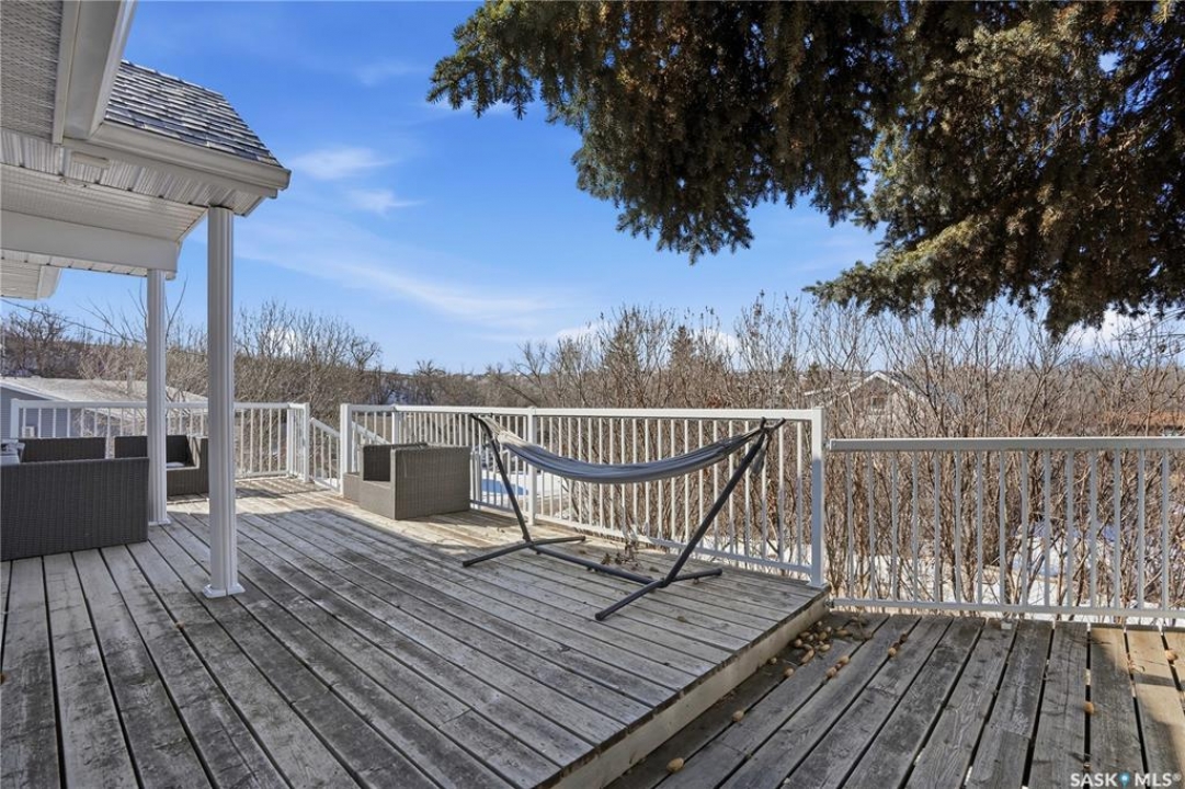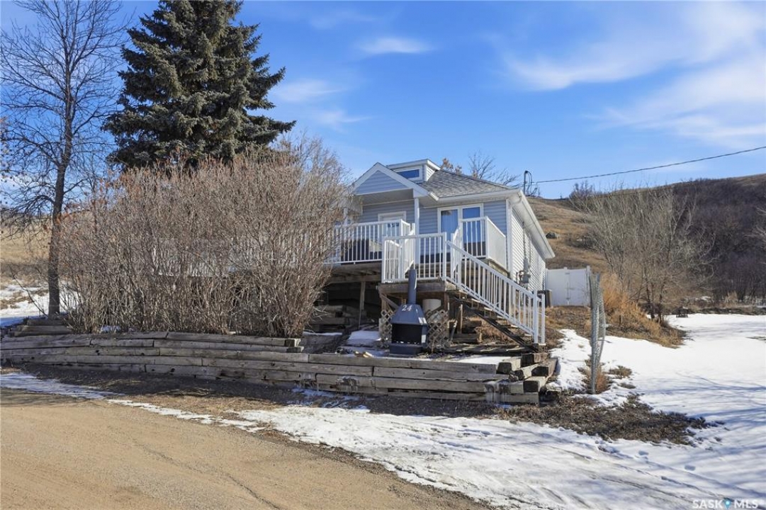 You won't want to miss this one. This 4 season cabin is sitting on a quiet crescent with stunning lake views - just 25 minutes from Moose Jaw. Very private home as it is built up higher than all the neighbors. You are sure to spend the majority of your time on your South facing deck enjoying lake life. Heading inside we find a living room boasting a natural gas fireplace with a stunning mantle. Heading back we find a dining space and a U-shaped kitchen with nice wood cabinets, a pantry and an eat-up breakfast bar. Down the hall we find a mudroom with access to your backyard, a laundry space and a 4 piece bathroom. Finishing off the main floor are 2 bedrooms. Heading upstairs we find a open concept loft area that could be used as a primary bedroom or a family room. Heading outside we find a fenced and private backyard as well as an oversized single car garage. This home has been extensively renovated and pride of ownership shows here. Reach out today to book your showing!