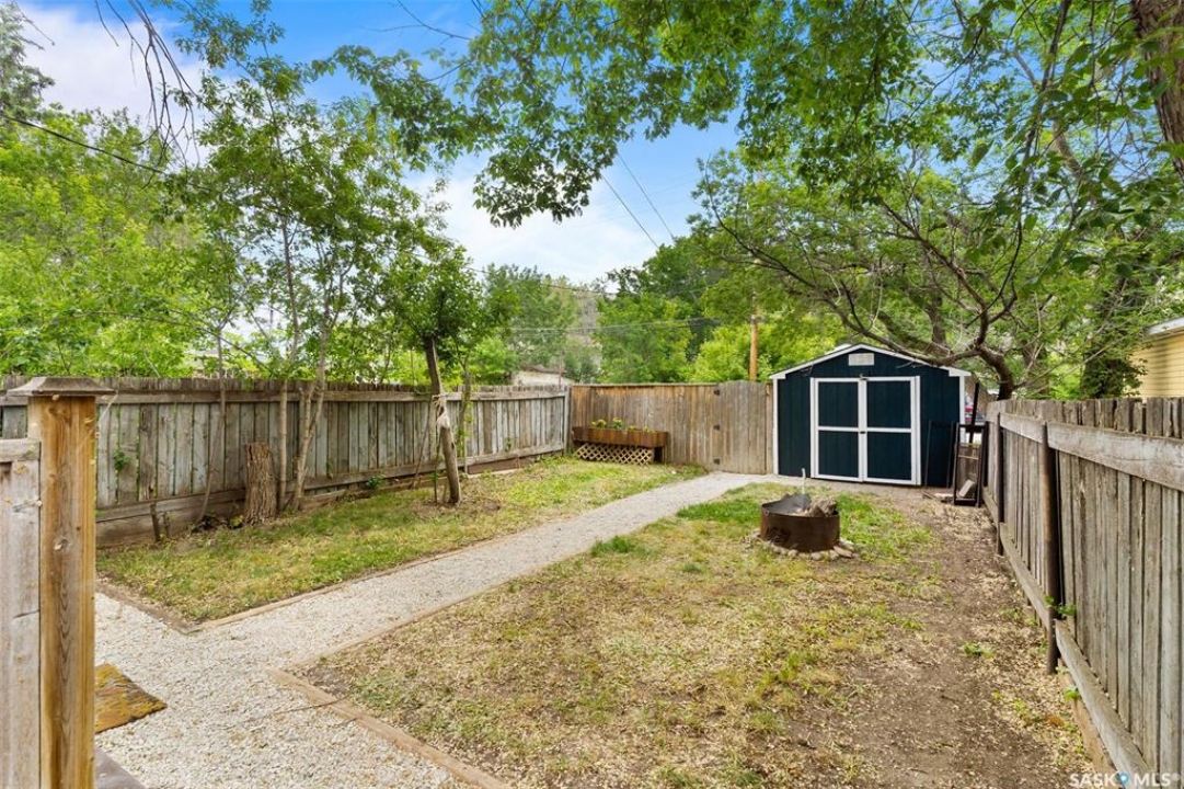 Welcome to 1941 Montague Street in the charming neighbourhood of Cathedral. This one and a half storey, 867 sqft character home has been well maintained and cared for. Entering this home through the welcoming 3-season front porch where you can hang your coat and store your shoes, take that sigh and say, “I'm home!”. An ideat home for first time home buyers, or for someone wanting to leave behind apartment style living, this home suits many genres. As you enter the main floor there is a staircase to the second level with an alcove next to it that is perfect for a small table to set down your keys. To the left you enter the living room and dining area. Hardwood flooring and high ceilings open this space up. Enjoy entertaining friends or unwinding in the living room. Off the dining area is the kitchen. There are open front upper cabinets and more storage than you would think. There is an attractive tile backsplash and a large stainless steel sink. Appliances are included. From the kitchen you have direct access to the 2-tiered deck and backyard. Enjoy summer nights BBQ'ing with friends and family. The backyard is fully fenced and has a cute garden shed. A future garage would easily fit in this backyard. The exterior of the home was recently repainted; it has updated windows and new shingles were installed 2025. Going back to the home, we will go to the second floor where there are two good sized bedrooms on opposite sides of the hallway and a 4-pce bathroom. The basement is an undeveloped space and is currently used for storage and is home to the laundry area. There is a High Efficiency Furnace, updated electrical panel, sump pump, and plenty of room for storage. Just unpack your bags and come home! Pictures are from when previous tenant lived in the property. Living room and dining room photos have been photo shopped to remove tenant furniture.