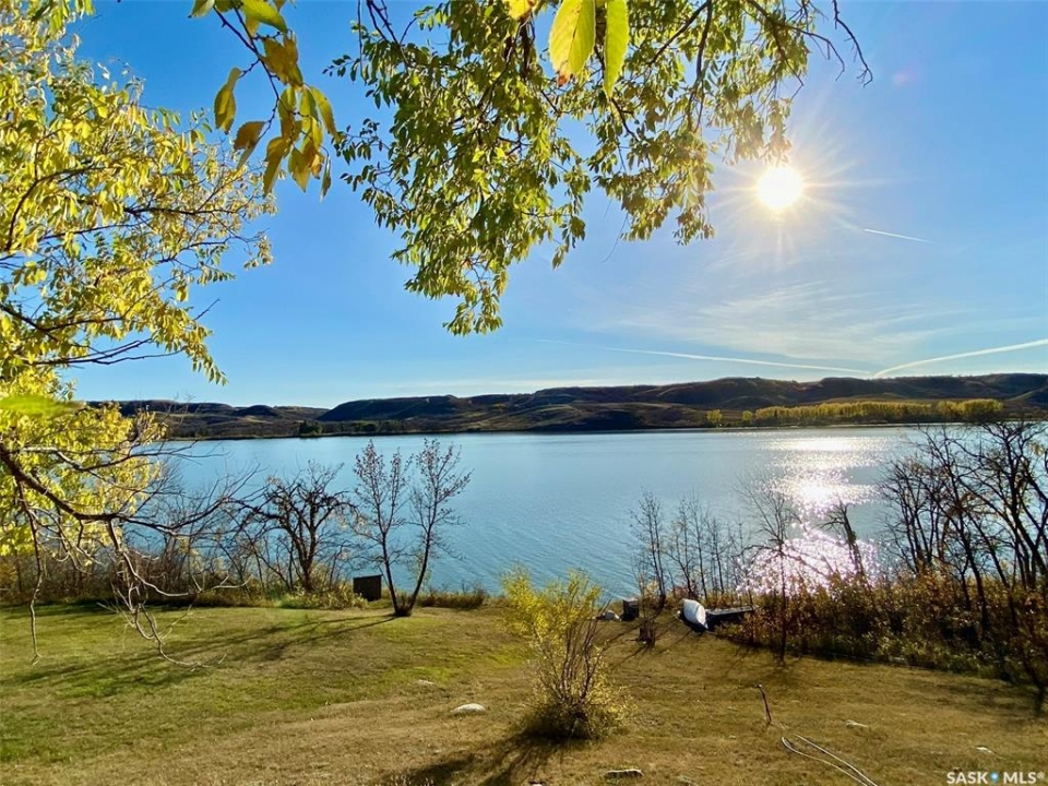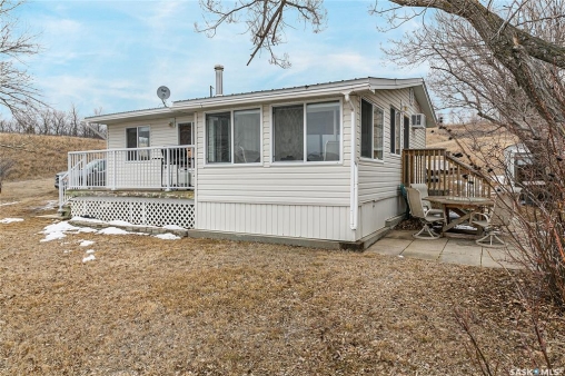 Welcome to this charming four-season waterfront cabin at Buffalo Pound Lake in the peaceful community of Valley View Resort. Located just 45 minutes from Regina, with less than 14 KM of gravel and the remainder on comfortable asphalt, this property offers the perfect balance of accessibility and quiet lakeside living. Valley View is well known for its privacy, tranquillity, and convenient boat launch. This well-maintained 704 sq. ft. cabin features 3 bedrooms and 1 bathroom, offering a functional and inviting layout. The bathroom features a functional design with separate rooms for the shower and toilet. The kitchen features warm wooden cabinetry, tile backsplash, and impeccably clean appliances, while the living room, primary bedroom, and sunroom offer stunning views of the lake. Natural light and scenic surroundings make this home feel like a true retreat in every season. Step outside to a large front deck, perfect for relaxing and enjoying the waterfront setting. The generous 65' x 160' lot also includes two large sheds, providing plenty of storage for lake life essentials. Built for year-round comfort, the cabin features a durable metal roof, vinyl siding, and newer PVC windows throughout. A wood stove adds both charm and efficiency, keeping the space cozy during the winter months while helping reduce heating costs. An added bonus is that the property comes with most furnishings, minus the kitchen table & chairs, and some personal items. Just move in and start enjoying! 32' plastic dock with 2'x4' wood legs, track, and dolly are at the property and are included in the sale. This is a fantastic opportunity to own a quiet waterfront escape with everything you need to enjoy lake living year-round. Call today!