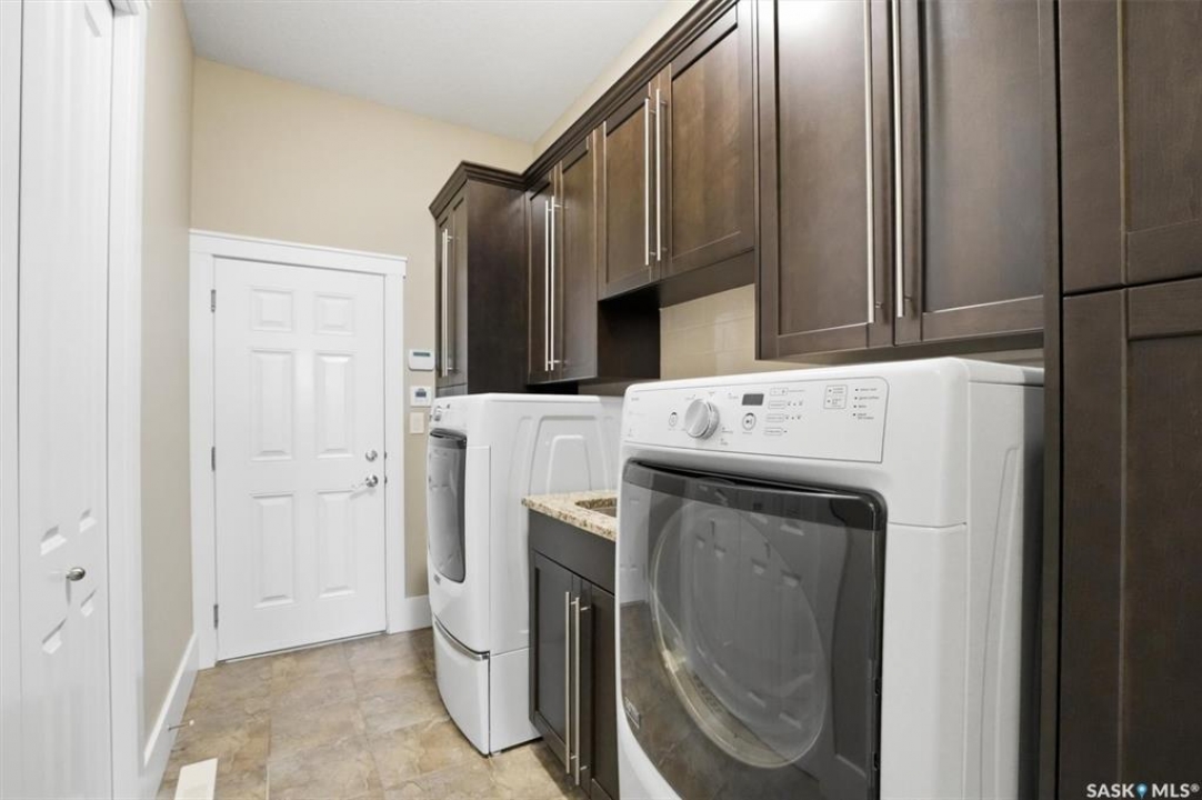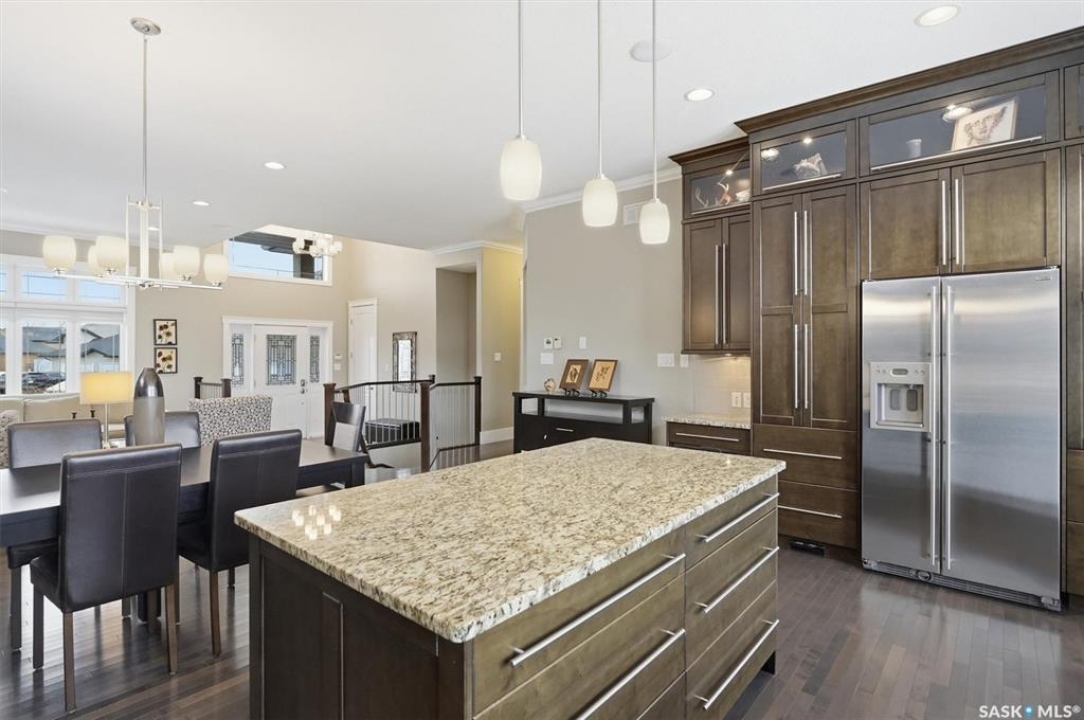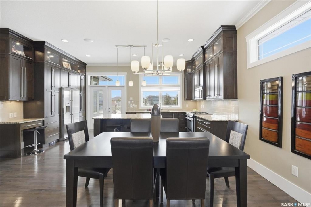 Large Willowgrove custom 1,772 sq. ft. walkout bungalow backing the park on a 13,500 sq. ft. lot, located at the end of a quiet terrace. Welcome to 511 Bennion Terrace. This spacious bungalow offers 5 bedrooms and 3 full baths. Step into an open concept main floor with soaring 10-foot ceilings and 8' doors throughout- the open concept great room connects living, dining, and the kitchen area, with crown moldings and a gas fireplace highlighting the space. The kitchen is truly the heart of the home with classic custom cabinets, a large island, granite surfaces, stainless steel JennAir appliances, gas range, and double-height upper cabinetry with crown trim. Additional kitchen features include tile backsplash, built-in pantry and desk station. Garden doors lead to a large deck overlooking the park. The main floor also offers 3 spacious bedrooms and 2 full baths, including a luxurious primary suite with access to the deck —perfect for morning coffee with views! Main also has a functional laundry room with built-in cabinetry, granite counters, and a sink. The lower level provides more exceptional living space with floor-to-ceiling windows, 9' ceilings and walkout access- the oversized great room room includes a media lounge, games area, and wet bar with granite counters and a beverage fridge. Also, 2 lrg bedrooms and a 4-piece bath are on the walkout level. Set on a wedge lot backing the park and walking paths, the yard is fully landscaped with paving stone driveway, shed, raised garden beds, patio, 6-zone irrigation, mature fruit trees, and iron perimeter fencing. Additional features include newer boiler (2026), steel full span beam, central vac with sweeps, central air, in-floor heat in ensuite and basement, 2 ext gas hook-ups, French drain, upgraded screw pile deck supports, and a heated double attached garage with cabinetry, Russound audio/video system with 8 zones and more! Floor plans and full upgrade list in supplements.