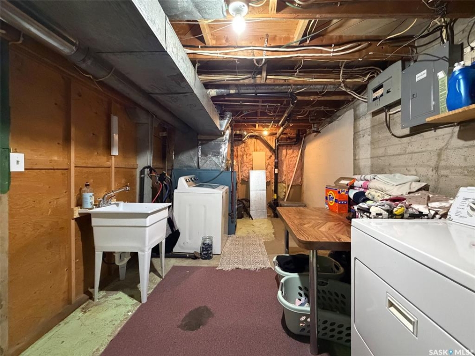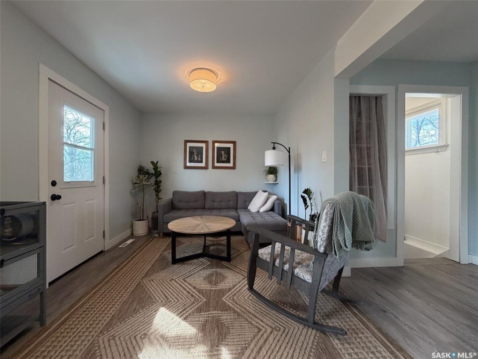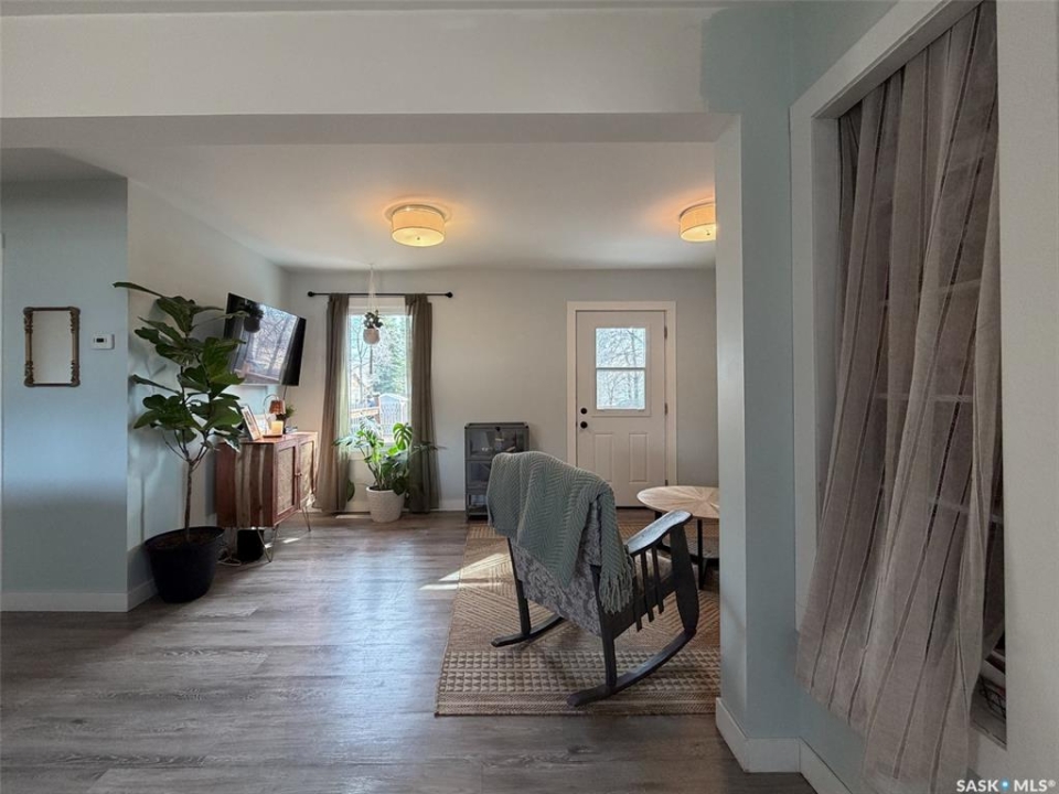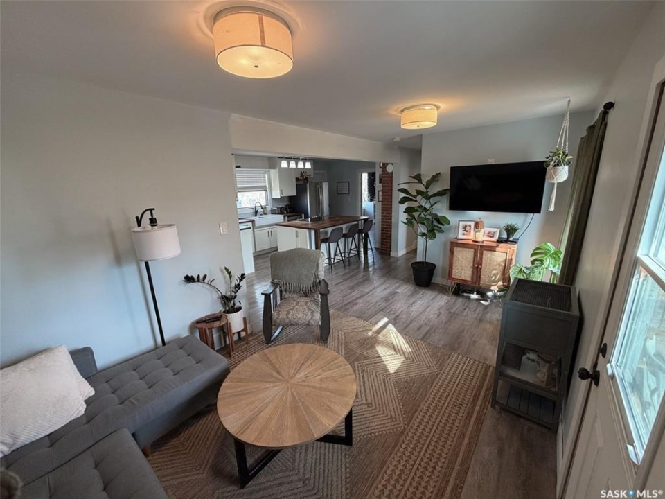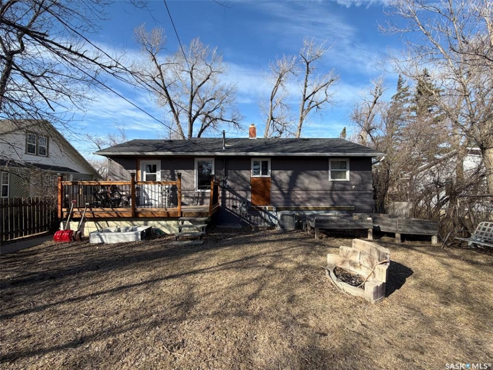 Welcome to 442 Front Street W in Eastend, SK — a thoughtfully updated 825 sq. ft. bungalow offering modern finishes, a functional layout, and great outdoor space. With 2 bedrooms and 1 bathroom, this home is ideal for first-time buyers, downsizers, or anyone looking for a move-in ready option in a scenic small-town setting. The main floor was fully renovated down to the studs around 2016, giving the home a fresh, open feel throughout. Step inside and you're welcomed directly into the open-concept living space, where the kitchen features an eat-up island and flows seamlessly into the living room. From here, you have direct access to the backyard deck, making it easy to enjoy indoor-outdoor living. To the left of the main entry is one of the spacious bedrooms, while just off the living area you'll find the second bedroom and a 5-piece bathroom, offering plenty of room and convenience for everyday living. Both bedrooms are a good size and filled with natural light. The basement has a separate entry at the side of the home and is accessible just off the kitchen living space. It is partially developed, featuring a rec room area, utility room, and two additional dens with windows that could potentially be opened up further to be used as bedrooms (buyer to verify egress). This space offers flexibility for future development, storage, or hobby use. Outside, the fully fenced backyard provides plenty of room to relax, entertain, or garden. Enjoy the large deck, a storage shed, and open space to make your own. Additional updates include central air (2024) and shingles done in approximately 2014. Located in the beautiful town of Eastend, you'll enjoy access to local shops, restaurants, walking trails, and the renowned T.rex Discovery Centre, all set within the stunning Frenchman River Valley. If you're looking for a modernized home with potential and outdoor space to enjoy, 442 Front Street W is ready to welcome you.