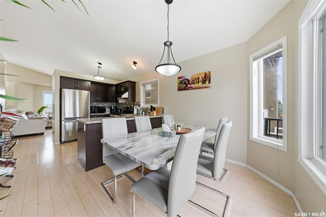 Welcome to 215 Snell Crescent in the desirable neighbourhood of Stonebridge in Saskatoon. This well-kept bi-level home is located on a quiet street and features a bright south-facing living room with plenty of natural light, a maple kitchen with gas stove, and a spacious dining area with access to a two-tier deck. The primary bedroom includes a walk-in closet and 4-piece ensuite. The fully developed basement offers a large family room, two bedrooms, and a full bathroom. Close to schools, parks, and all amenities. Includes central air conditioning and underground sprinklers.