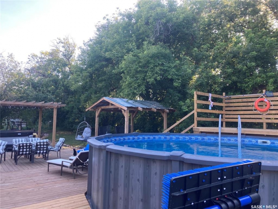 Just 8 minutes south of Esterhazy in the RM of Fertile Belt sits this fully renovated spacious 6-bedroom, elite 3-bathroom home on 14.56 acres—. We're talking down-to-the-studs renos/additions in 2016/2017, inside and out, electrical/mechanical/insulation & cosmetic. No “future projects" here. Just unpack. A timber stepping path with west and north facing decks set the stage here. An over sized entry way with copious storage greets you on the south side of the house. Steps up into the open concept main floor & you'll feel it right away—on trend color hues, granite countertops, updated cupboards, beams, a warm fireplace, and a clean mix of brick, ceramic tile, and hardwood running through the main floor. It's the kind of space that feels solid, finished, and built to last & hold its worth. The master bedroom is a league of its own, large well lit, with a 5 pc ensuite and walk in.5 More bedrooms and another full bath finish the main floor.The basement?Fully finished. 2 separately connected zones to the basement rec area. Whether its cinematics, board games/cards or play there is a space and a place for everyone.A basement 3 pc bath & a large fully separate laundry keep your unmentionables out of site to your crew with a updated washer and dryer and large washing sink. All mechanical was smartly designed in to one area, No wasted square footage. Outside is where it really separates itself. A natural gas-heated pool (yes, no reason to drive to town this summer),a fully insulated 3-car detached garage with concrete, multiple outbuildings, and more than enough room to expand, start a hobby & setup, or just enjoy your own space without neighbours on top of you.Whether it's a big family, guests, or working from home—you've got options.And here's the kicker… taxes are just $968/year. Acreages like this don't come around often—especially this close to town, fully redone, and priced to make sense. Its the perfect time to move, seed your garden & hit the pool for the summer.