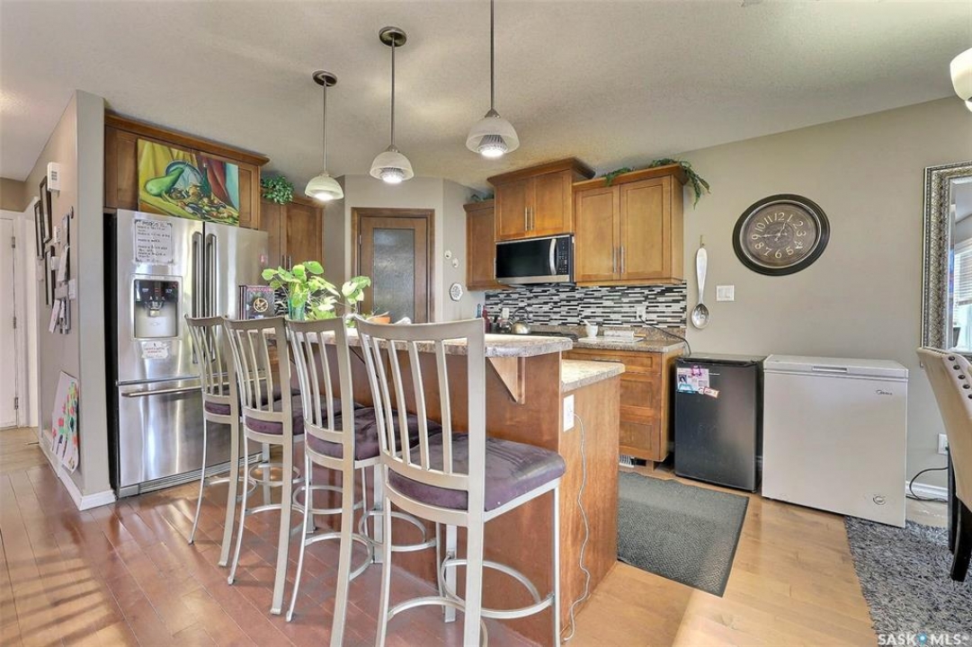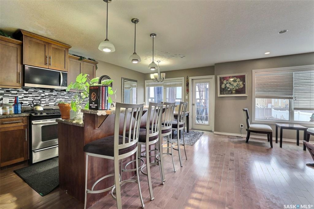 Great potential with this 4 bdrm up 2 storey featuring fantastic newly developed 2 bdrm basement suite! Ideally located in family friendly Harbour Landing close to all amenities. Open floorplan with large kitchen with centre island and panty. Plenty of cabinets and counterspace plus custom tiled backsplash. Generous sized eating area with garden door to rear covered deck. Large living room with south facing picture window allowing in plenty of natural light. Powder room and direct entry to garage. 2nd level features big primary suite with 3pc ensuite and walk in closet plus 3 additional generous sized bedrooms and main bath. Separate side entrance leads to a 2bdrm bsmt suite. All new flooring, paint and cabinetry. Ideal for secondary income. Call today!