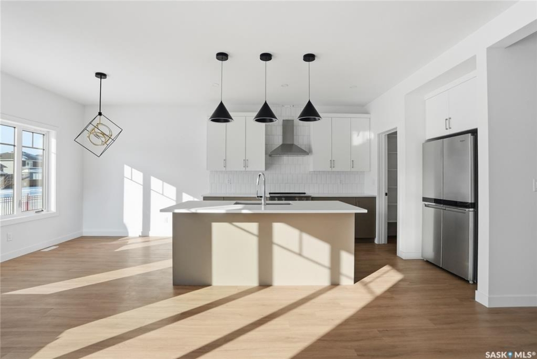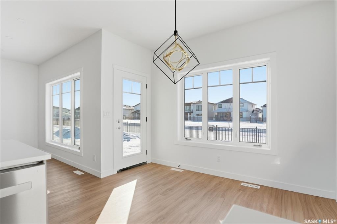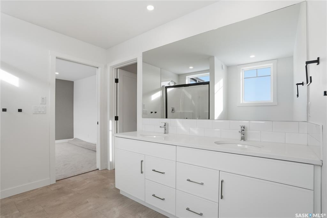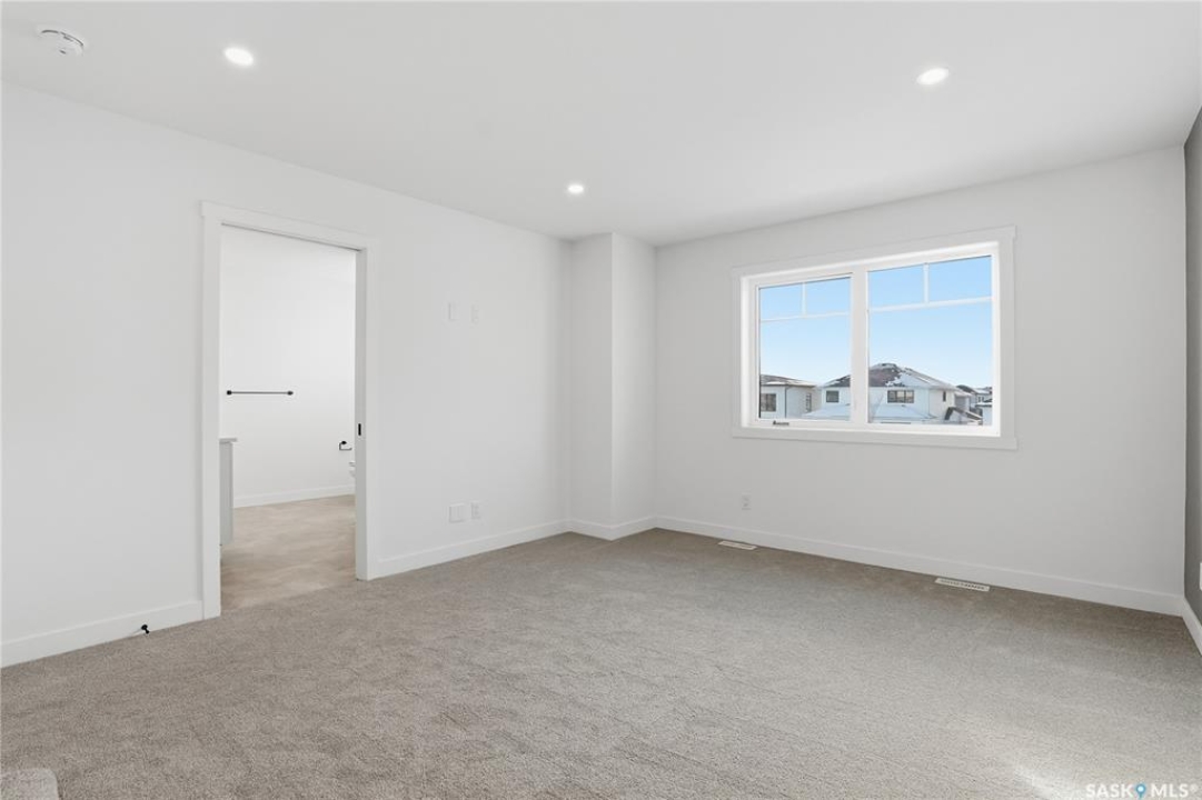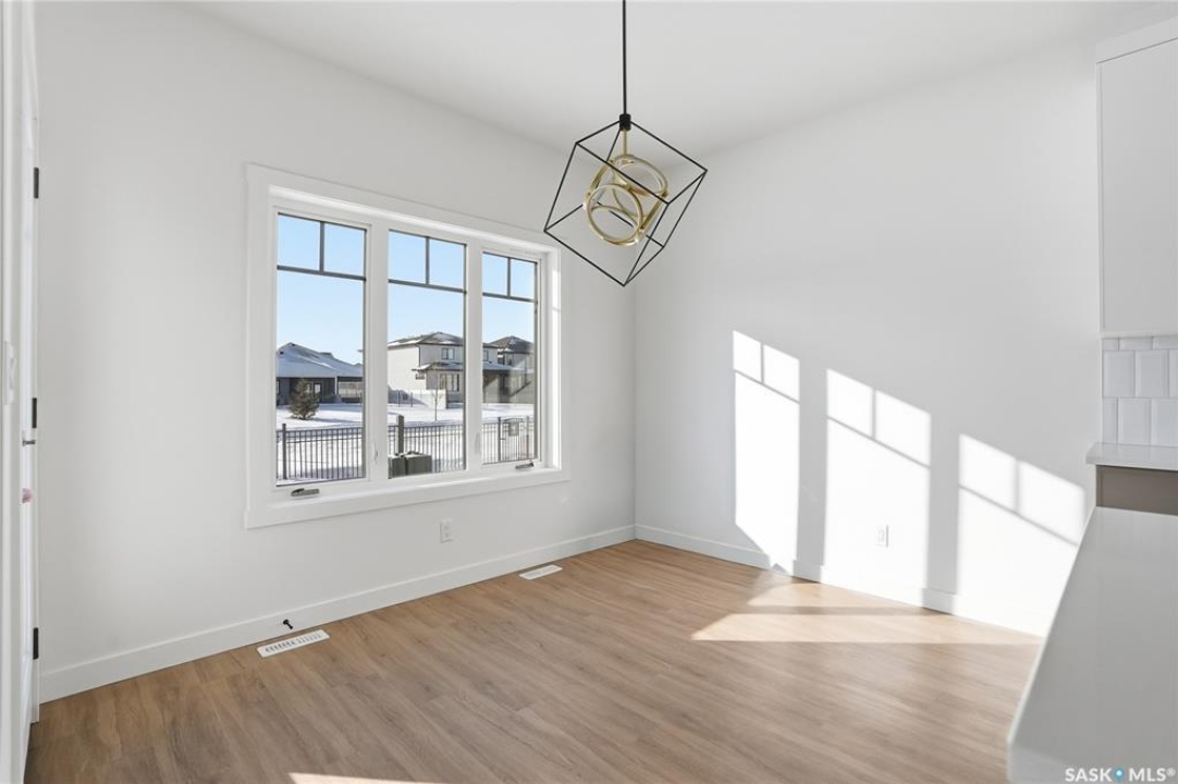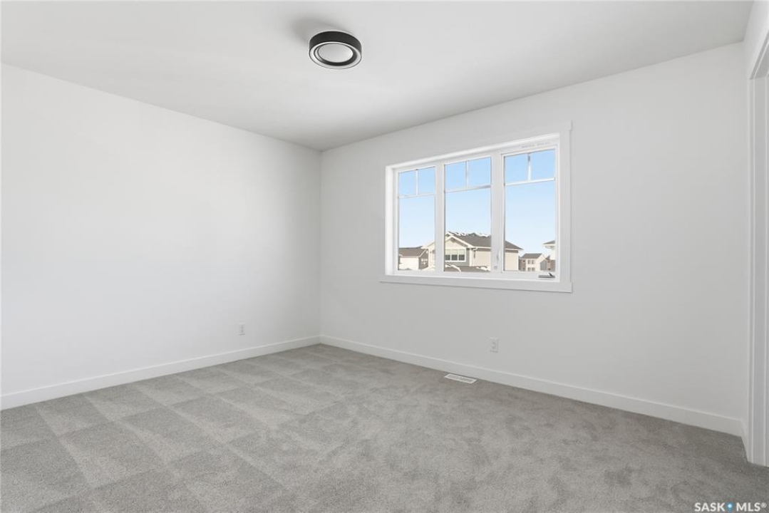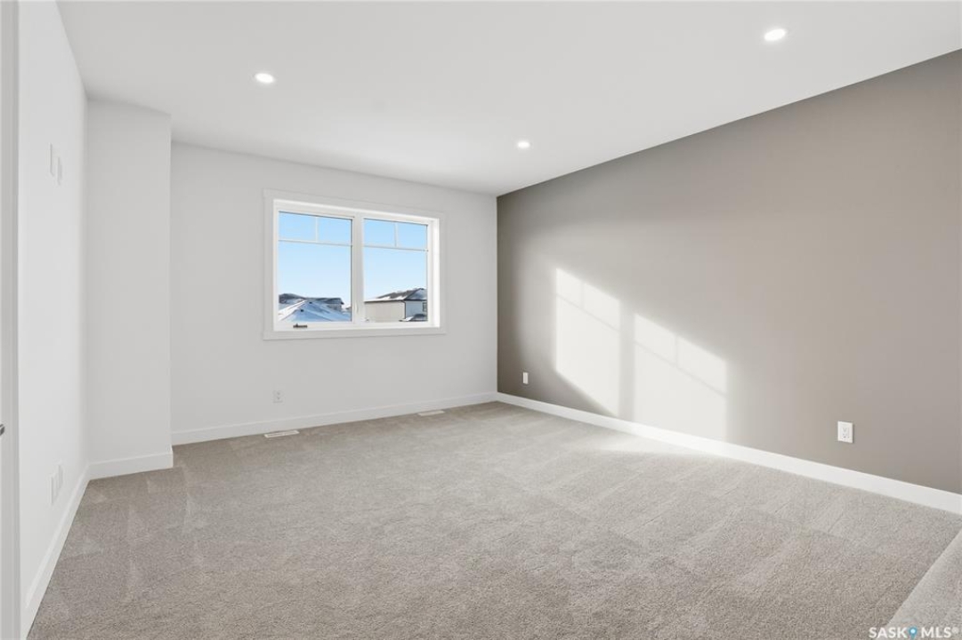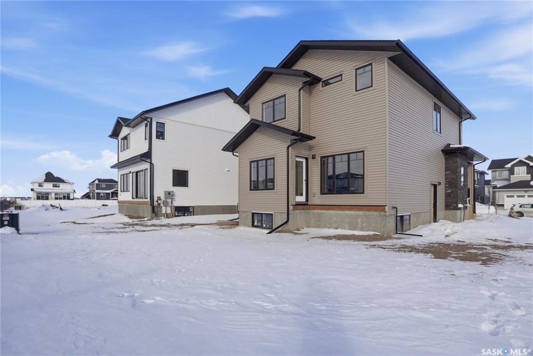 Welcome to another beautiful build by Zimroz Homes, The Frontier. This 1,880 sq ft two-storey offers a functional open-concept layout designed for modern family living, set in the desirable Aspen Ridge neighbourhood and backing onto greenspace. The main floor features a bright and spacious kitchen with quartz countertops, a walk-through pantry, and seamless flow into the dining and living areas. A shiplap fireplace adds warmth and character to the family room, creating an inviting central space for everyday living and entertaining. Upstairs, you'll find a versatile bonus room along with a well-appointed primary bedroom complete with a 4-piece ensuite. Two additional bedrooms and a full bathroom provide comfortable space for family or guests. Additional highlights include a 23' x 21' attached garage, concrete driveway, and a separate side entrance offering potential for a future legal suite or multigenerational living. Backing onto greenspace, this home offers a quiet, private setting with direct access to outdoor pathways—an ideal balance of location and lifestyle in one of Saskatoon's most sought-after communities. Please note: this home is currently under construction. Photos are of a previously built model with a similar layout and may not reflect exact finishes.