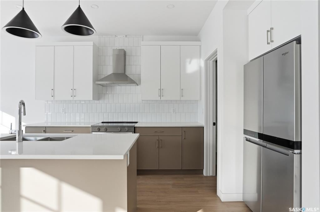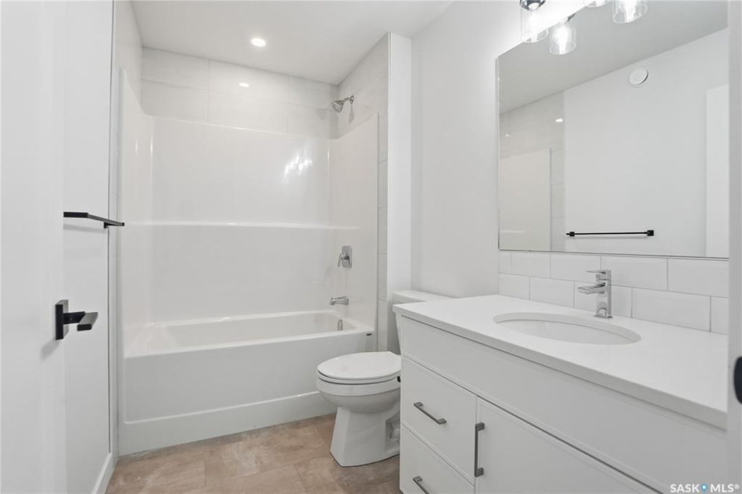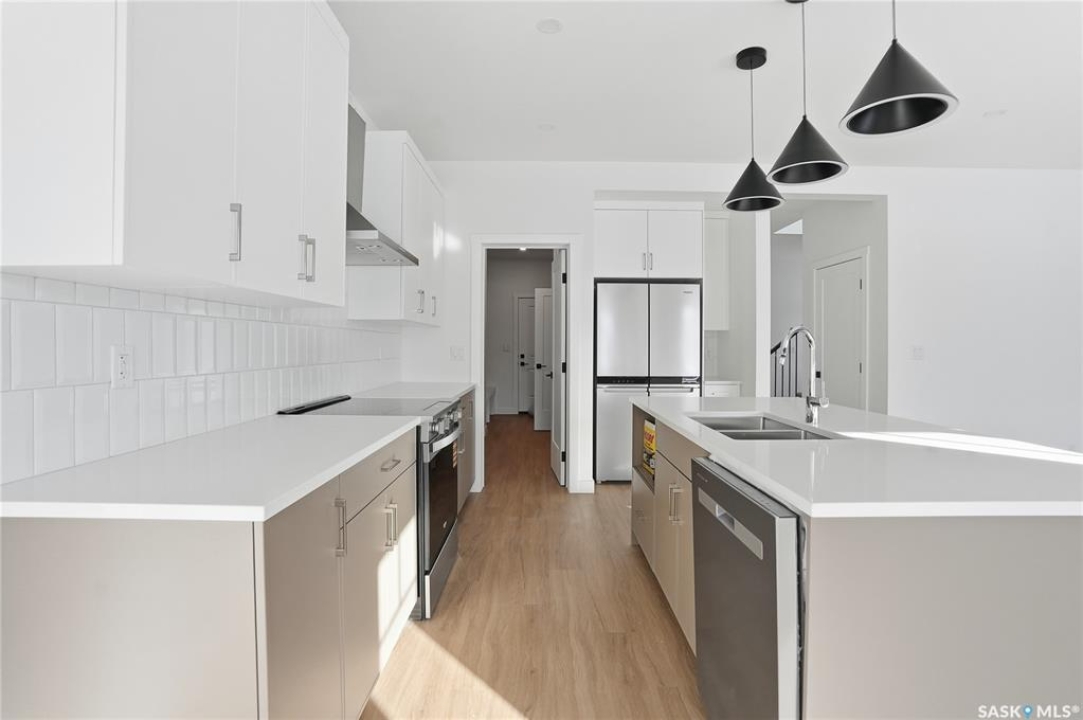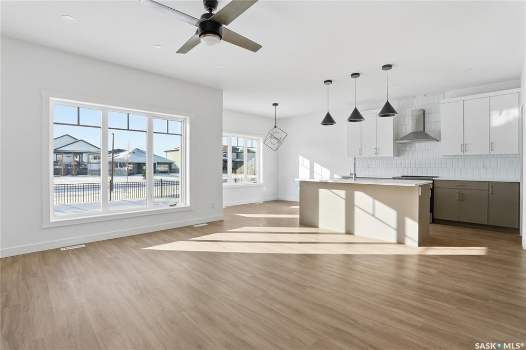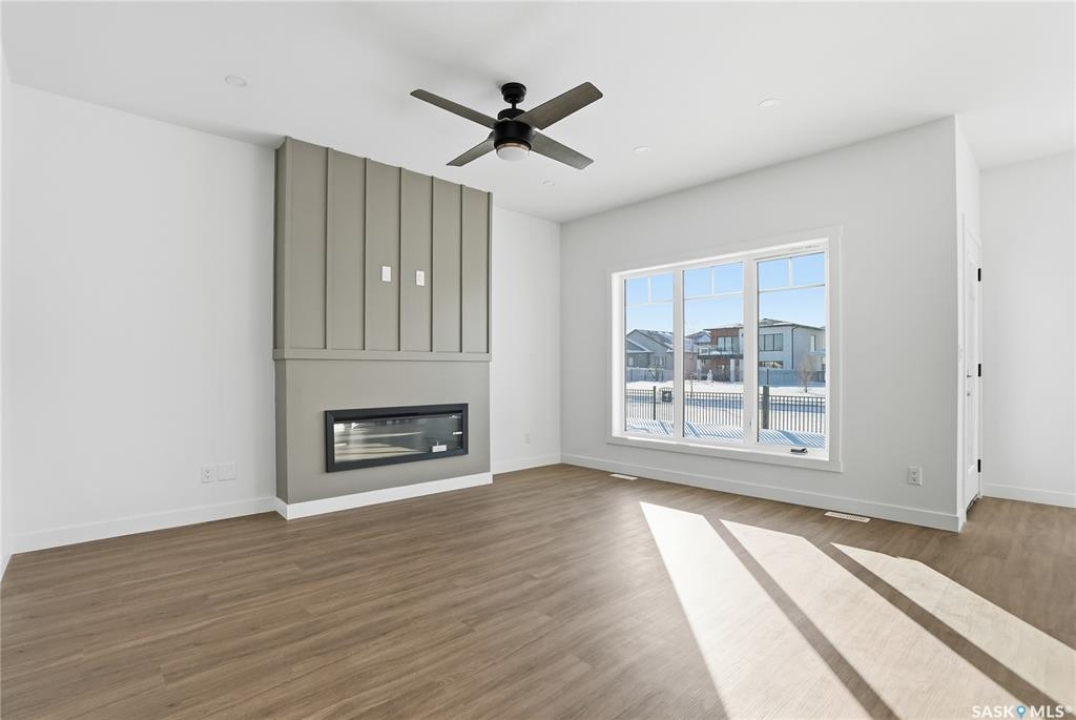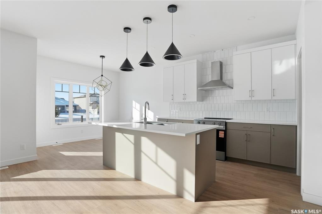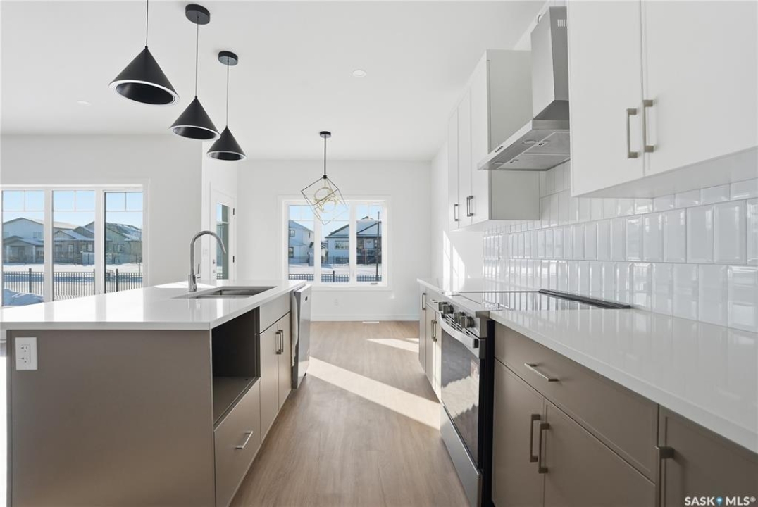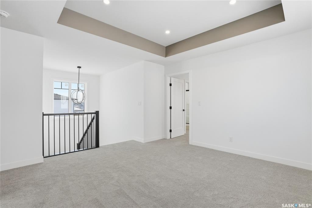 Welcome to another beautiful build by Zimroz Homes, The Frontier. This 1,880 sq ft two-storey offers a functional open-concept layout designed for modern family living, set in the desirable Aspen Ridge neighbourhood and backing onto greenspace. The main floor features a bright and spacious kitchen with quartz countertops, a walk-through pantry, and seamless flow into the dining and living areas. A shiplap fireplace adds warmth and character to the family room, creating an inviting central space for everyday living and entertaining. Upstairs, you'll find a versatile bonus room along with a well-appointed primary bedroom complete with a 4-piece ensuite. Two additional bedrooms and a full bathroom provide comfortable space for family or guests. Additional highlights include a 23' x 21' attached garage, concrete driveway, and a separate side entrance offering potential for a future legal suite or multigenerational living. Backing onto greenspace, this home offers a quiet, private setting with direct access to outdoor pathways—an ideal balance of location and lifestyle in one of Saskatoon's most sought-after communities. Please note: this home is currently under construction. Photos are of a previously built model with a similar layout and may not reflect exact finishes.